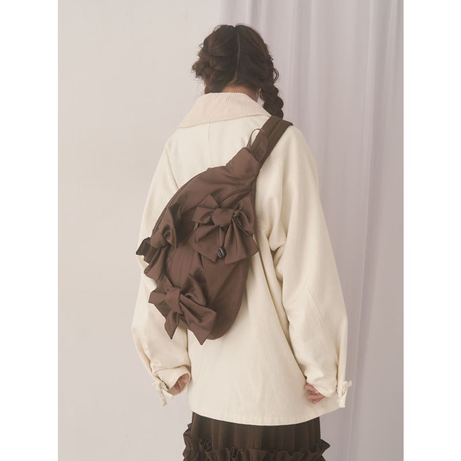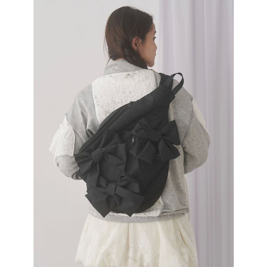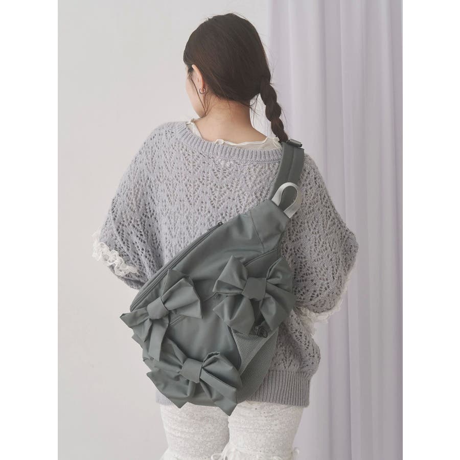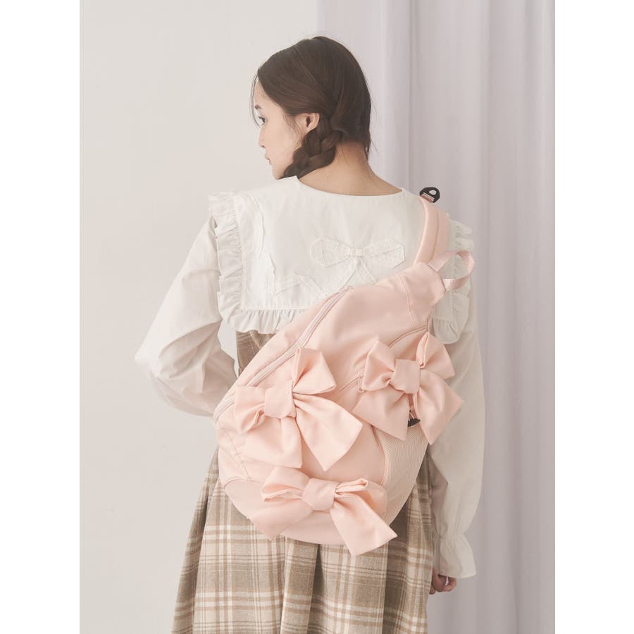 \ 人気No.1バッグ!!! /スポーティーなスリングバッグも大きなリボンでガーリーに?お出かけにも、学校にも、ライブにも大活躍の予感・・・!■デザイン 大小さまざまなリボンをあしらった、大容量のスリングバッグ。 フロント部分のリボンは、アクセサリーのようにスタイリングのポイントになります。 バックパックとはまた違った、新鮮な雰囲気をプラスできるアイテムです。 ■サイズ感 荷物が多い日でも安心の大きめサイズです。 内ポケットやメッシュポケットもついていて、 機能性もばっちりな一点です。 ■スタイリング いつものスタイリングにさっと背負ってお出かけしていただけるアイテムです。 スポーティでトレンド感のある雰囲気をプラスすることができます!【商品のお気に入り登録】ハートをクリック! 完売カラーの再入荷や、ラスト1点の通知、セールの際の通知も受け取ることができます。
