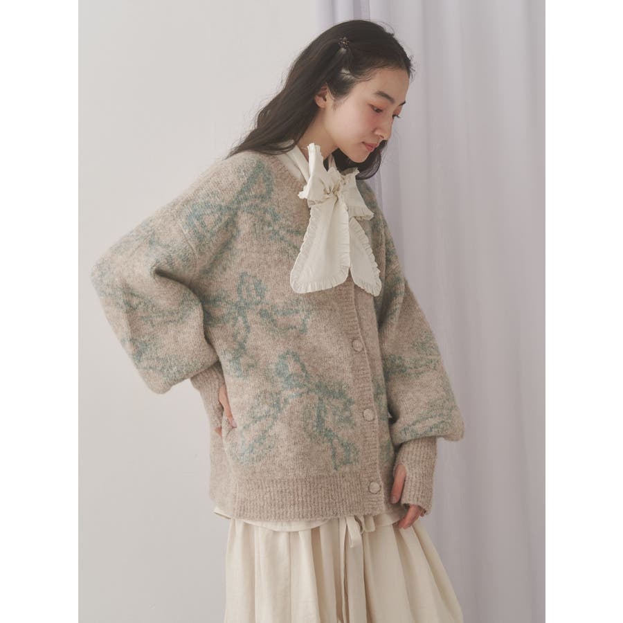 ribbon jacquard knit cardigan