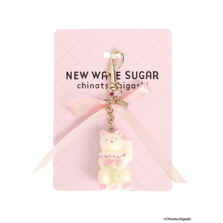 〇 Chinatsu Higashi× merry jenny(メリージェニー) collaboration item 〇 New Wave Sugar sugar cat 故郷・金沢に伝わる、砂糖でできた祝い菓子「金花糖(きんかとう)」を 現代に甦らせるかたちで再解釈した “NEW金花糖 / NEW WAVE SUGAR” より、人気の“お砂糖でできた招き猫(シュガーキャット)”をモチーフにしたデザインです。甘くて儚い砂糖菓子の世界観をそのまま、身につけるアイテムへ生まれ変わりました。砂糖のように繊細で、甘く可愛らしい魅力をまとうように、楽しんでもらえたら嬉しいです。やわらかな色合いのシュガーキャットに、ピンクのリボンを添えたチャーム。バッグやポーチに付けるだけで、甘くて儚い夢のような雰囲気をまといます。 簡単に取り付けられるので、毎日のコーディネートにさりげない可愛さを添えて。甘いシュガーキャットが、とっておきなときめきを届けます。. . . . . . . . . . . . . . . . . . . . . . . . .【商品のお気に入り登録】ハートをクリック!完売カラーの再入荷や、ラスト1点の通知、セールの際の通知も受け取ることができます。