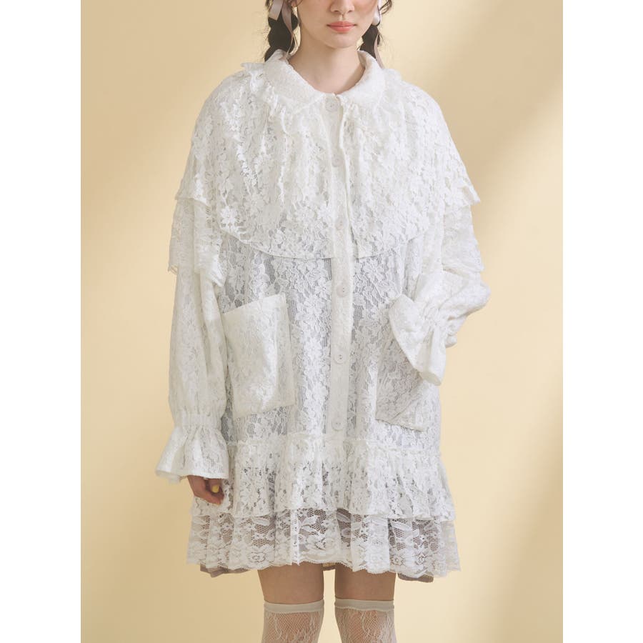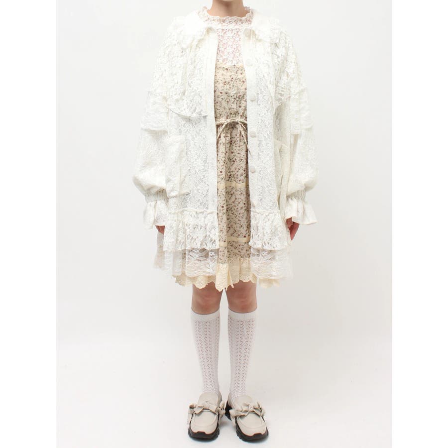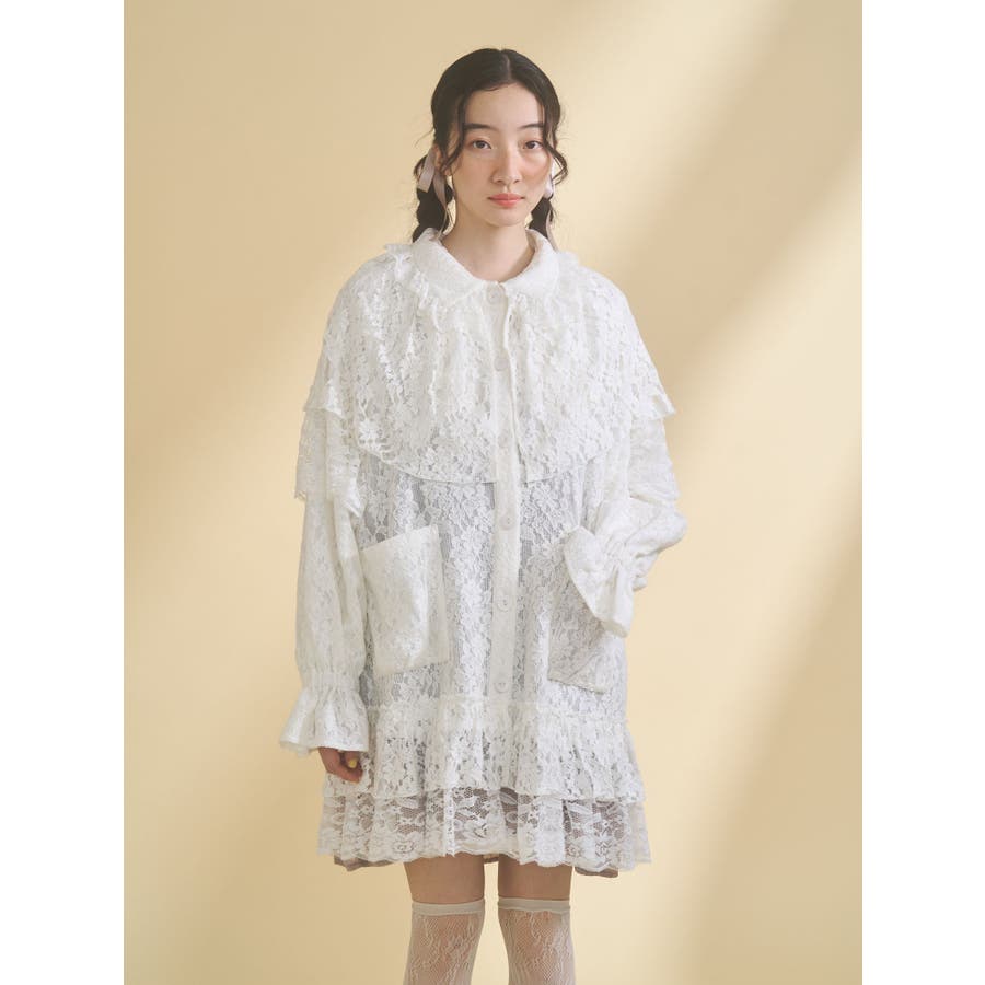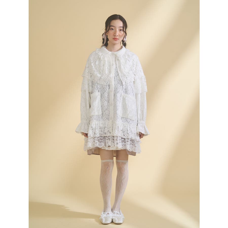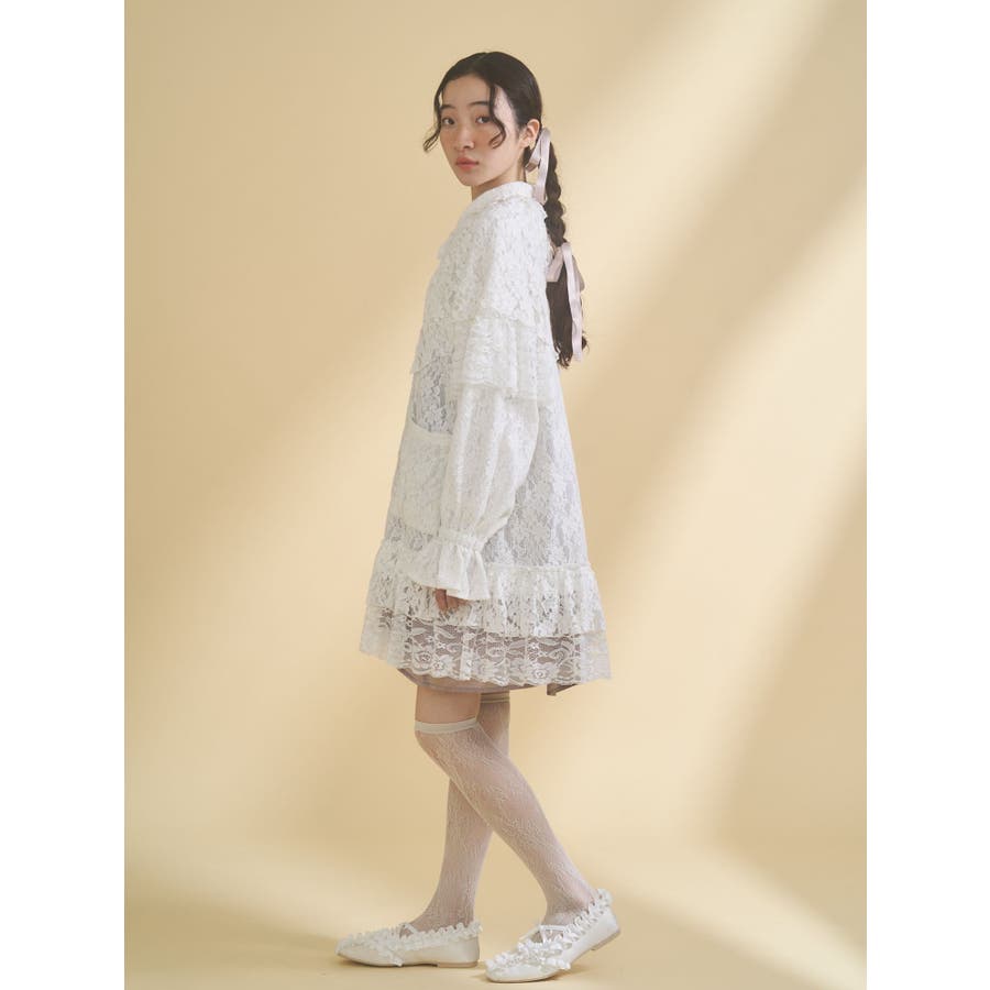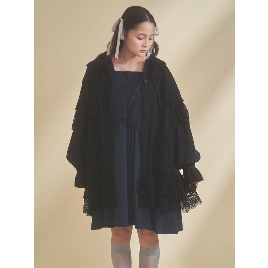 | 素材 | (仮)表地:綿60% ナイロン40% 別布レース:綿60% ナイロン40% 衿レース:レイヨン 60% スパンデックス 40% 裾レース:レイヨン 60%スパンデックス 40% |