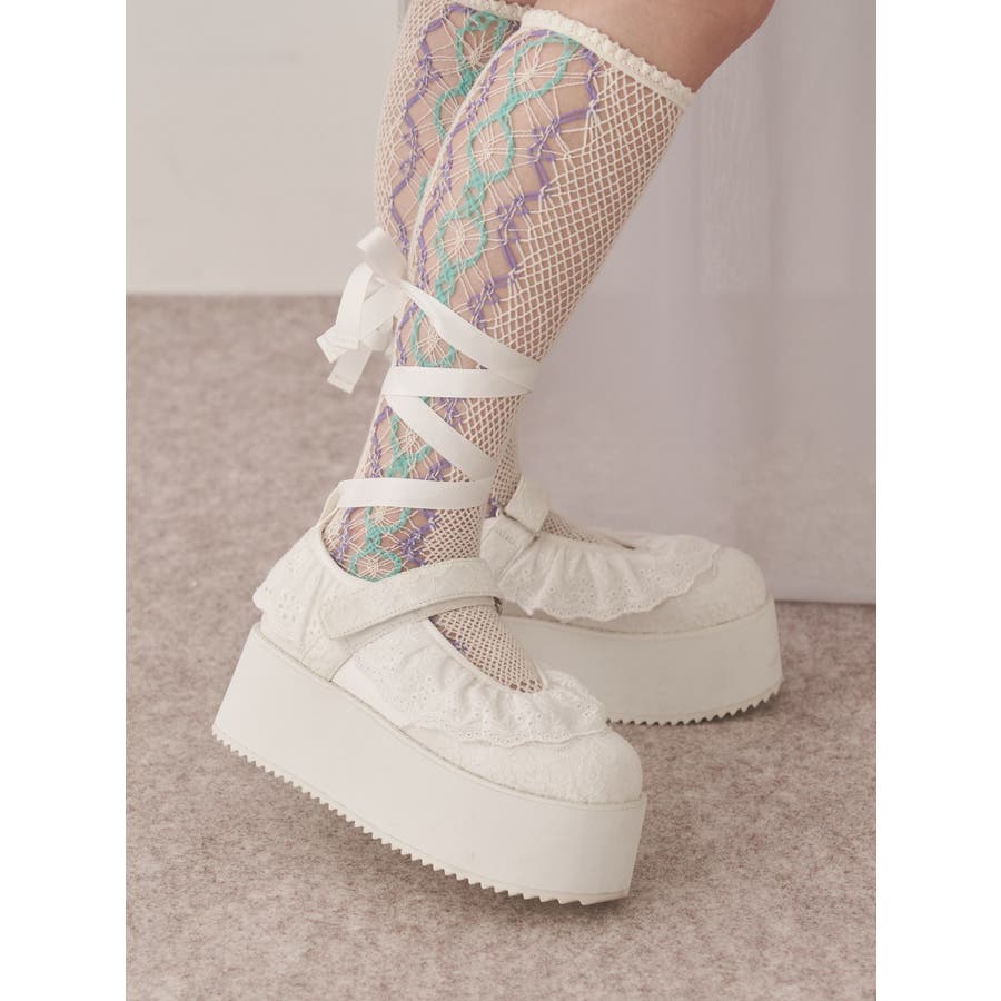 フリルレースアップ厚底スニーカー
