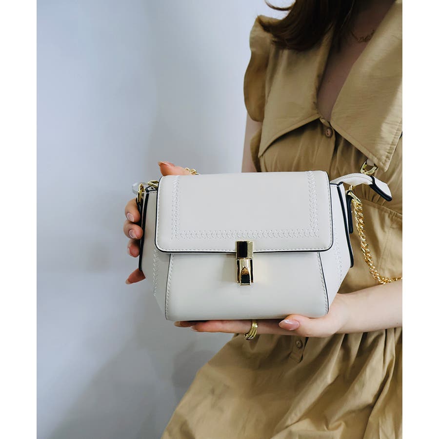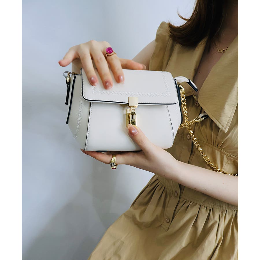 フロントにあしらったパーツは高級感とトレンド感があり、金具を下に押せば開閉できます。