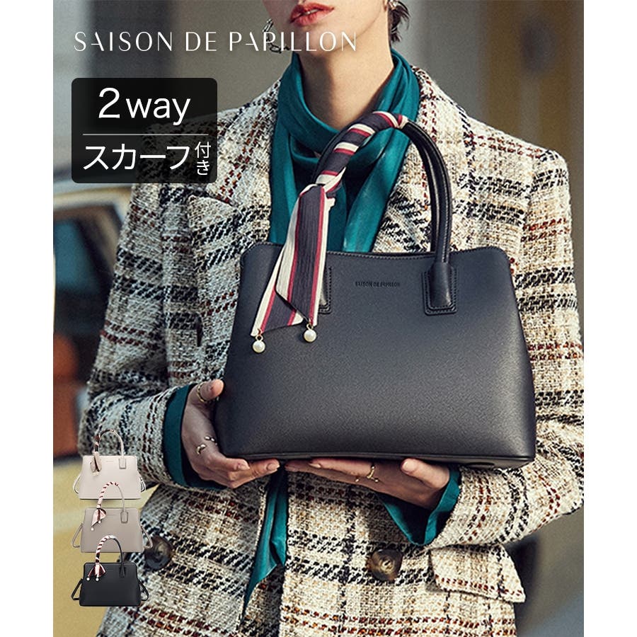 華やかなスカーフがこなれた印象を与えてくれる2wayハンドバッグ。
