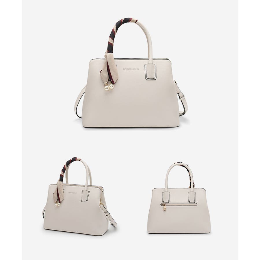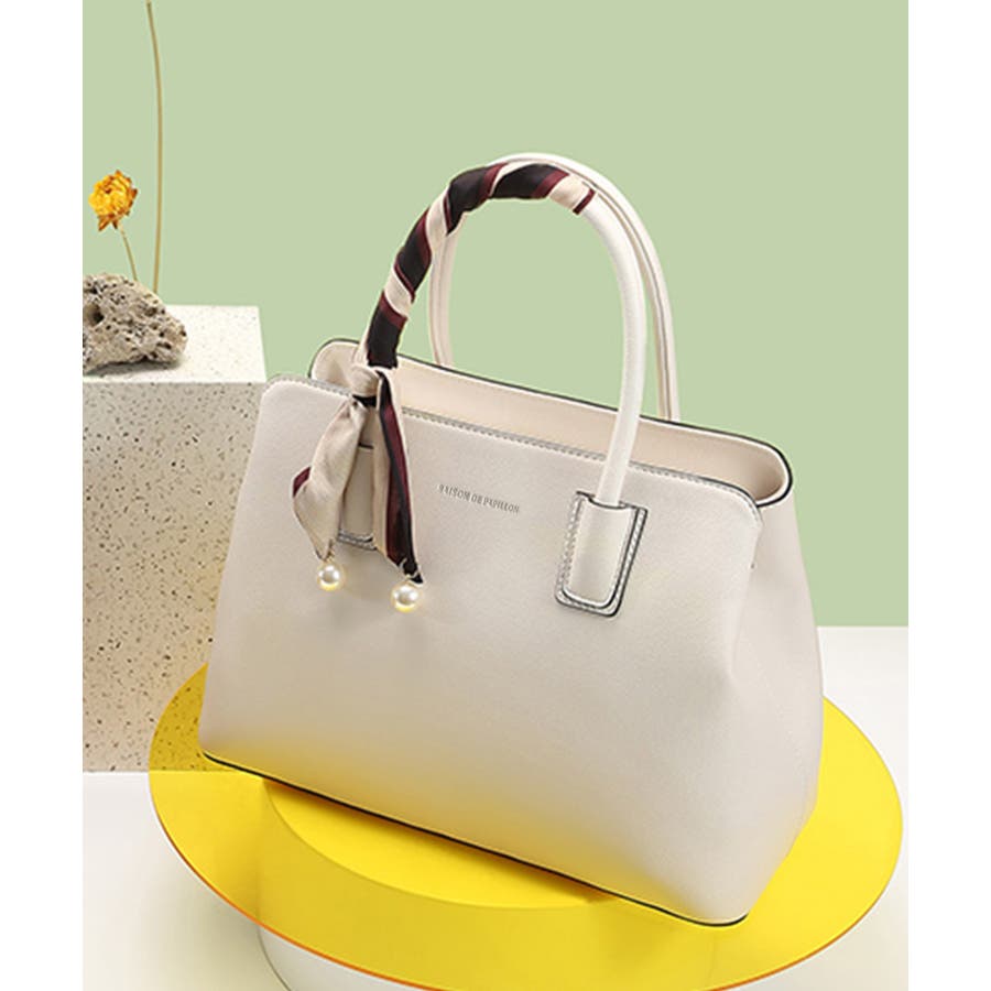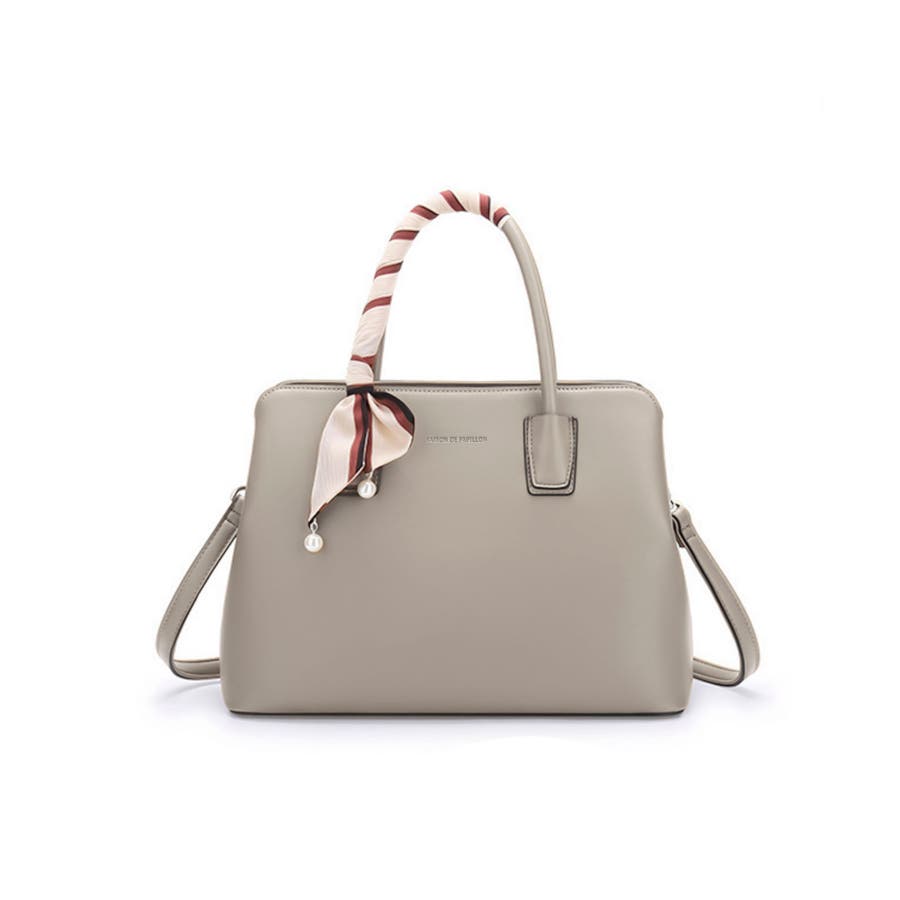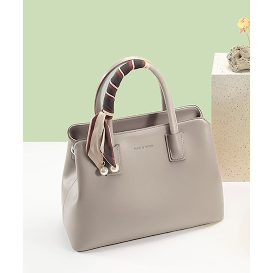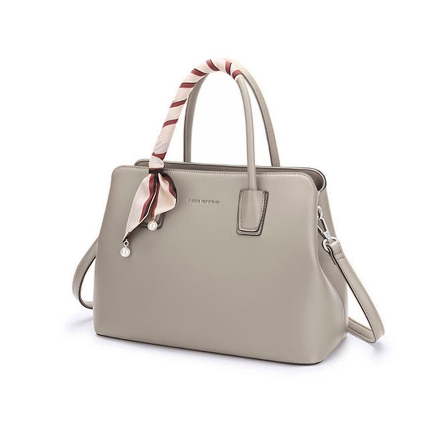 【グレイッシュベージュ】スカーフ付き2wayPUレザーハンドバッグ
