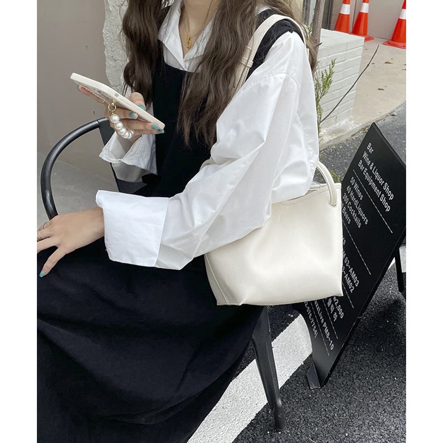ショルダーを付けずそのまま持っても、手が空かない時はショルダーを付けて手提げ、肩掛けにと気分やその日の着こなしに合わせて楽しめます。