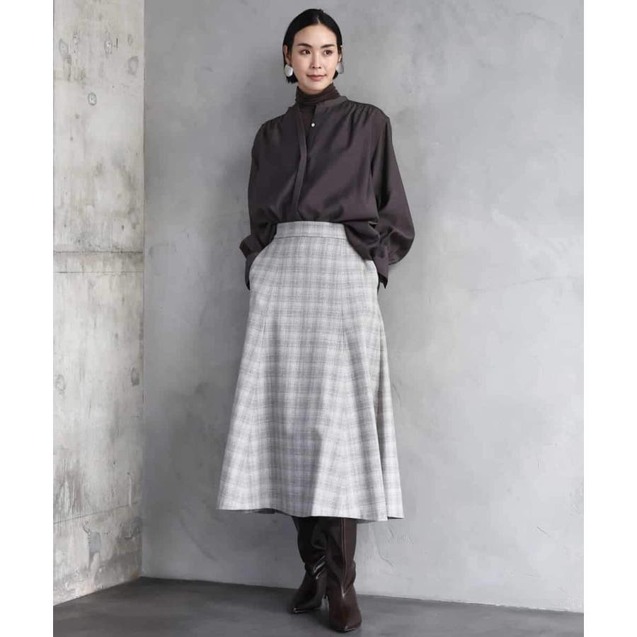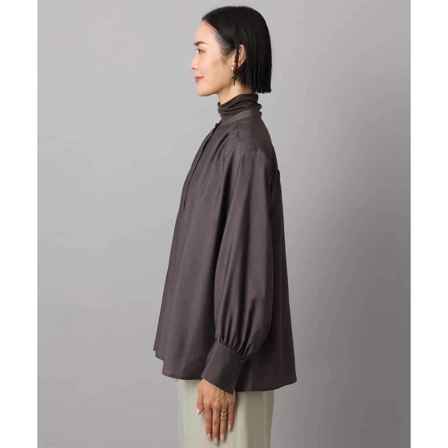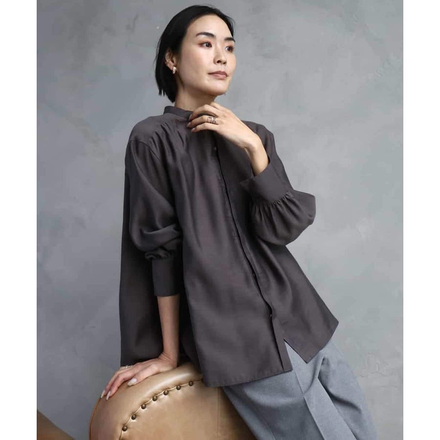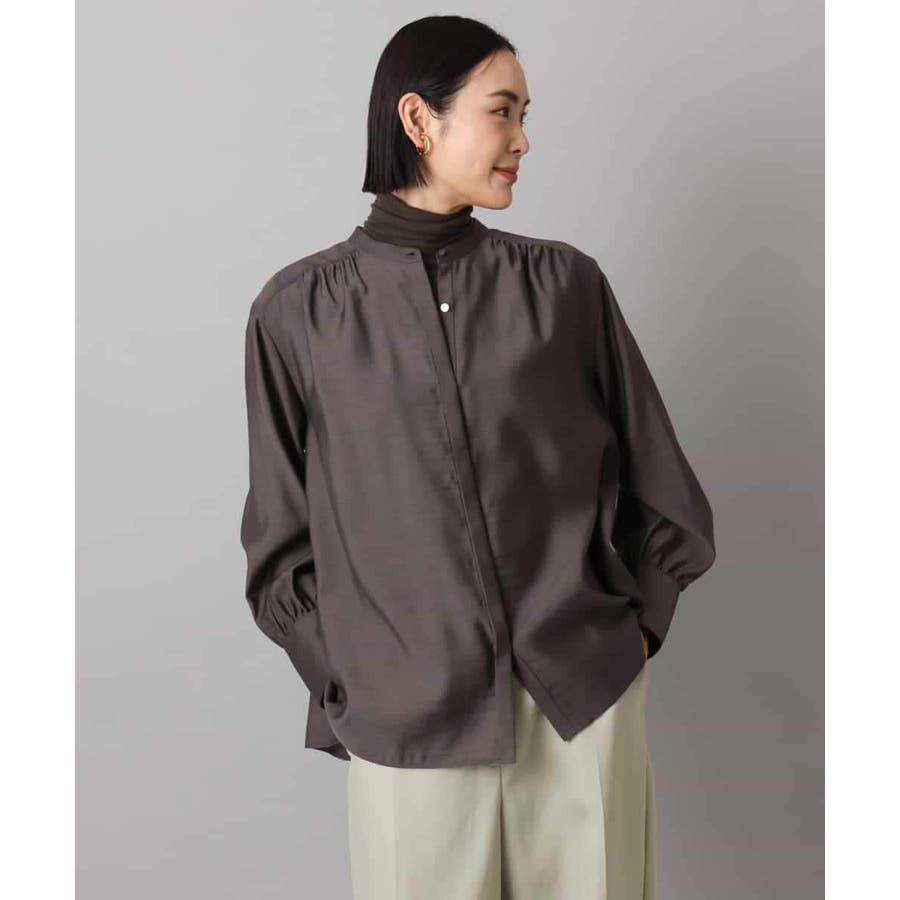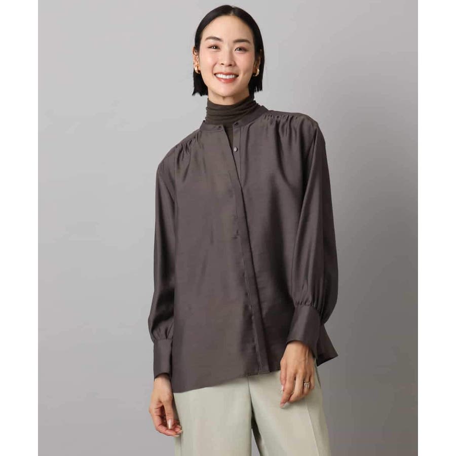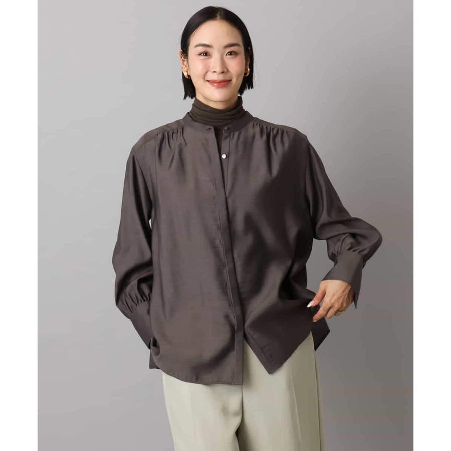 程よい透け感のある軽やかな素材で、ボトムスを選ばず幅広くコーディネートできます。スカートやパンツに合わせて、シーンに応じた上品な着こなしが楽しめます。軽やかで適度なハリ感がボディラインを拾わず、美しいシルエットをキープ。インナーにハイネックカットソー[FMKAD19130]を重ねたレイヤードスタイルがおすすめです。同デザインのチェック柄[FMBAD09260]もご用意いたしております。