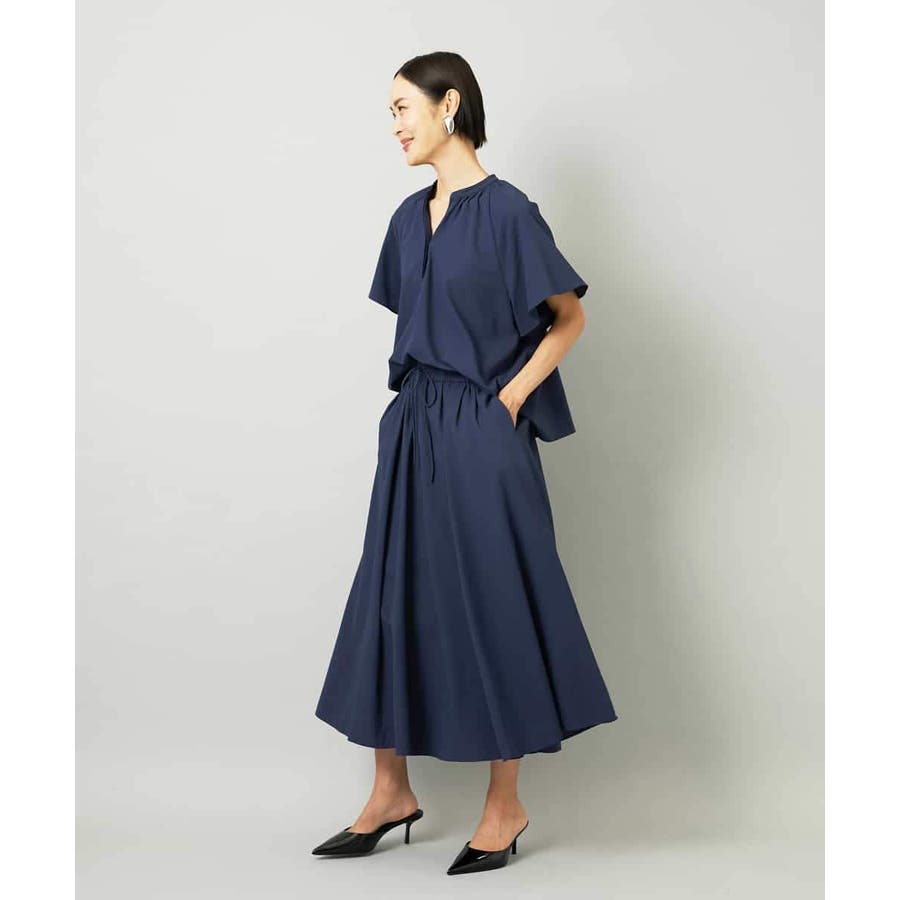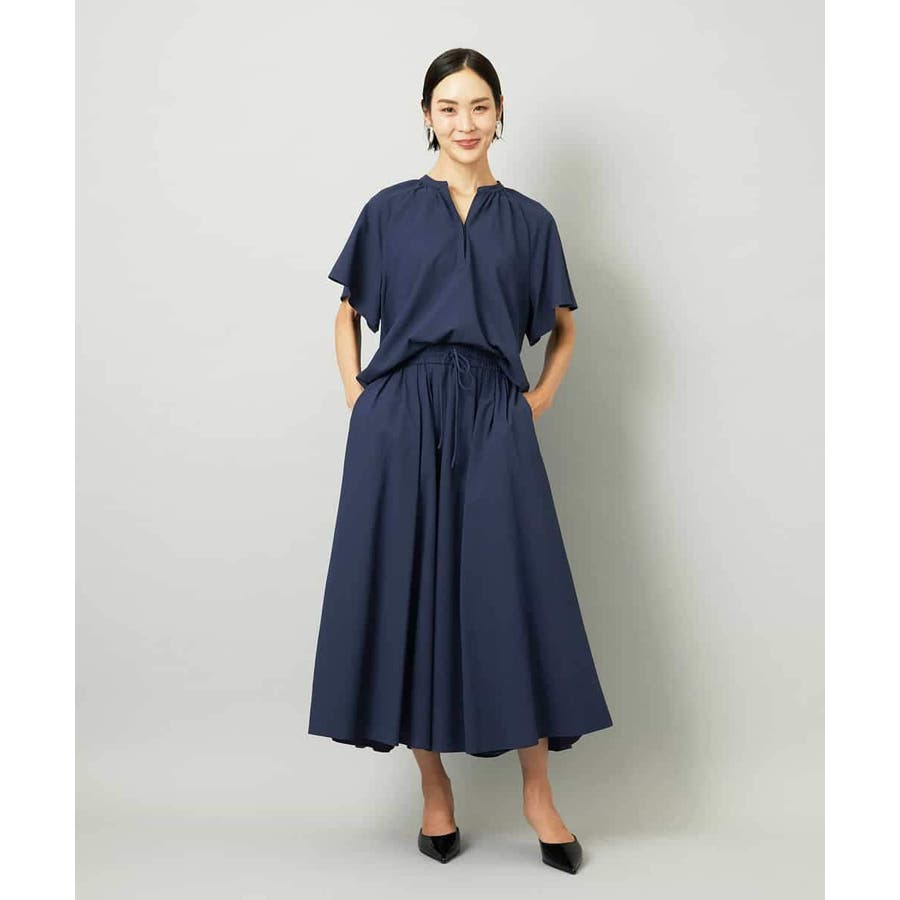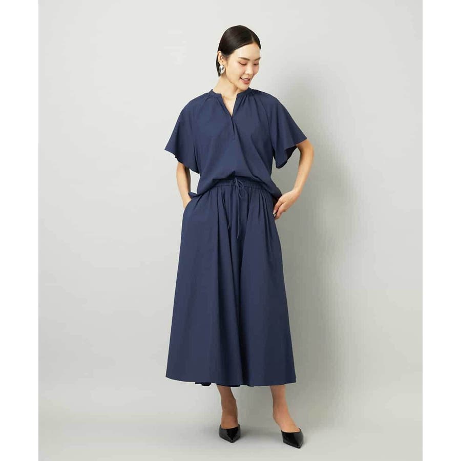 ギャザーによる立体感が抜け感を演出し、同素材のスカートと合わせてセットアップとしても楽しめます。40サイズは限定店舗展開です。