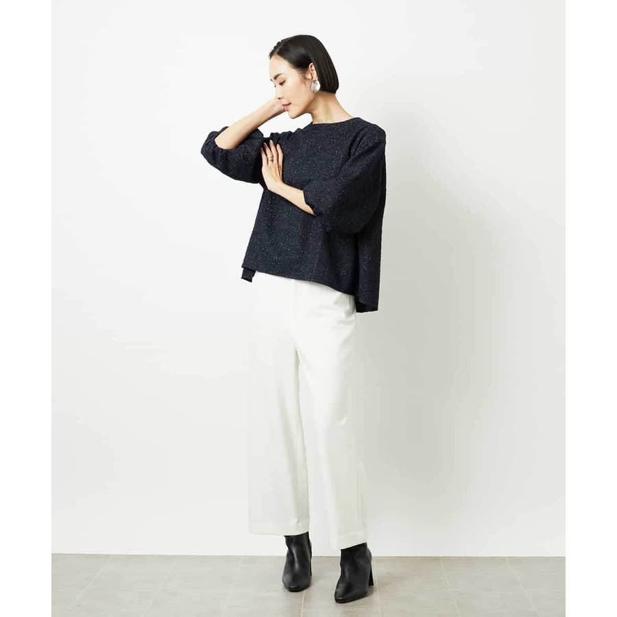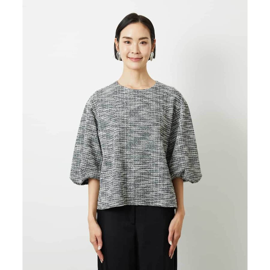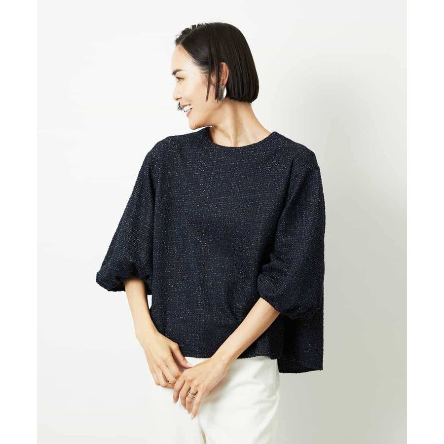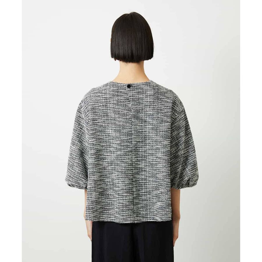 ファンシーツイードのような風合いが上品な、インレイジャージ素材のプルオーバー。ジャージならではの動きやすさと扱いやすさで、日常のコーディネートにも心地よく寄り添います。スリーブコンシャスなデザインが華やぎを添え、1枚でスタイリングが決まるのも嬉しいポイント。オンオフ着まわせる、一枚あると重宝するアイテムです。40サイズは限定店舗展開です。