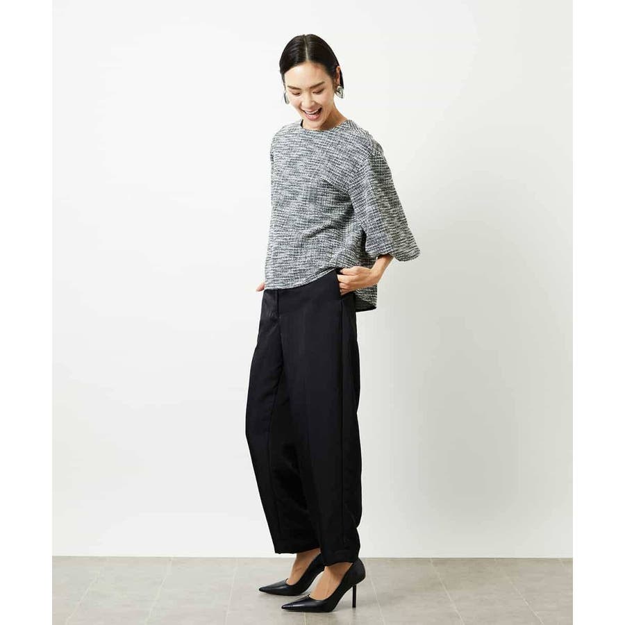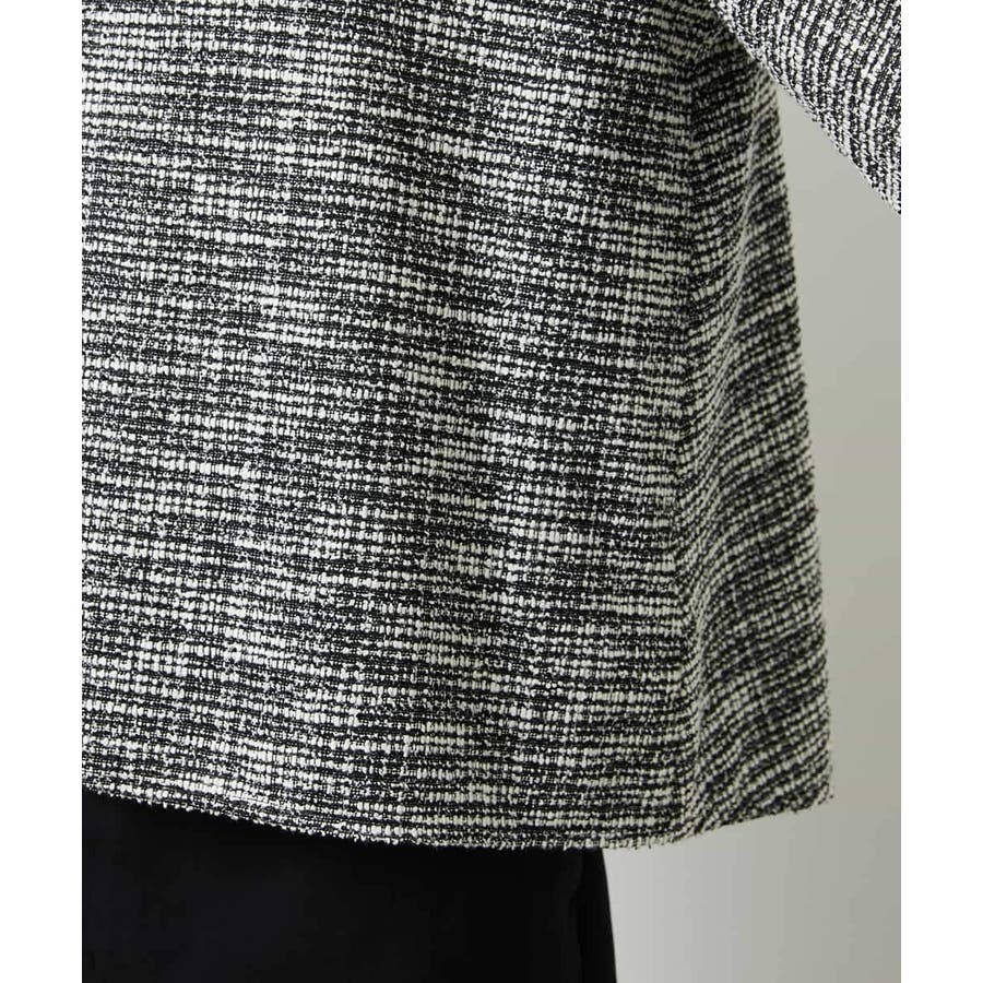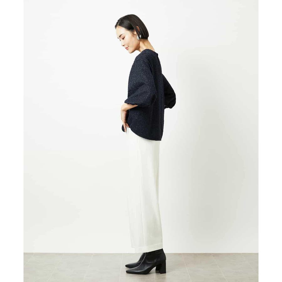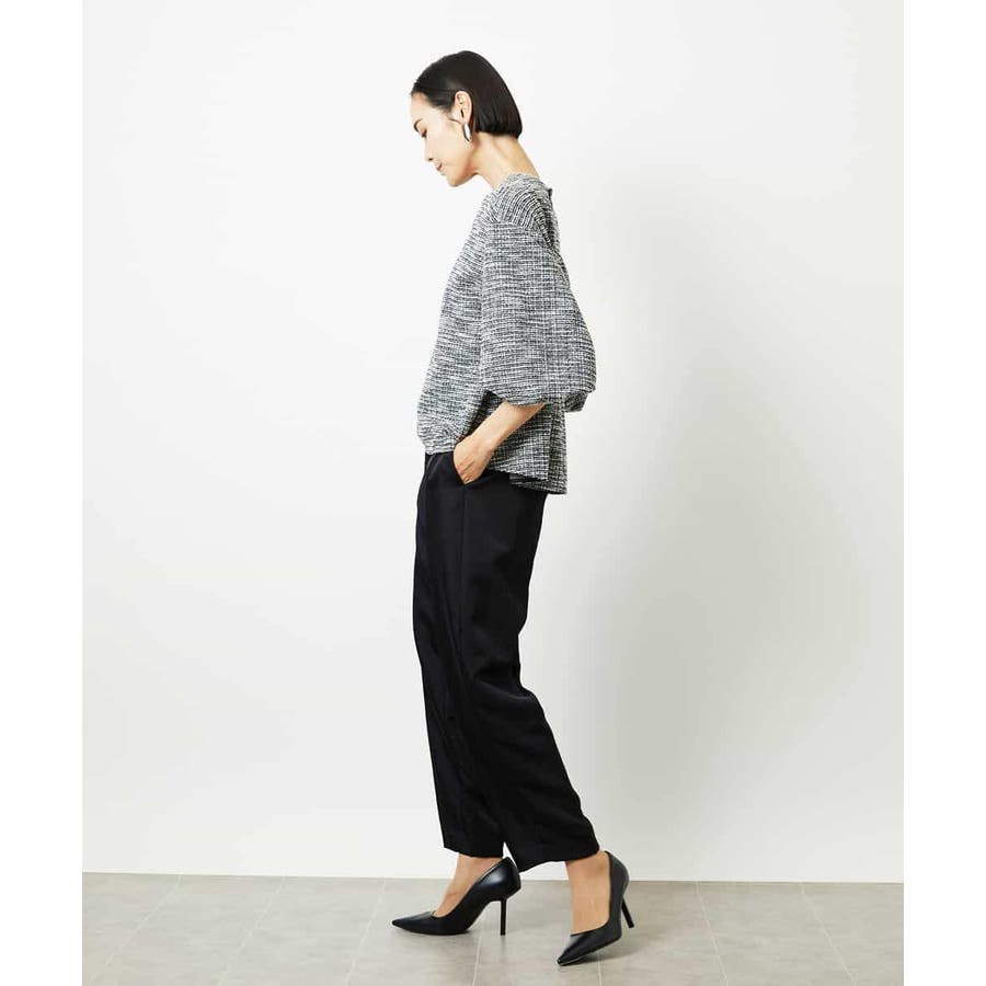 ファンシーツイードのような風合いが上品な、インレイジャージ素材のプルオーバー。ジャージならではの動きやすさと扱いやすさで、日常のコーディネートにも心地よく寄り添います。スリーブコンシャスなデザインが華やぎを添え、1枚でスタイリングが決まるのも嬉しいポイント。オンオフ着まわせる、一枚あると重宝するアイテムです。40サイズは限定店舗展開です。