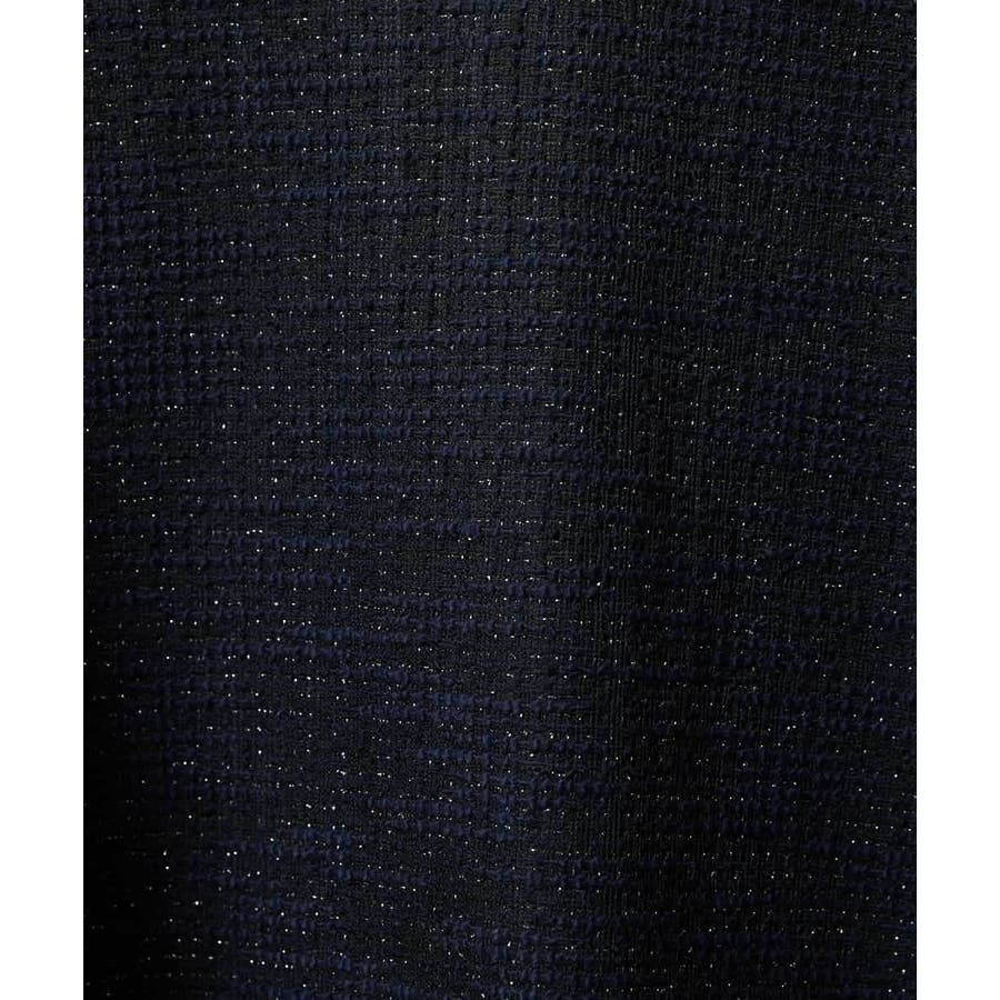 キラキラとしたラメの光沢と、コットンスラブならではの立体的な表情が魅力の素材です。さらに、ジャージー素材特有のストレッチ感により、クラシカルな見た目ながらもほどよい抜け感を演出してくれます。