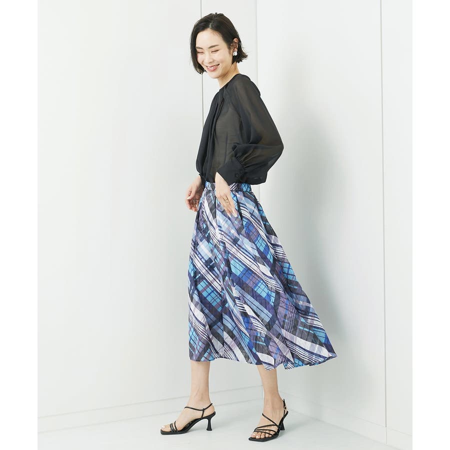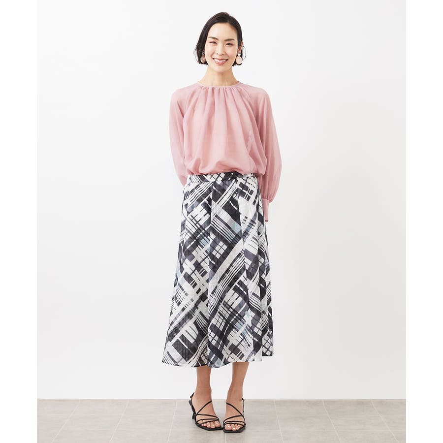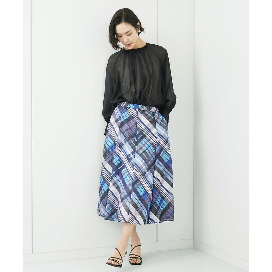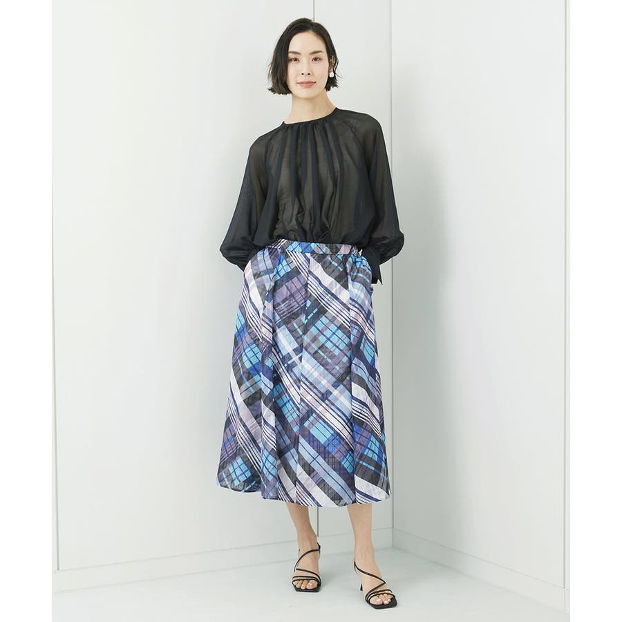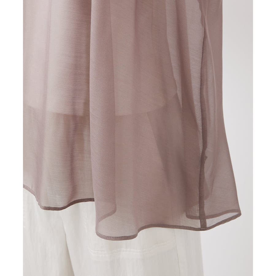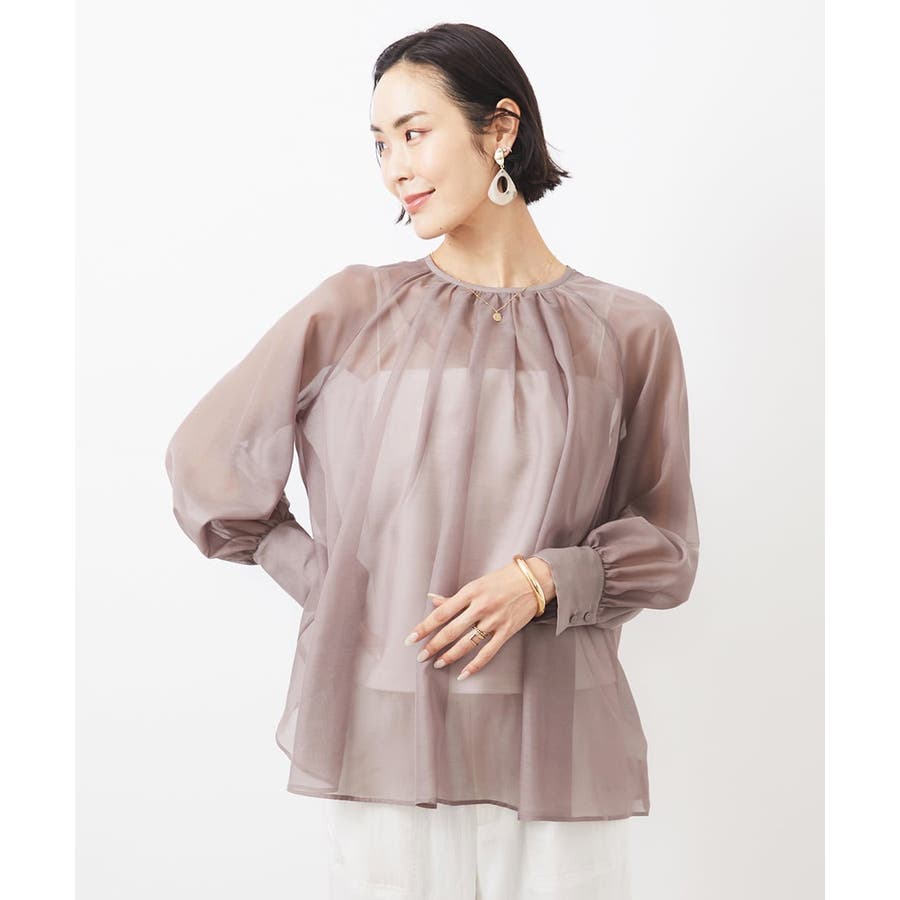 素材の特性を活かしたシアーブラウス。インでもアウトでも着られるレングス設定です。ボリュームのあるパフスリーブも前はすっきり、後ろにボリュームを持たせることで横から見た時も袖が太すぎずフェミニンな印象に仕上がっています。40サイズは限定店舗展開です。