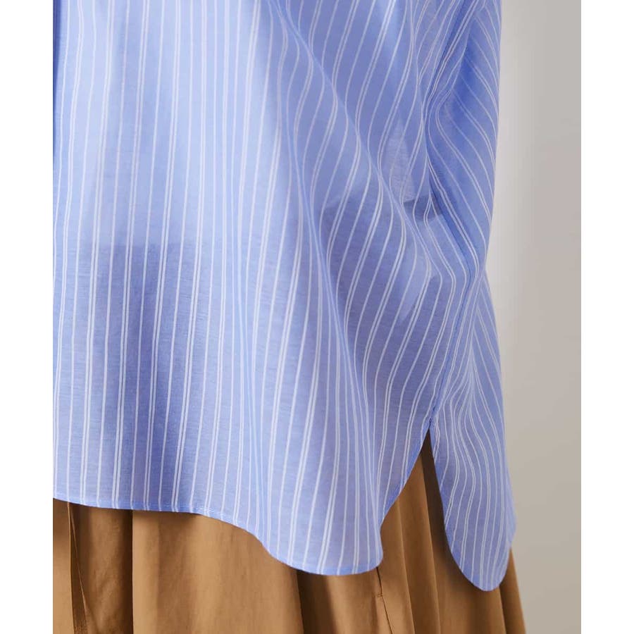 シルクコットンの先染めストライプ。程よい透け感とシルク混ならではの発色の良さと質感の良さが特徴。