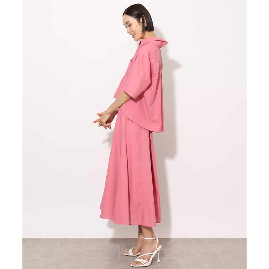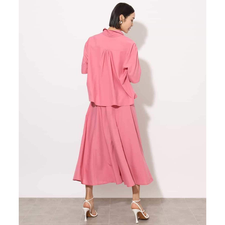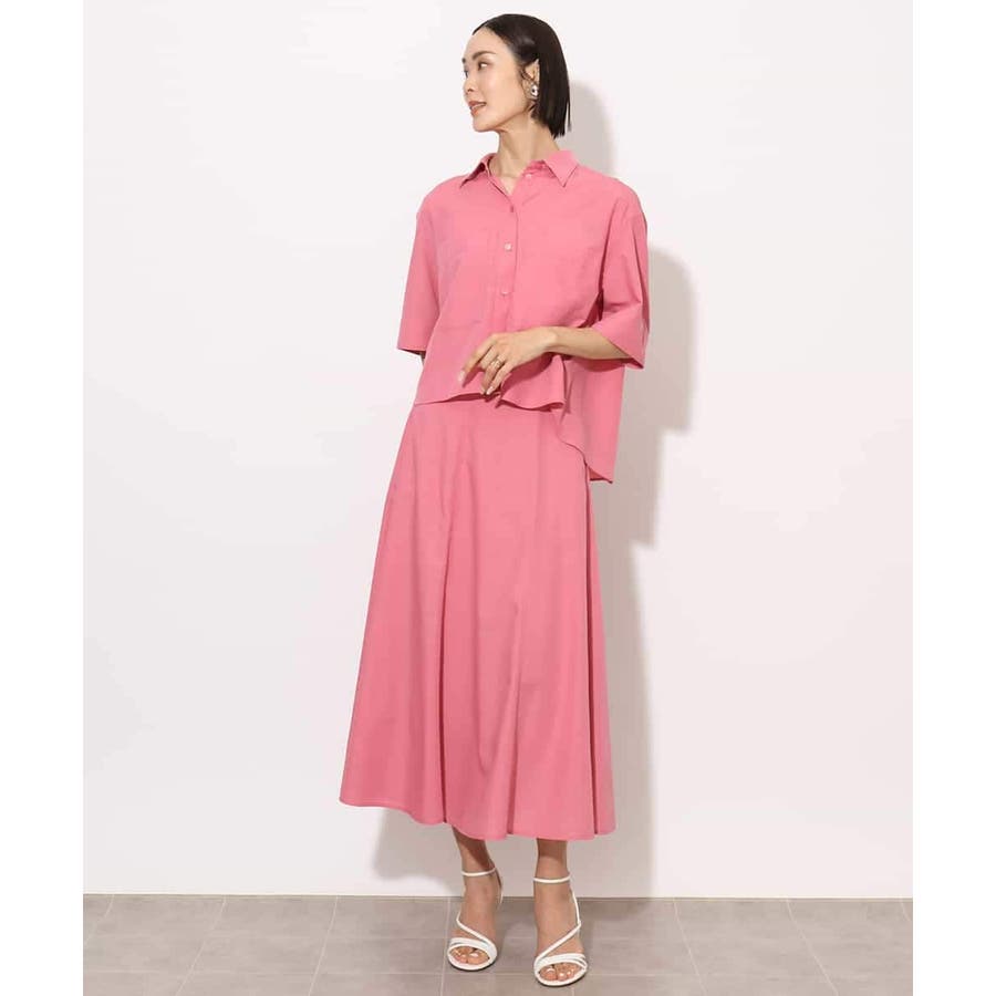 同素材のフレアースカート[FMHHA08220]とセットアップコーデがおすすめです。 シャツ単品使いでも羽織りとしても、スタイリングしやすいアイテムなので、キャミやタンクトップのインナーの上に軽く羽織り、ワイドパンツやチノパンのボトムと合わせるのもAラインのシルエットが協調されかっこよくきまります。
