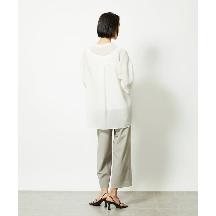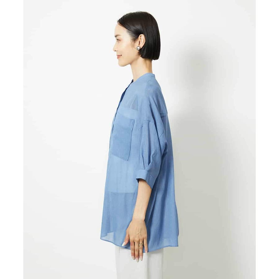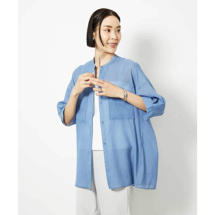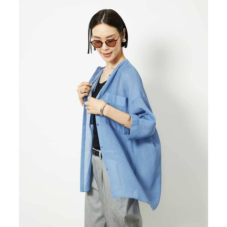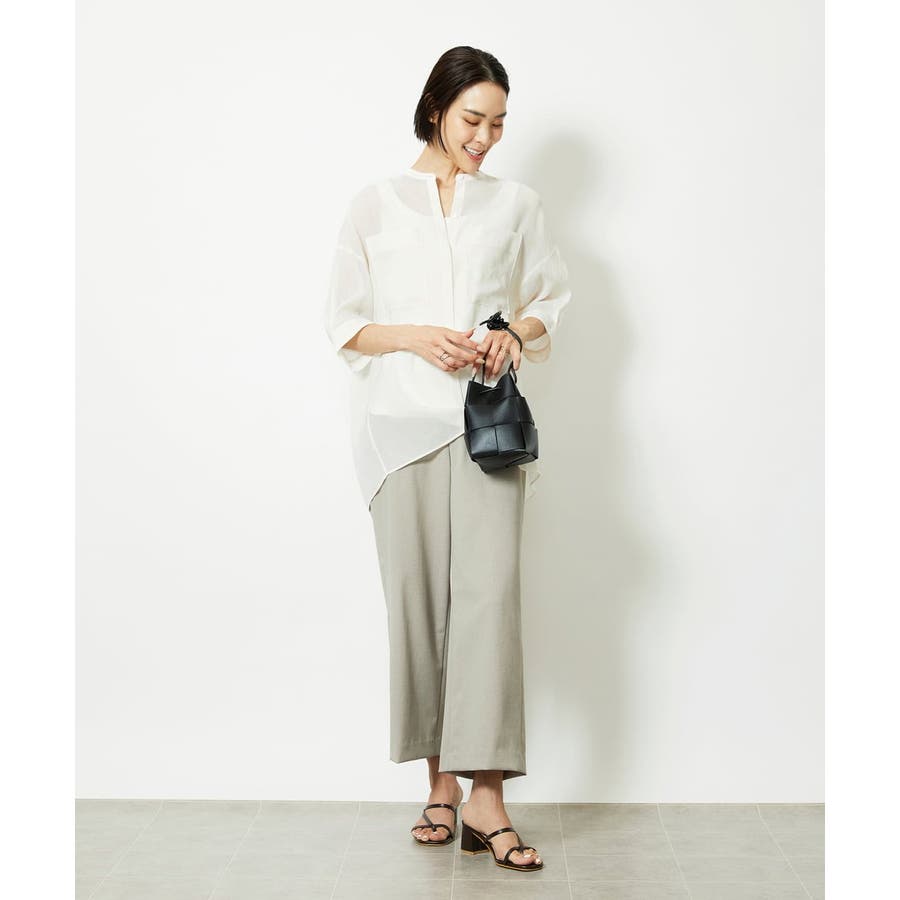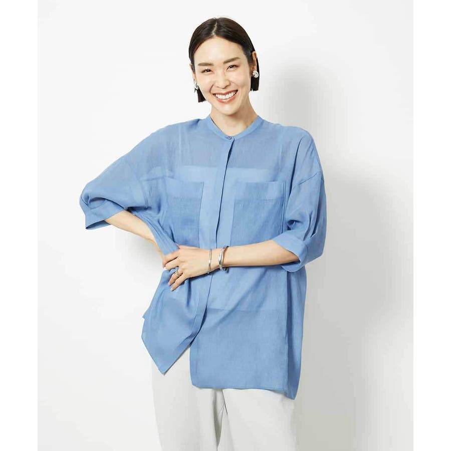 軽やかな素材で、風通しがよく暑い季節も快適に過ごせます。襟元を後ろに抜いて着るとこなれ感が出て、パフスリーブがさりげなくフェミニンな印象に。前だけインすることで、上半身がコンパクトにまとまり、旬な着こなしに仕上がります。前を開けて羽織りとしても使える、着回し力の高い一着です。40サイズは限定店舗展開です。