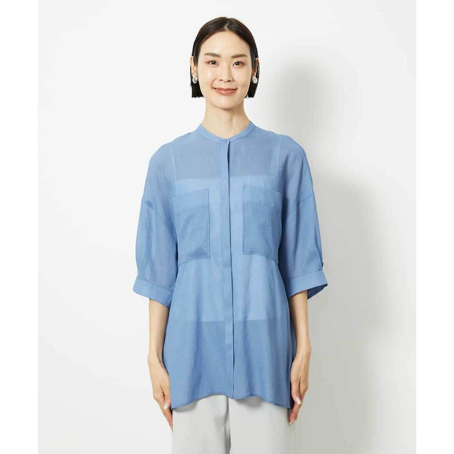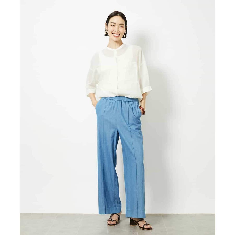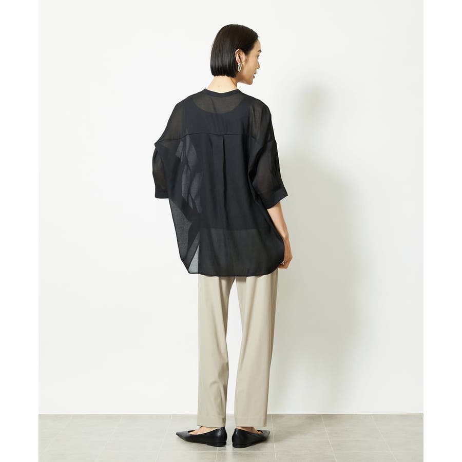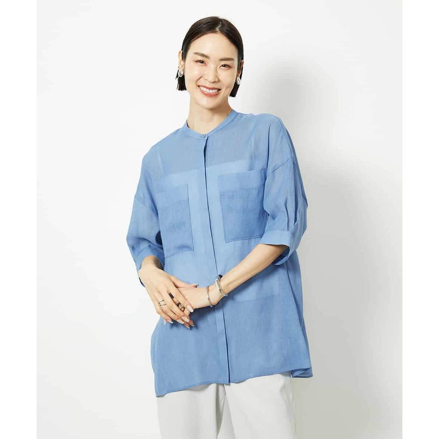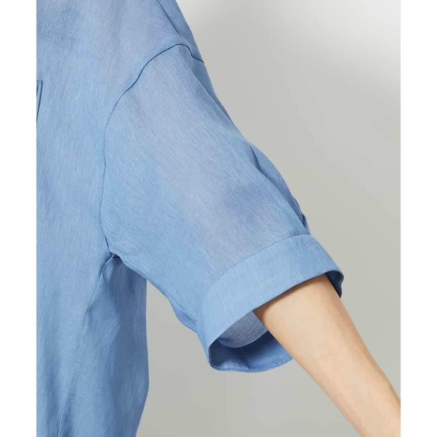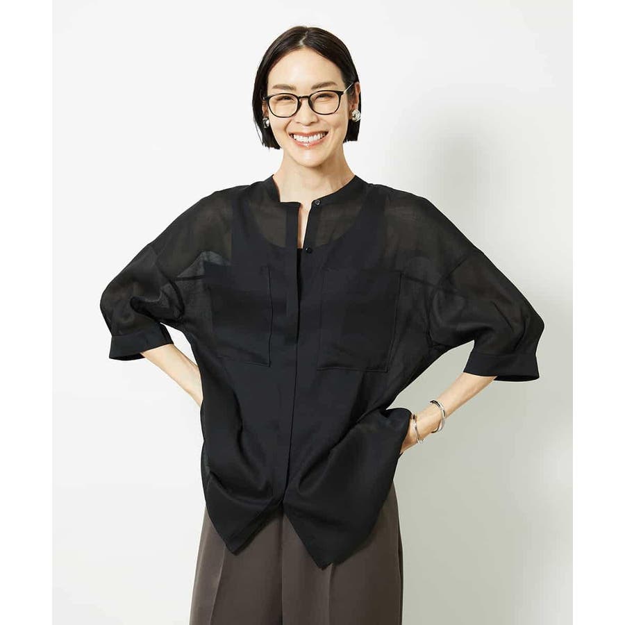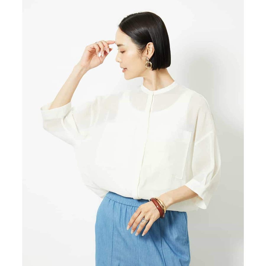 軽やかな素材で、風通しがよく暑い季節も快適に過ごせます。襟元を後ろに抜いて着るとこなれ感が出て、パフスリーブがさりげなくフェミニンな印象に。前だけインすることで、上半身がコンパクトにまとまり、旬な着こなしに仕上がります。前を開けて羽織りとしても使える、着回し力の高い一着です。40サイズは限定店舗展開です。