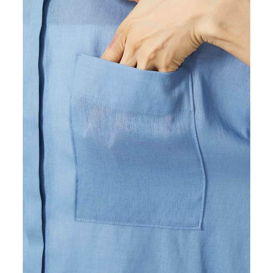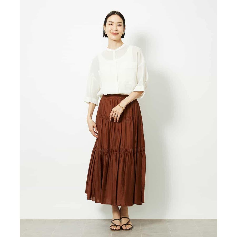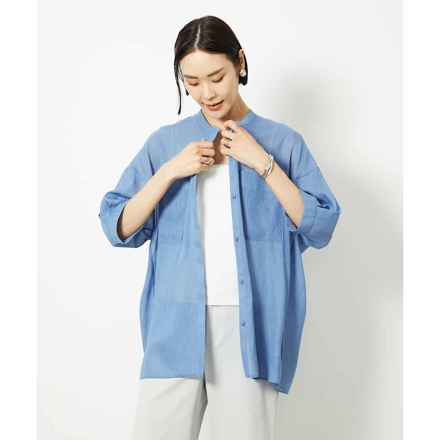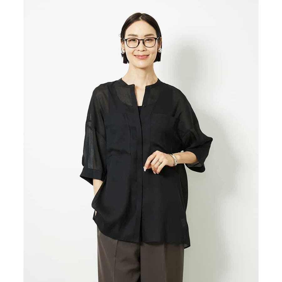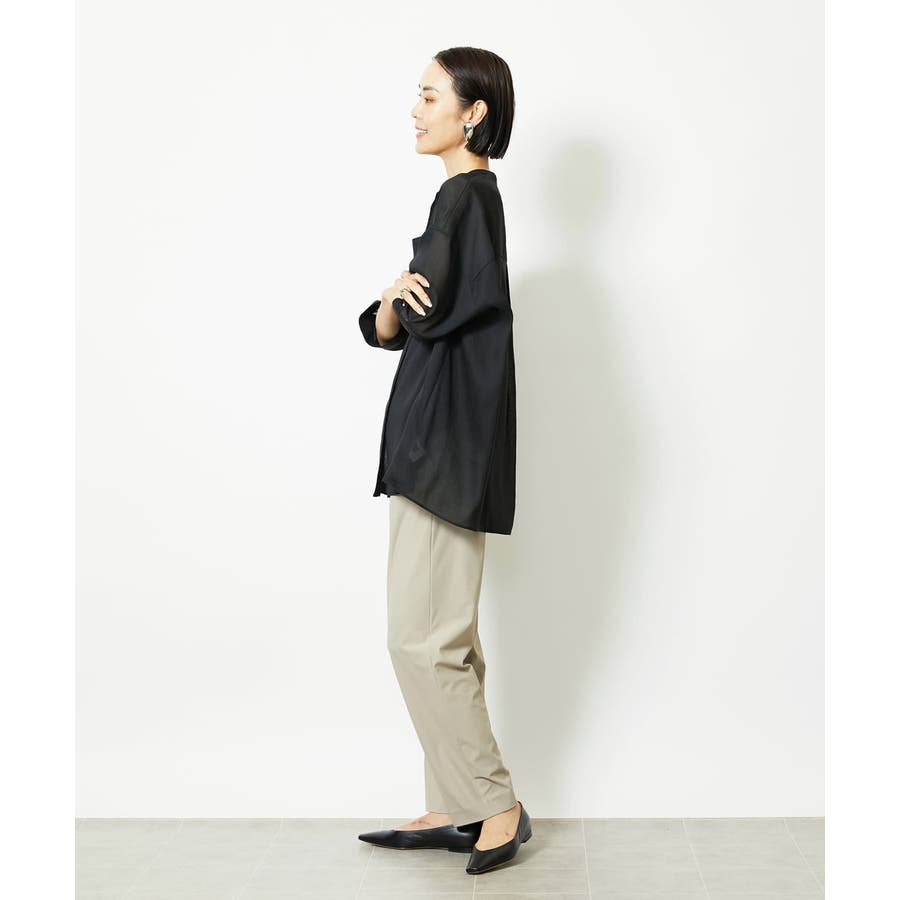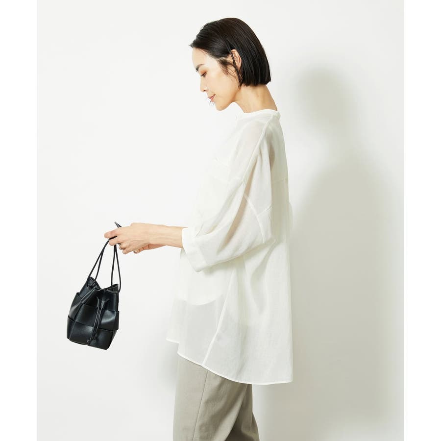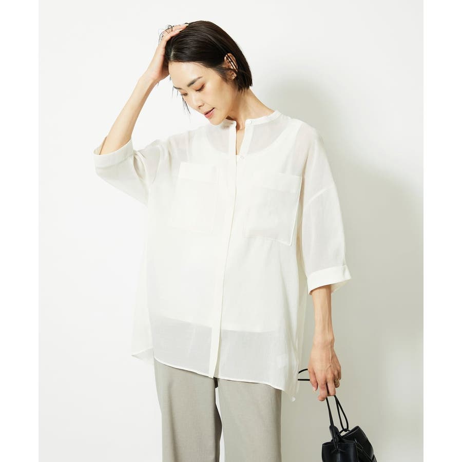 軽やかな素材で、風通しがよく暑い季節も快適に過ごせます。襟元を後ろに抜いて着るとこなれ感が出て、パフスリーブがさりげなくフェミニンな印象に。前だけインすることで、上半身がコンパクトにまとまり、旬な着こなしに仕上がります。前を開けて羽織りとしても使える、着回し力の高い一着です。40サイズは限定店舗展開です。