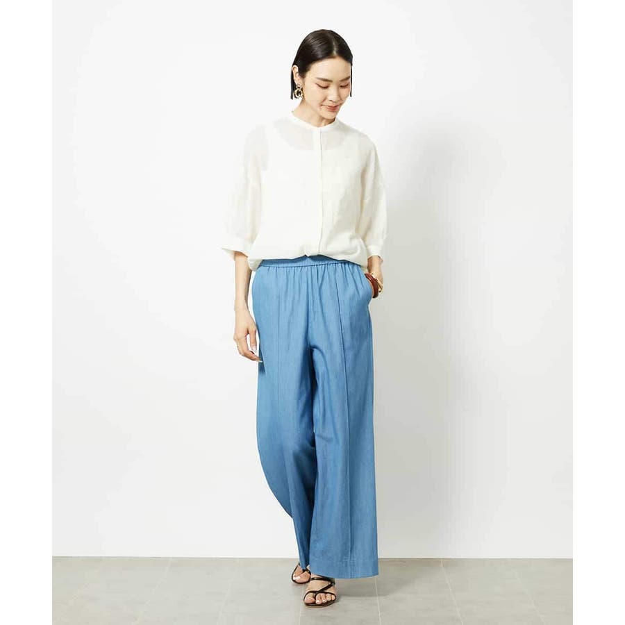 薄手で程よくハリのあるラミーライクな質感が、夏らしい軽やかさを演出します。涼しげなシャーベットトーンのカラーで、見た目にも爽やかな印象に。