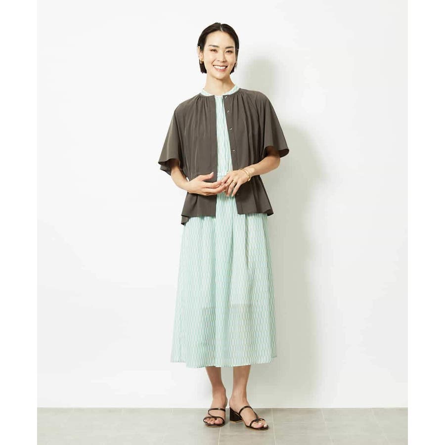 同素材のパンツとのセットアップがおすすめです。また、インナーにキャミやTシャツをレイヤードさせたり、ワンピース等に羽織りとしてご着用いただくのも◎