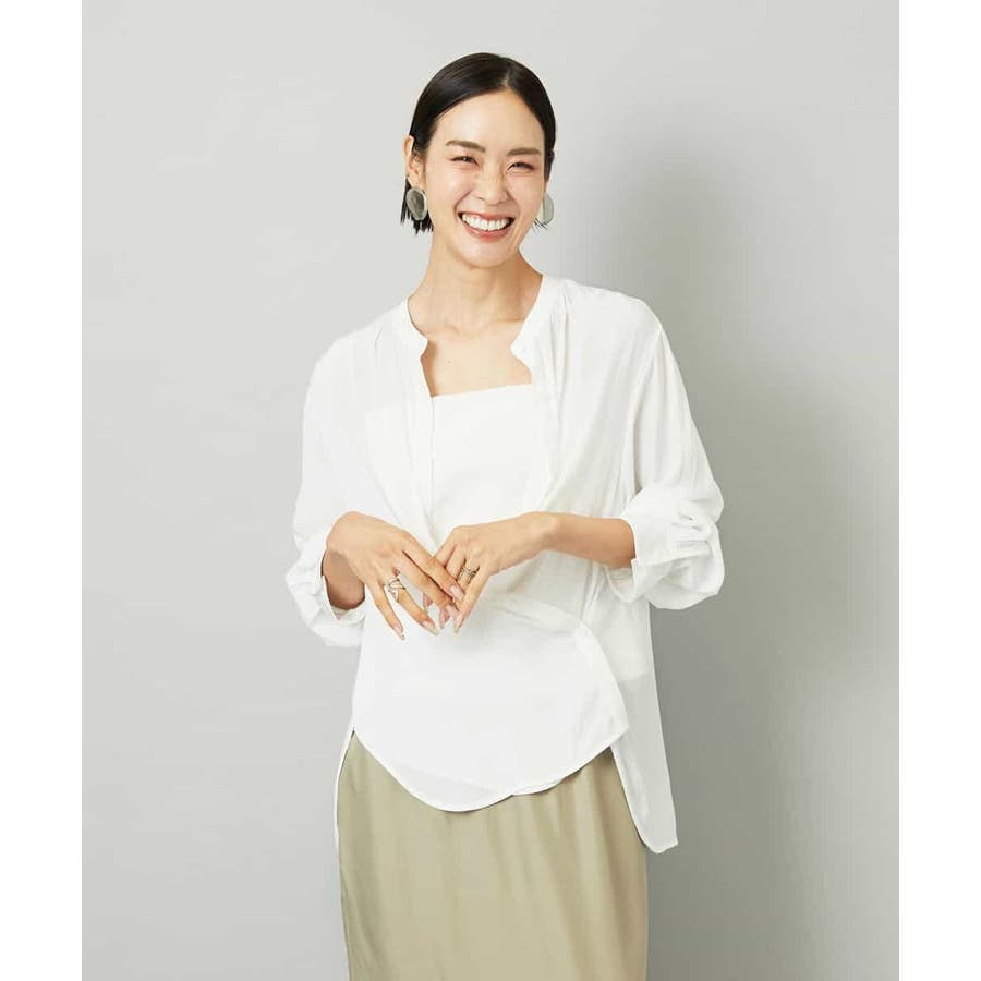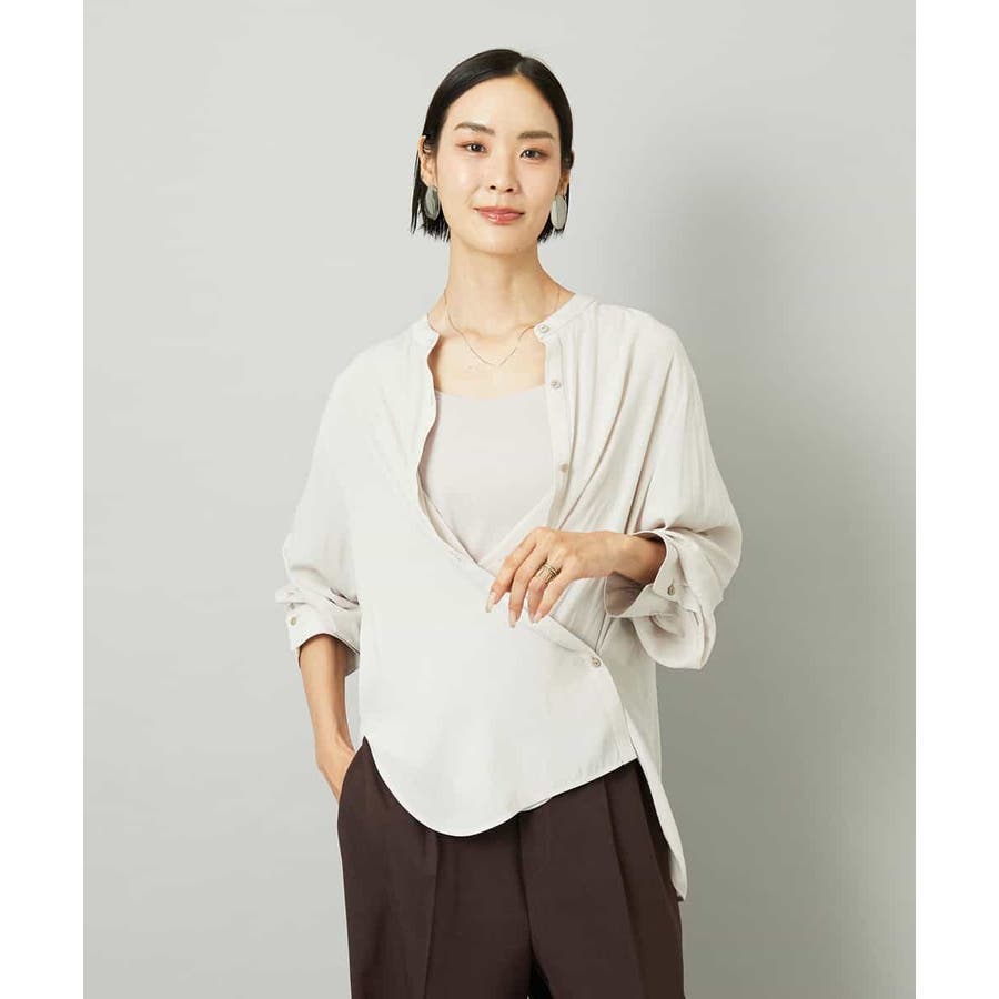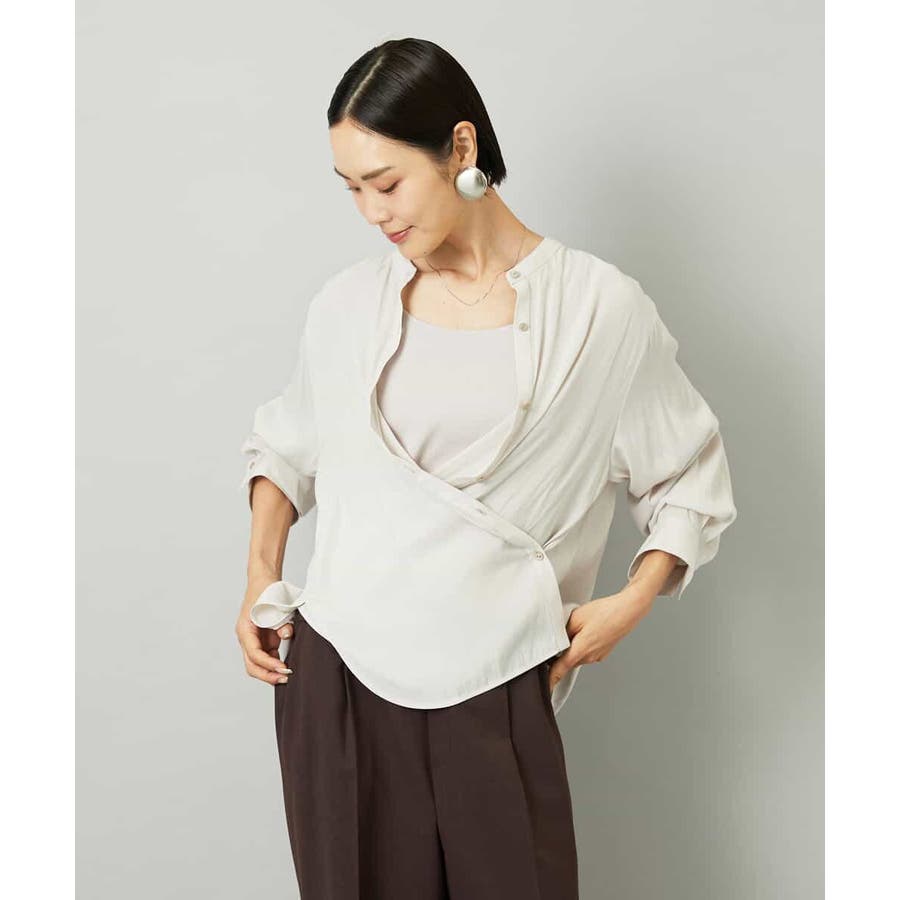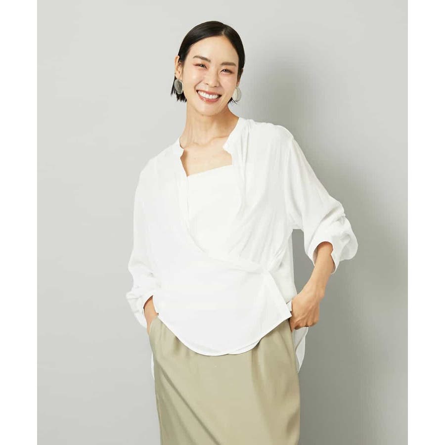 脇のボタンを留めればカシュクール風にも着こなせ、キャミソールの上にさらりと羽織れる3WAY仕様で、幅広いスタイリングが楽しめます。40サイズは限定店舗展開です。