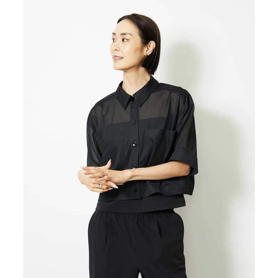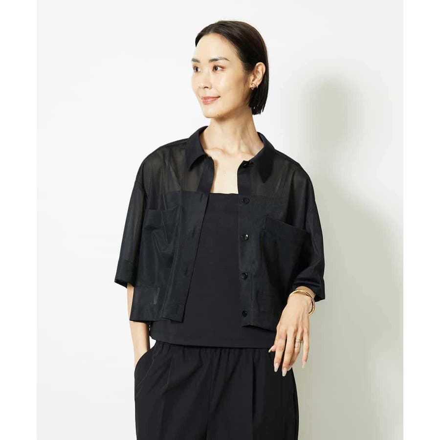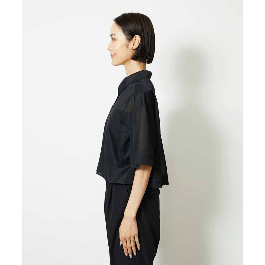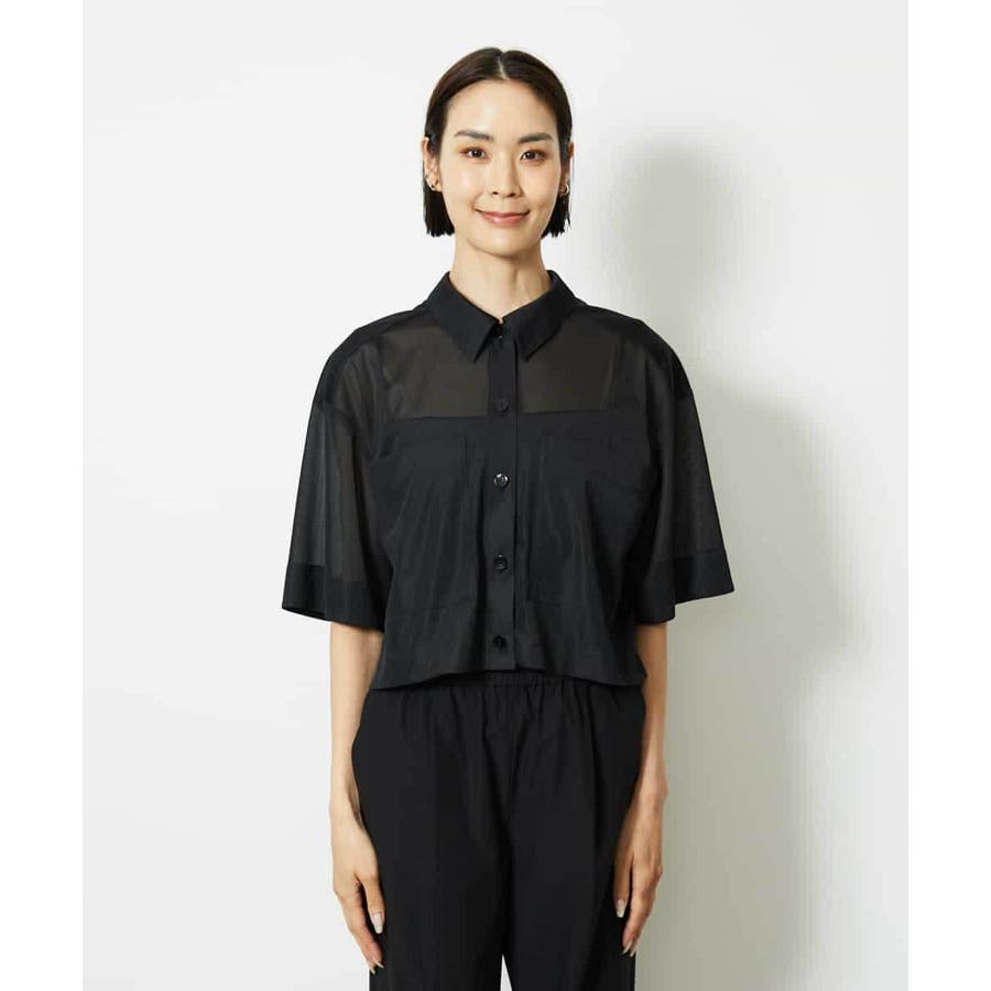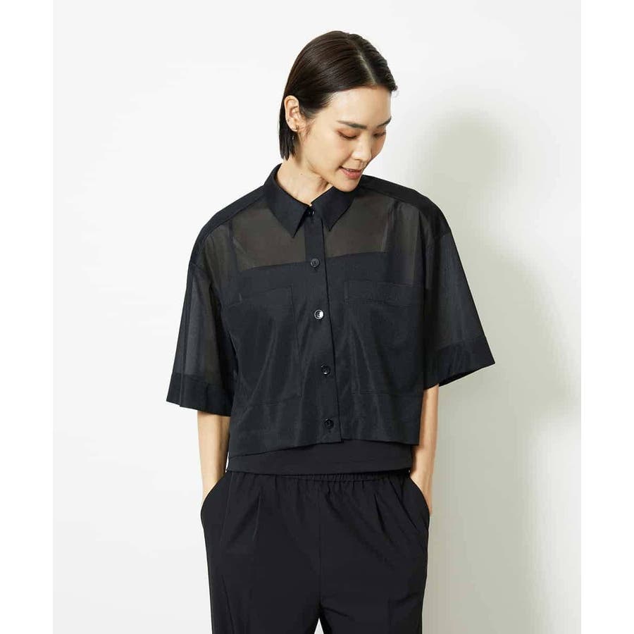 シアー感のあるトリコットジャージ素材を使用した、クロップド丈のシャツ。