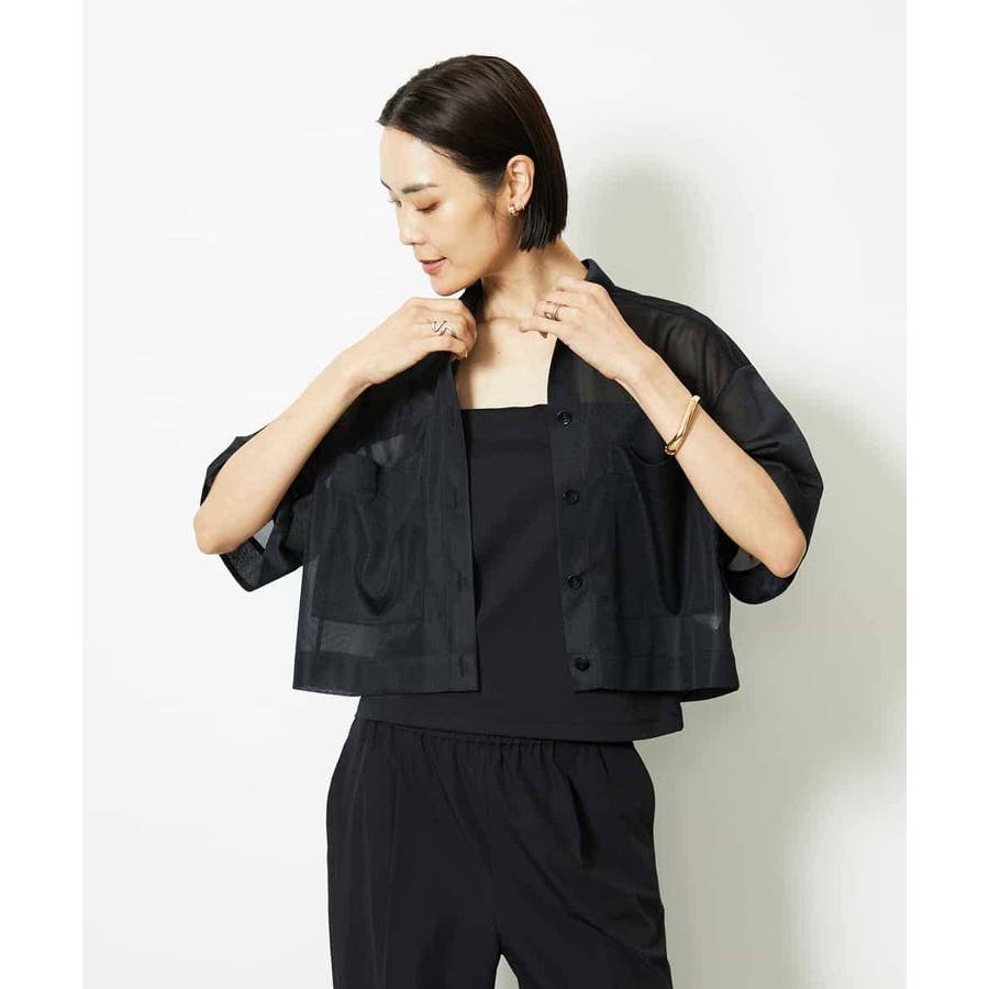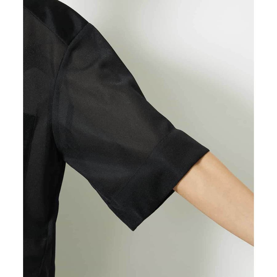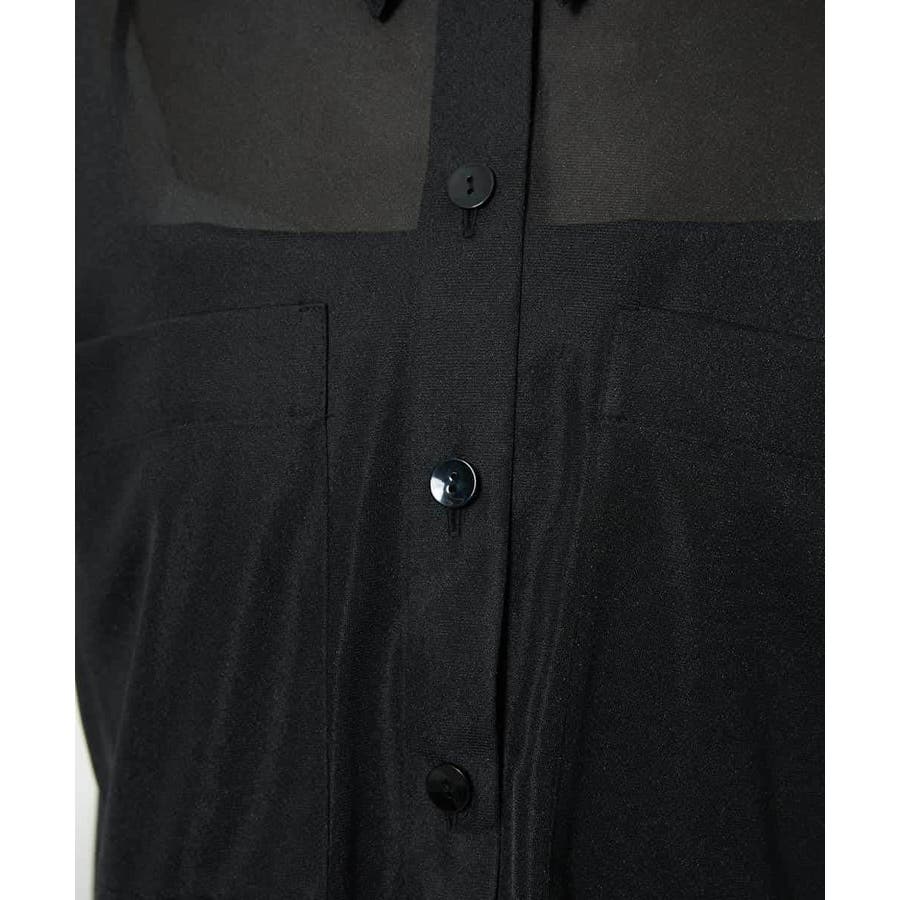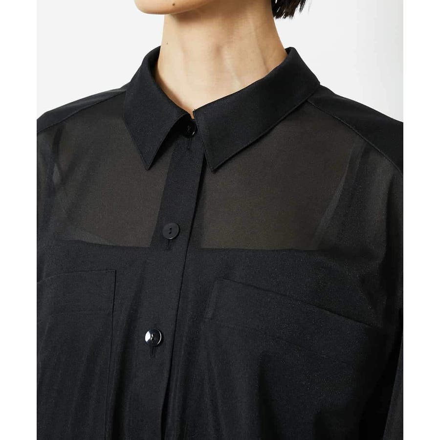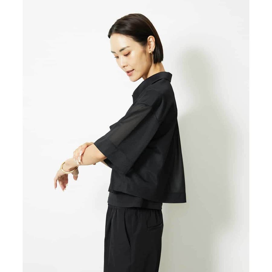 シアー感のあるトリコットジャージ素材を使用した、クロップド丈のシャツ。