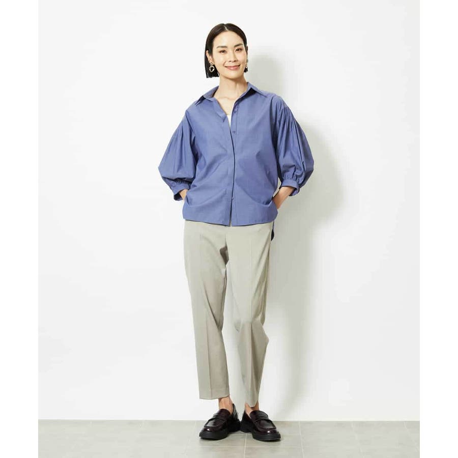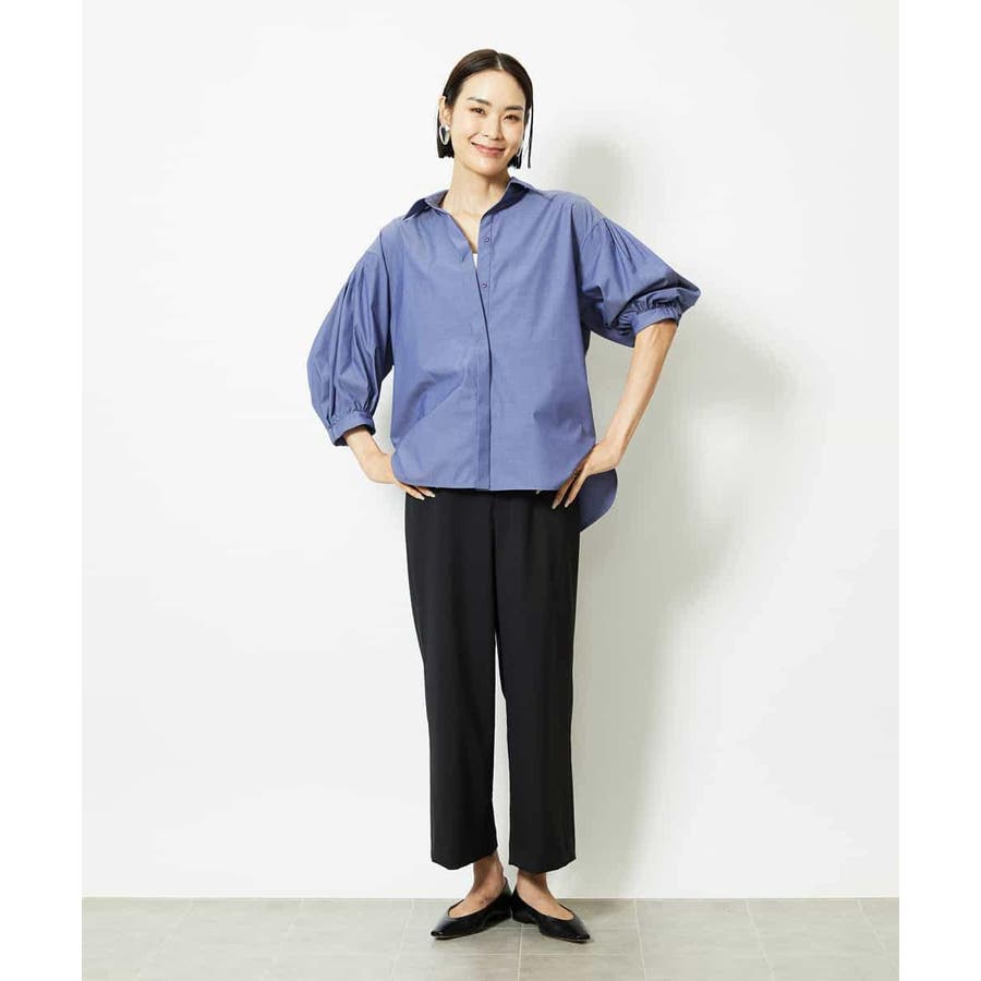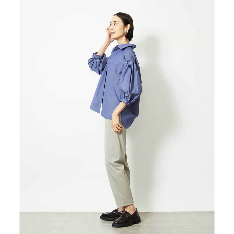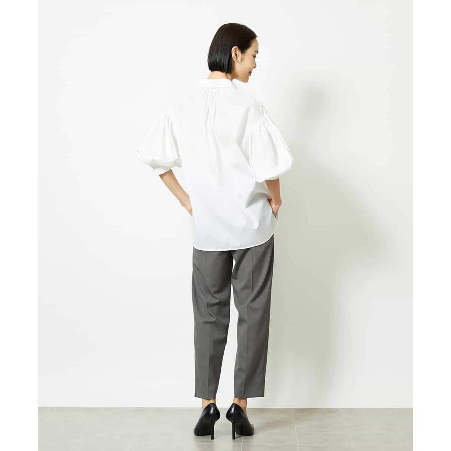 ボトムはコンパクトなテーパードパンツやナロースカートと合わせてメリハリをつける事で、より袖のデザイン性が際立ちこなれ感が出ておすすめです。