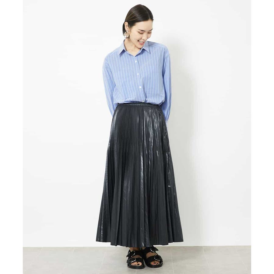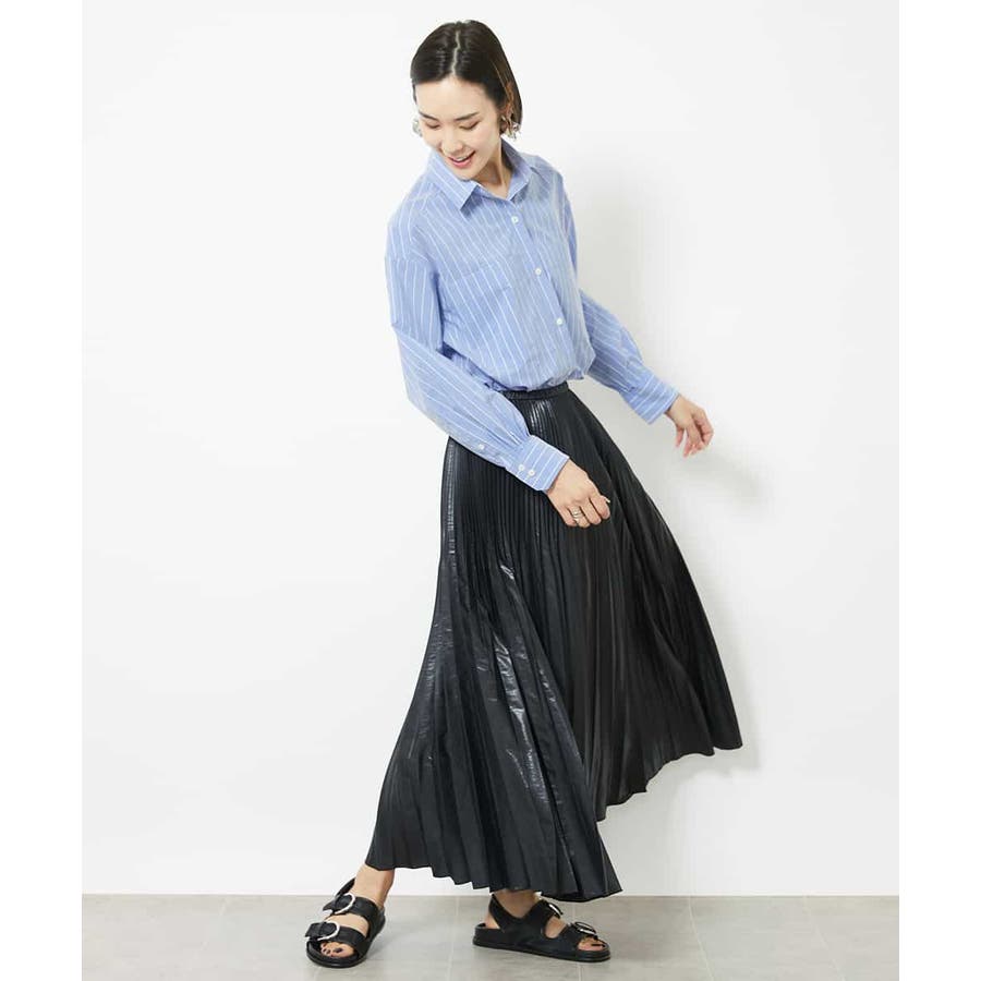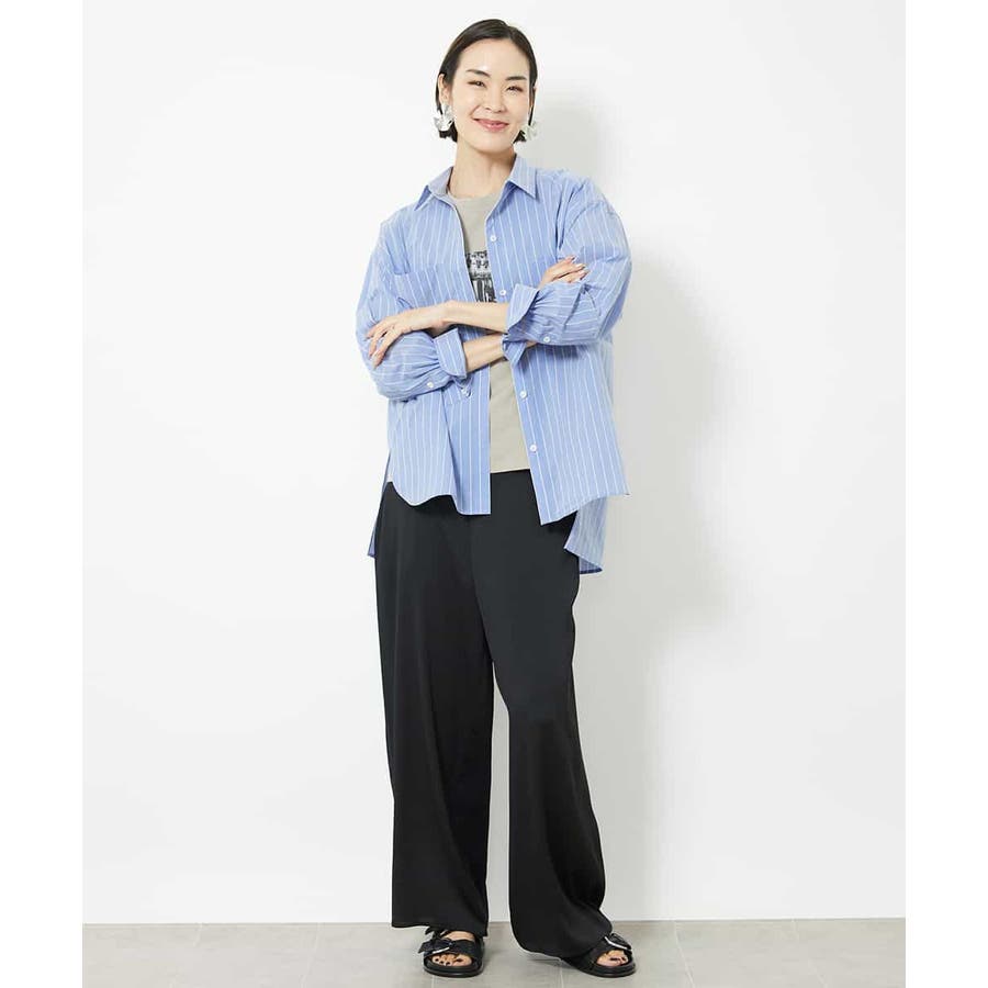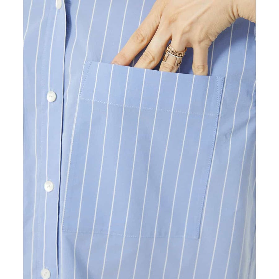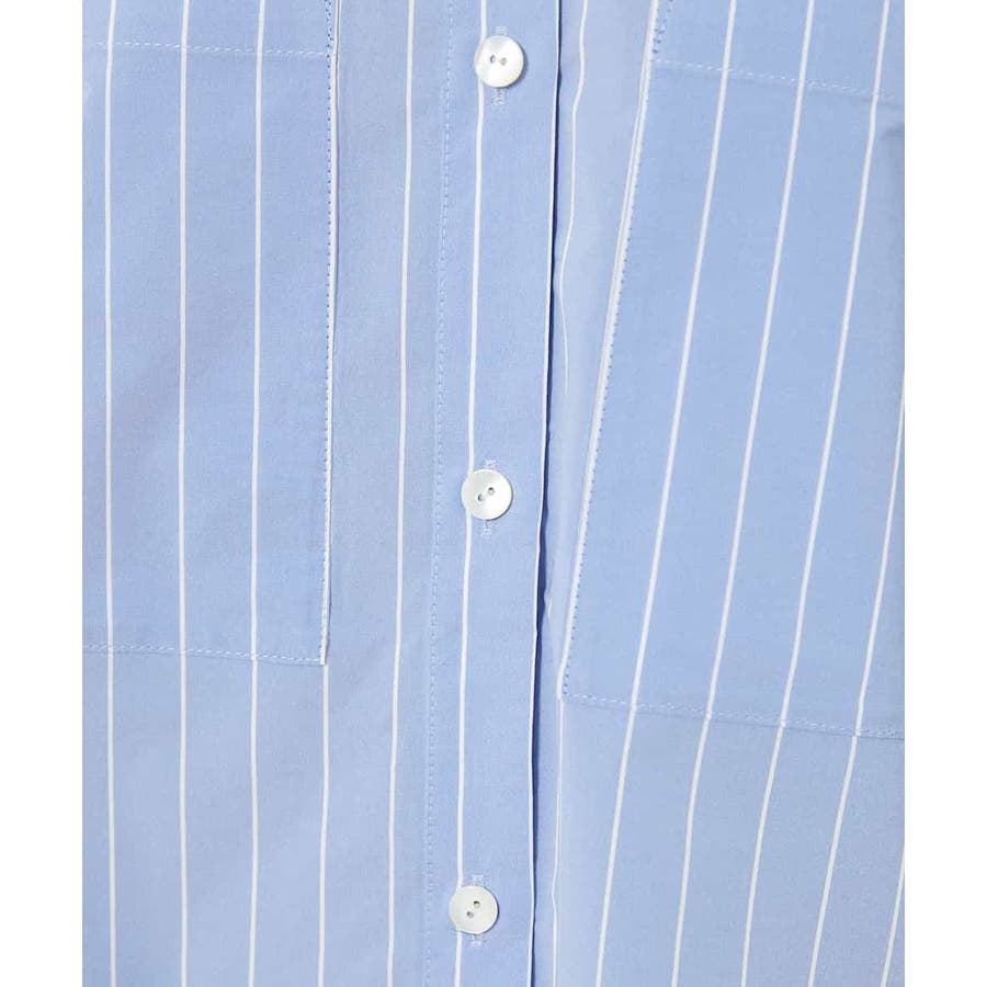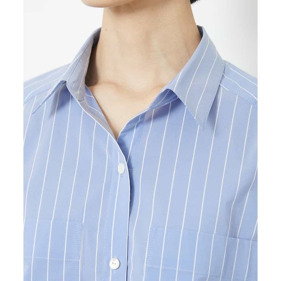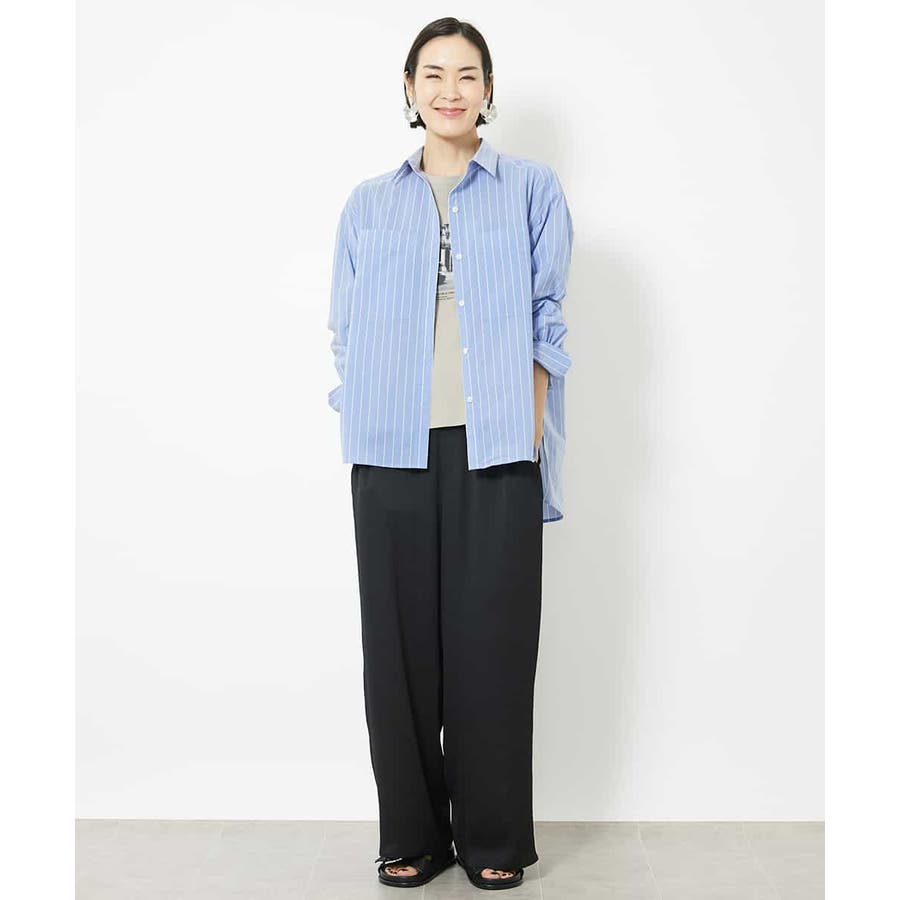 爽やかなストライプの素材のシャツブラウスをご用意いたしました。リラックス感のあるサイズ感に設定し、一枚着としても、軽い羽織代わりにしても使い勝手の良いシャツアイテムです。またカーディガンやアウターのインナーにしたりとシーズンレスで使える着回し力の高いアイテムです。 40サイズは限定店舗展開です。
