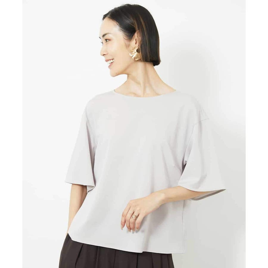 ゆったりとしたシルエットの五分袖デザイン。さらっとしたタッチと、まとわりつかない素材を使いリラックスシルエットのトップスは、暑い日にもぴったりです。40サイズは限定店舗展開です。