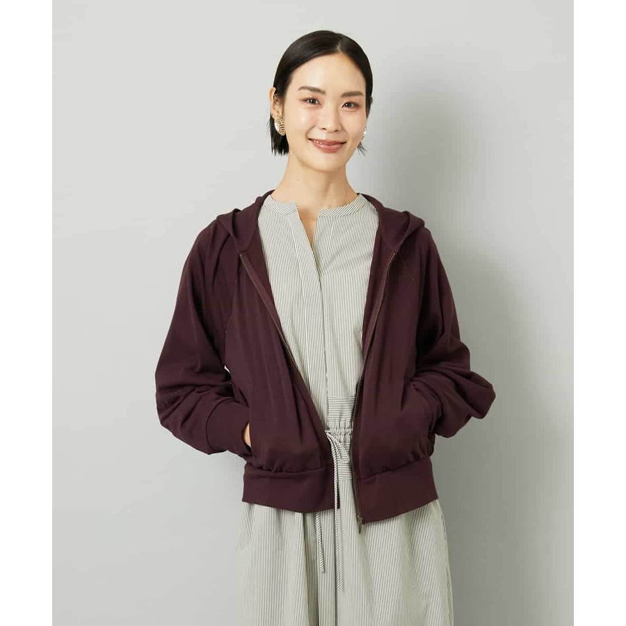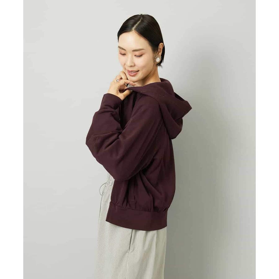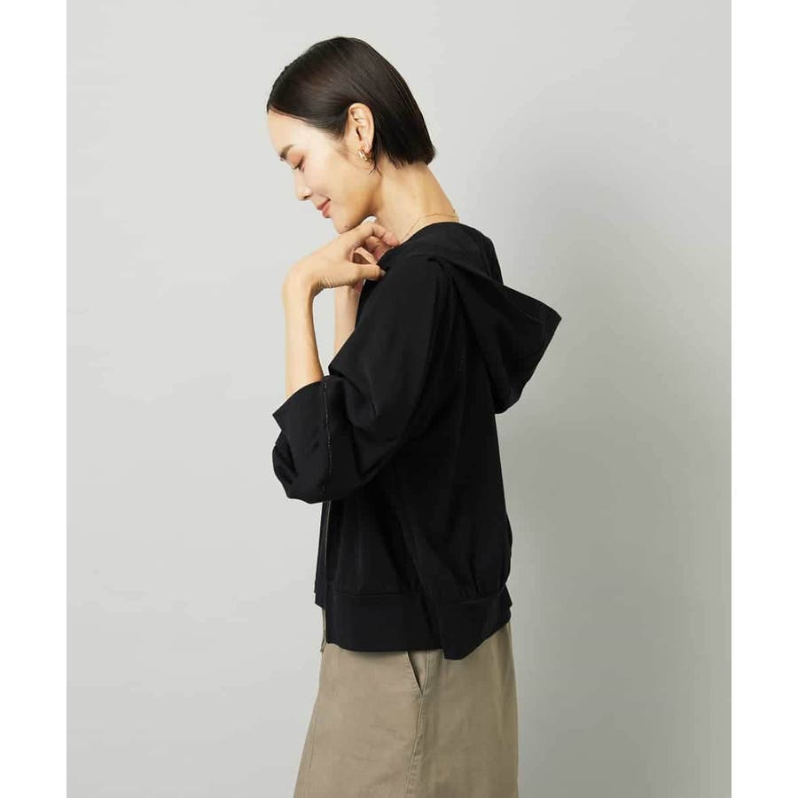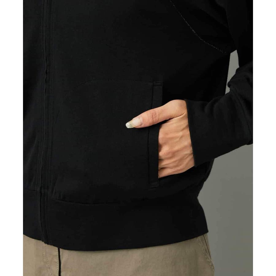 ほんのりシアーな表情が魅力のジップアップパーカーは、ラメ糸を効かせた3本針ステッチがさりげないアクセントに。