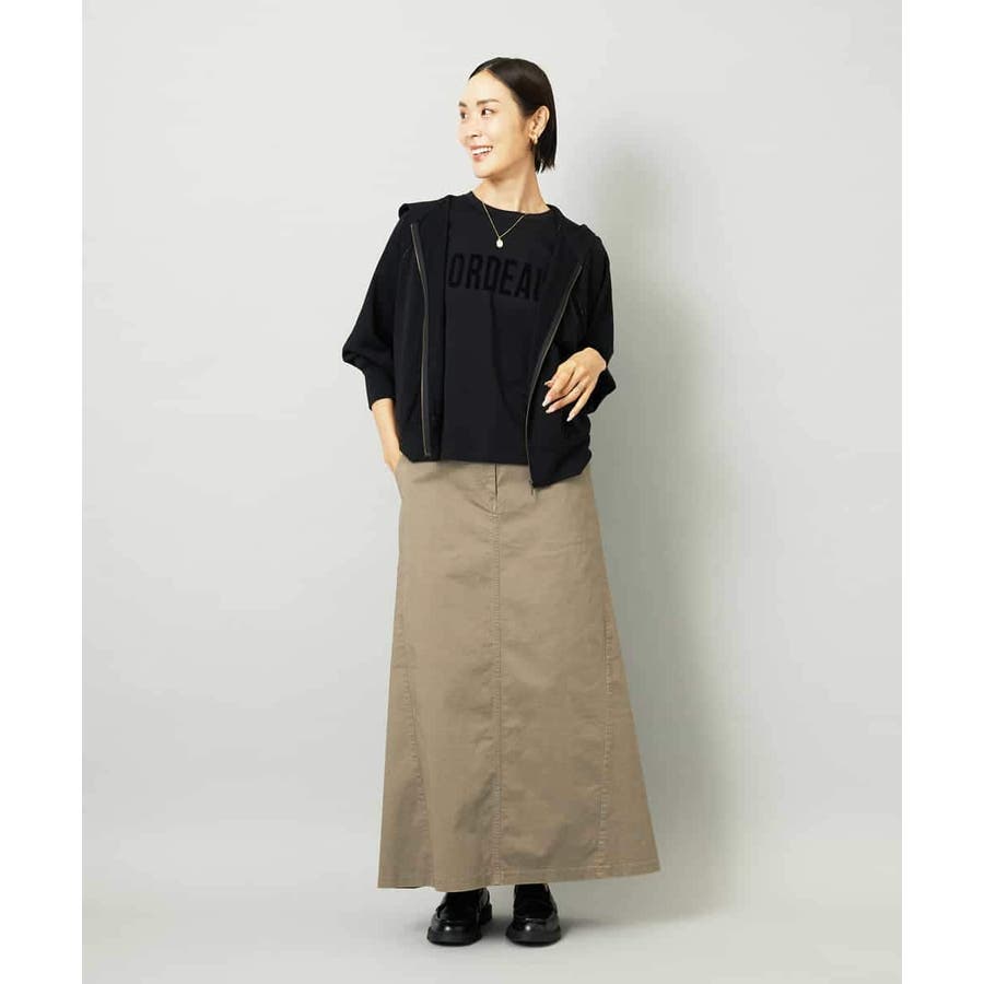 合皮のスカートや、きれいめなモノトーンのボトムとまとめることでスポーティすぎず大人っぽくモードな雰囲気を楽しめます。
