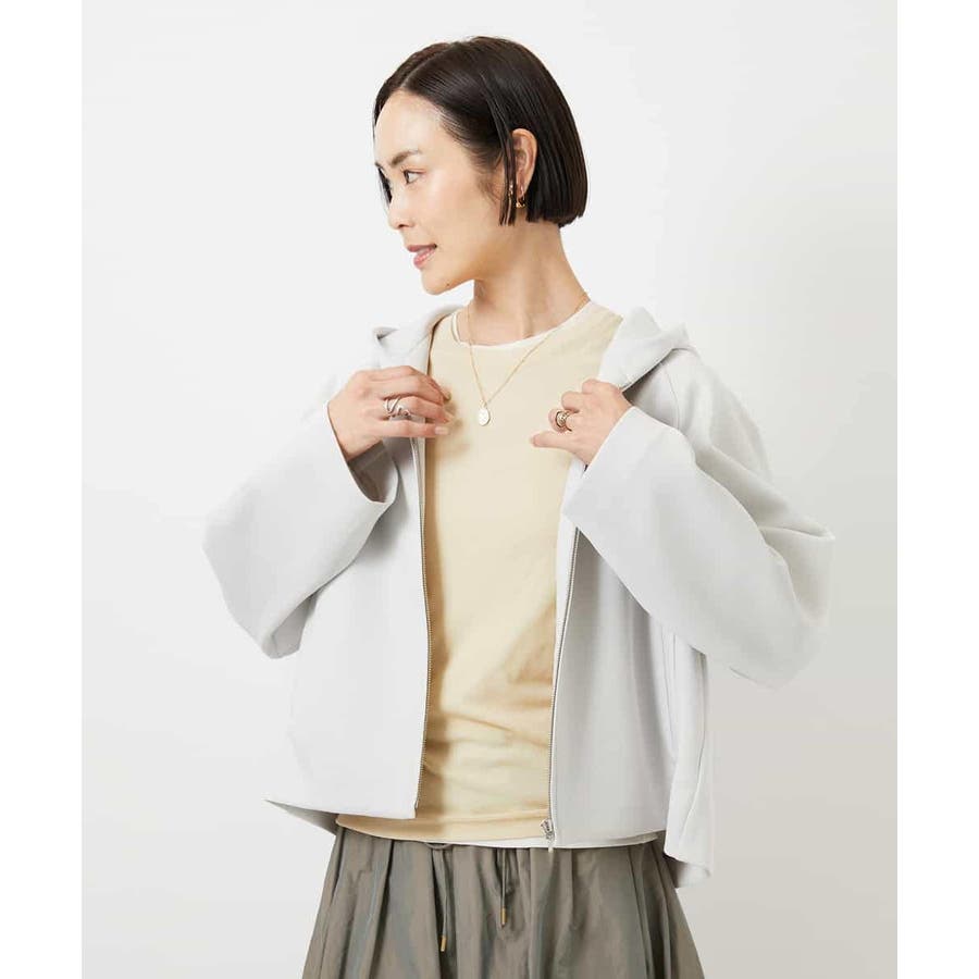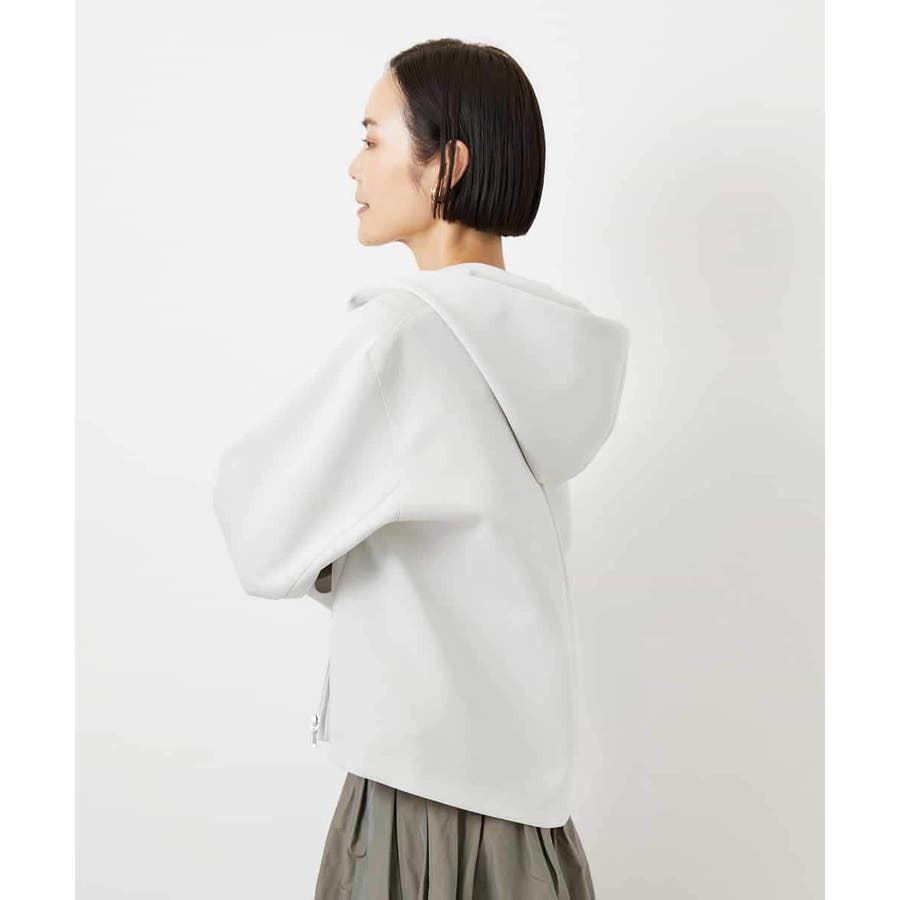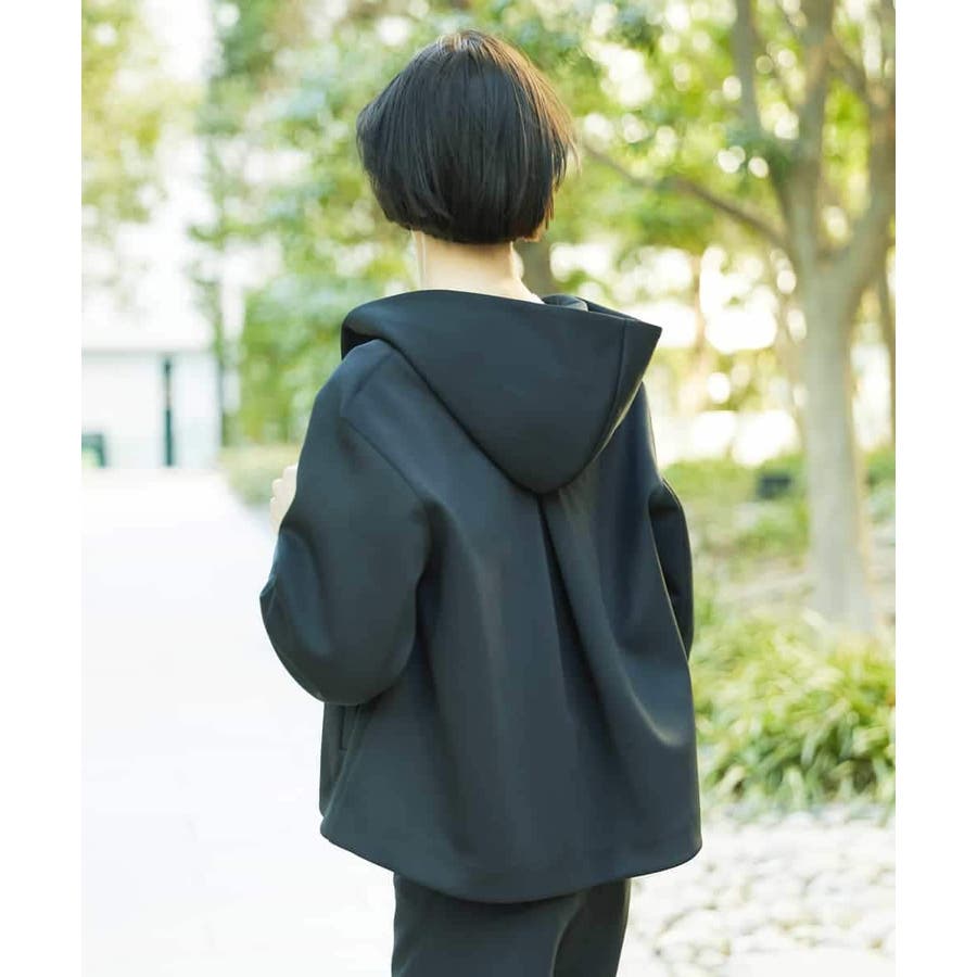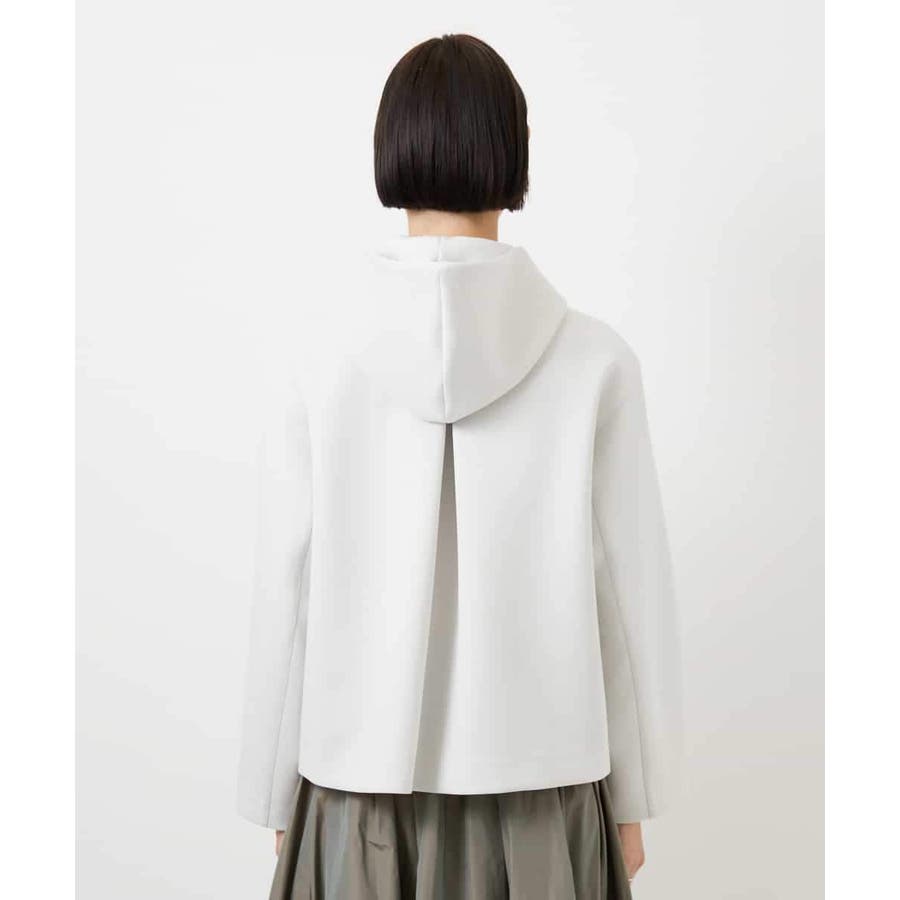 軽さが魅力のダンボール素材を使用した、春のお出かけに気軽に羽織れて頼りになるフードアウター。マットでドライタッチな表面感が、カジュアルなアイテムながらラフになりすぎない印象に仕上げています。コンパクトな丈感に、タックで広がりを持たせたバックスタイルがデザインポイント。腰まわりをさりげなくカバーできるのも嬉しいポイントです。