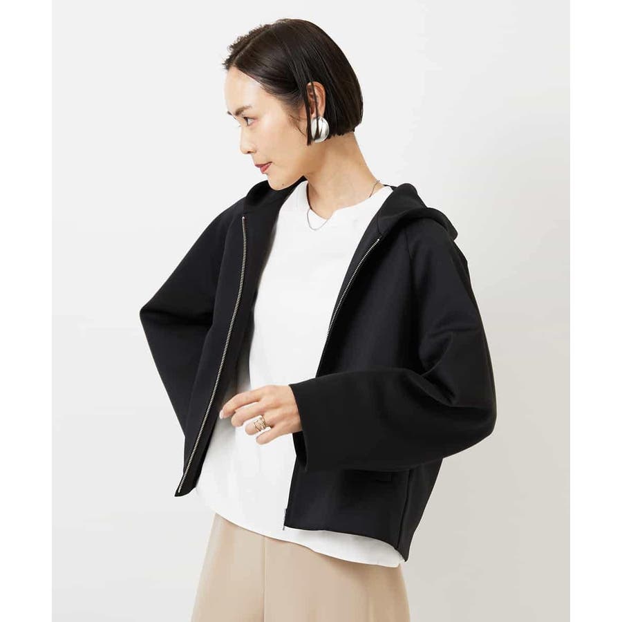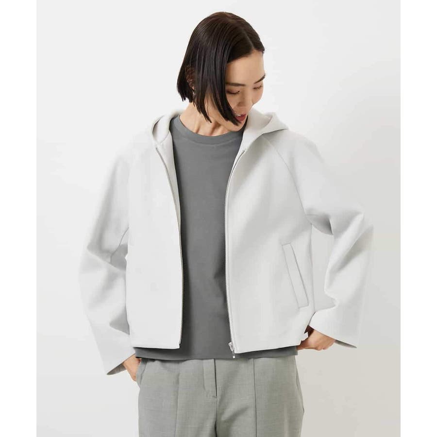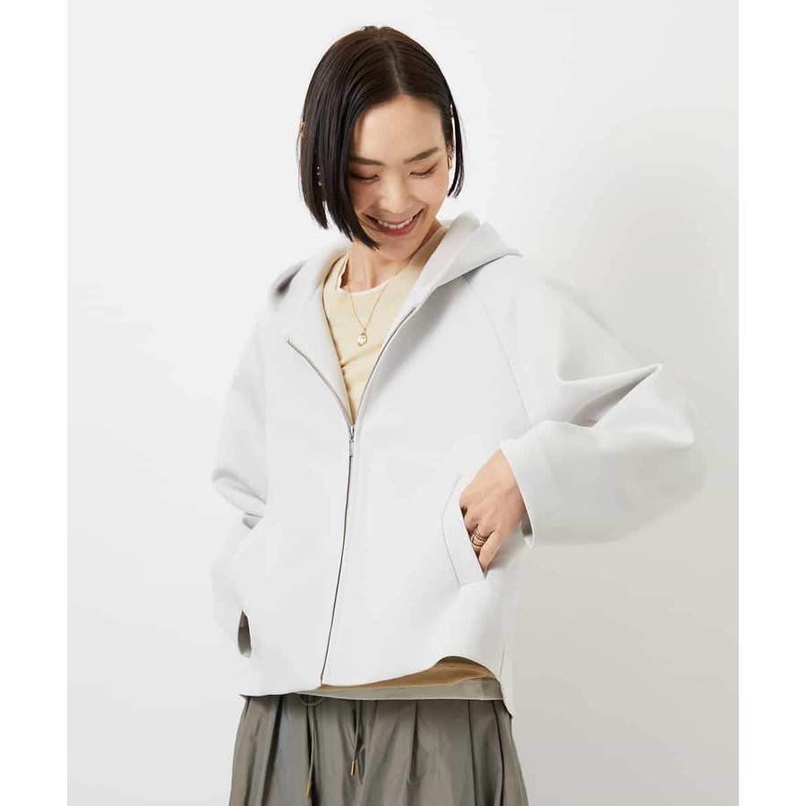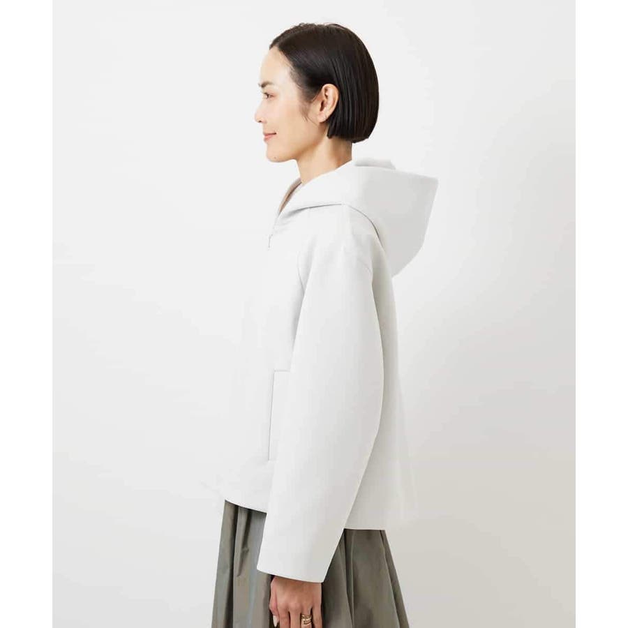 軽さが魅力のダンボール素材を使用した、春のお出かけに気軽に羽織れて頼りになるフードアウター。マットでドライタッチな表面感が、カジュアルなアイテムながらラフになりすぎない印象に仕上げています。コンパクトな丈感に、タックで広がりを持たせたバックスタイルがデザインポイント。腰まわりをさりげなくカバーできるのも嬉しいポイントです。
