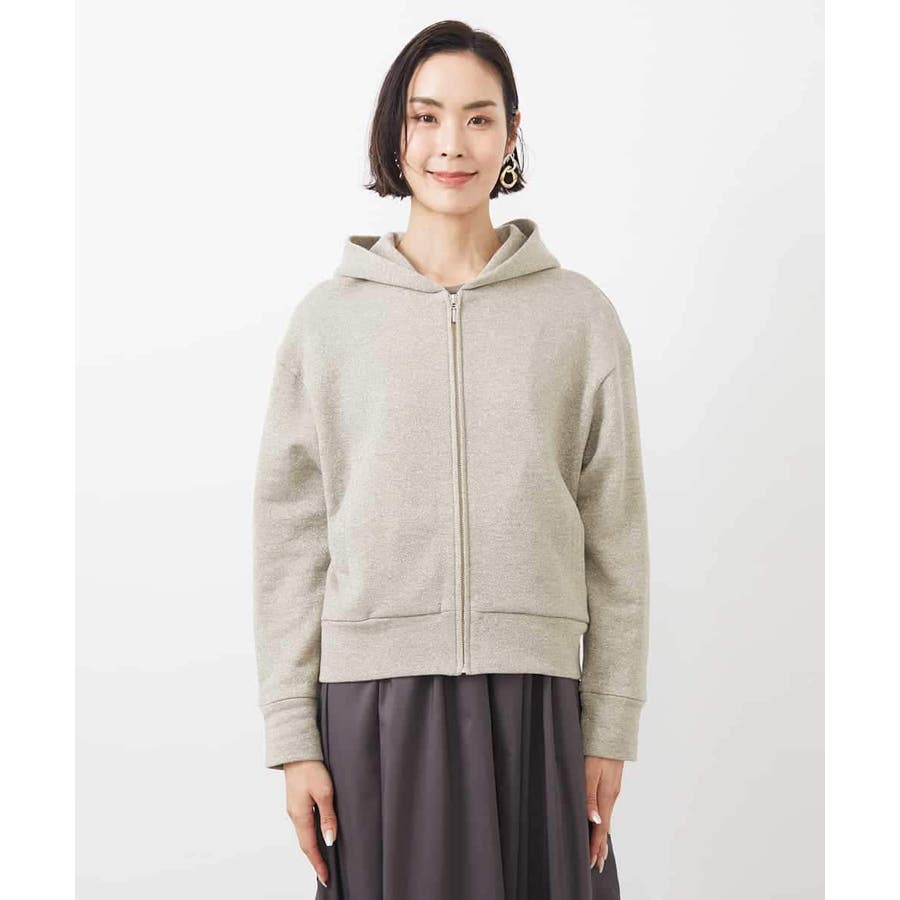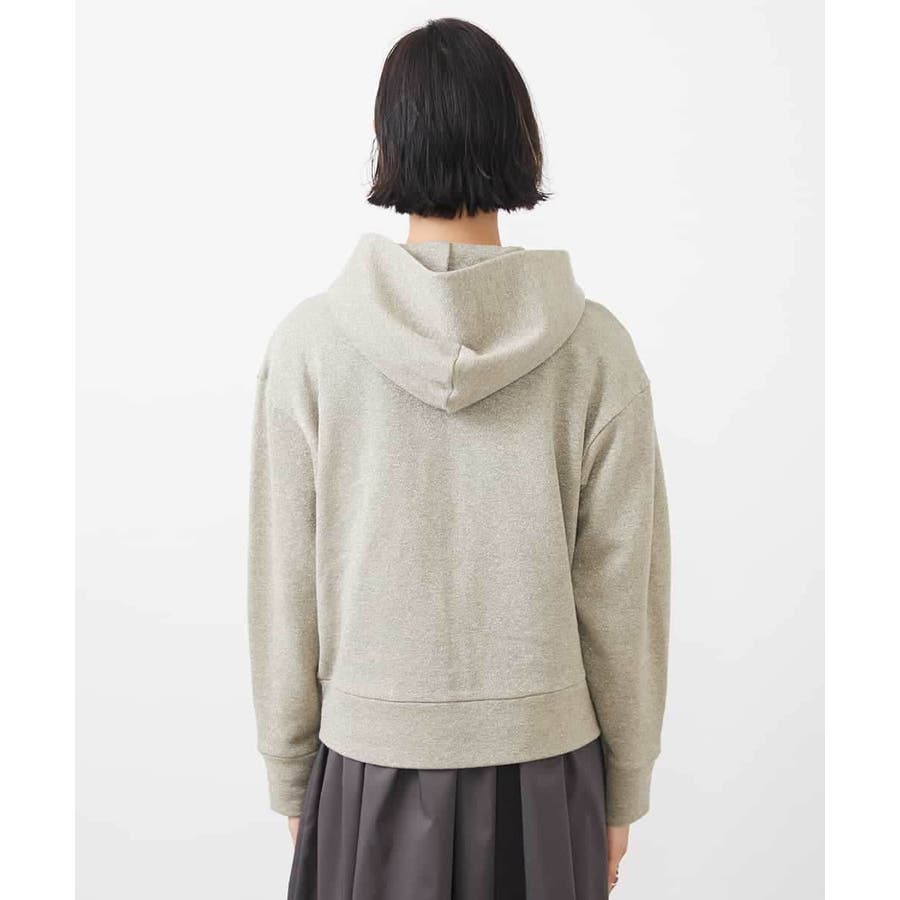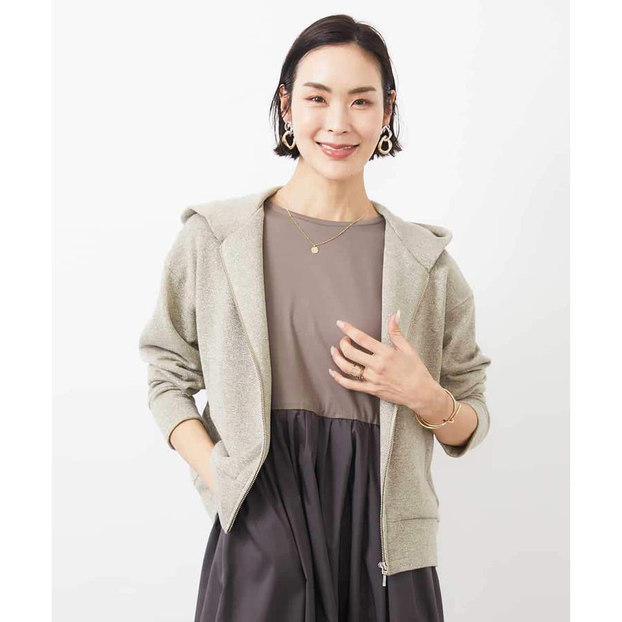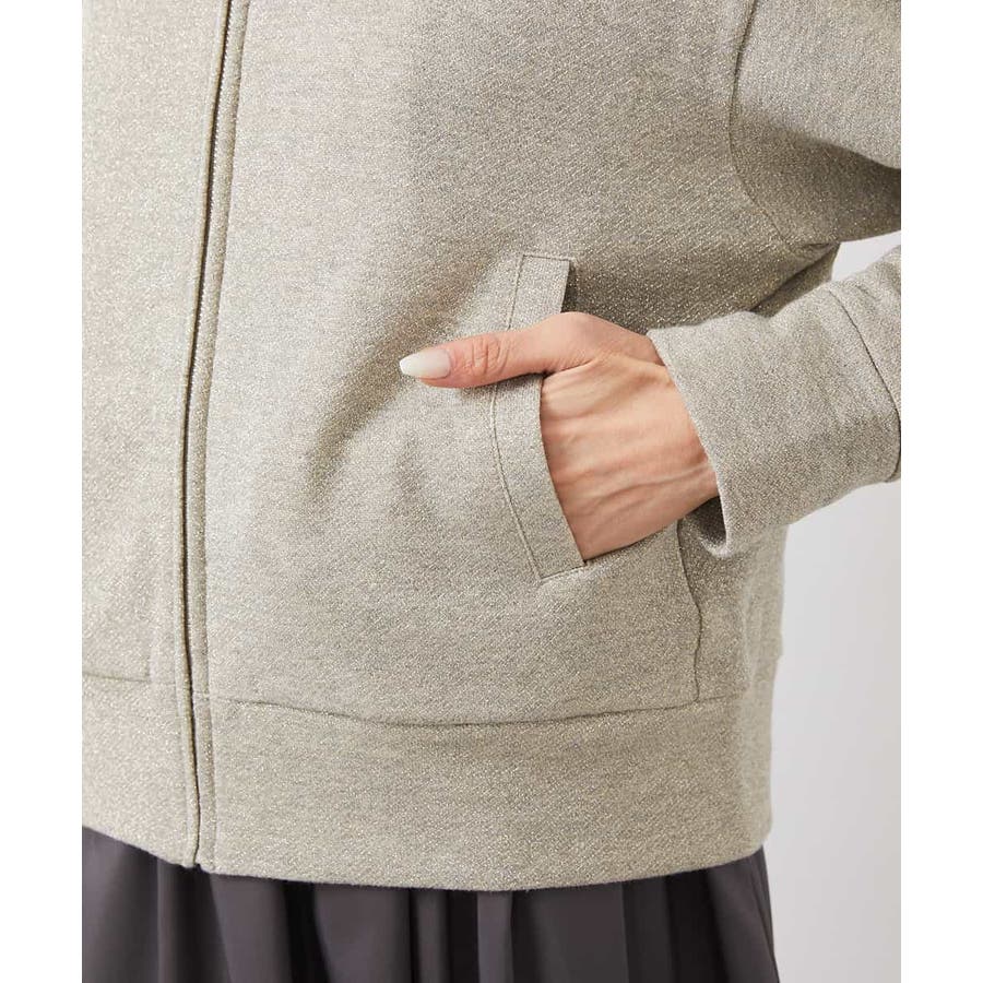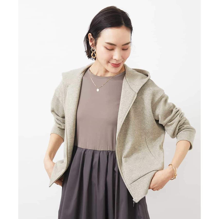 季節の変わり目にさらっと着られるスウェットパーカー。ラメ入りで大人のカジュアルスタイルにアクセントを。40サイズは限定店舗展開です。