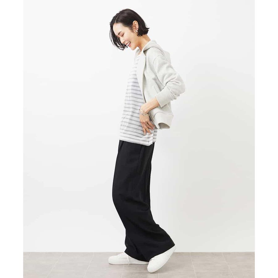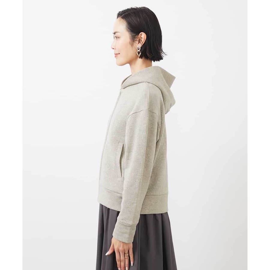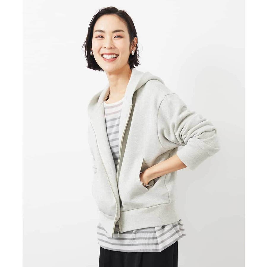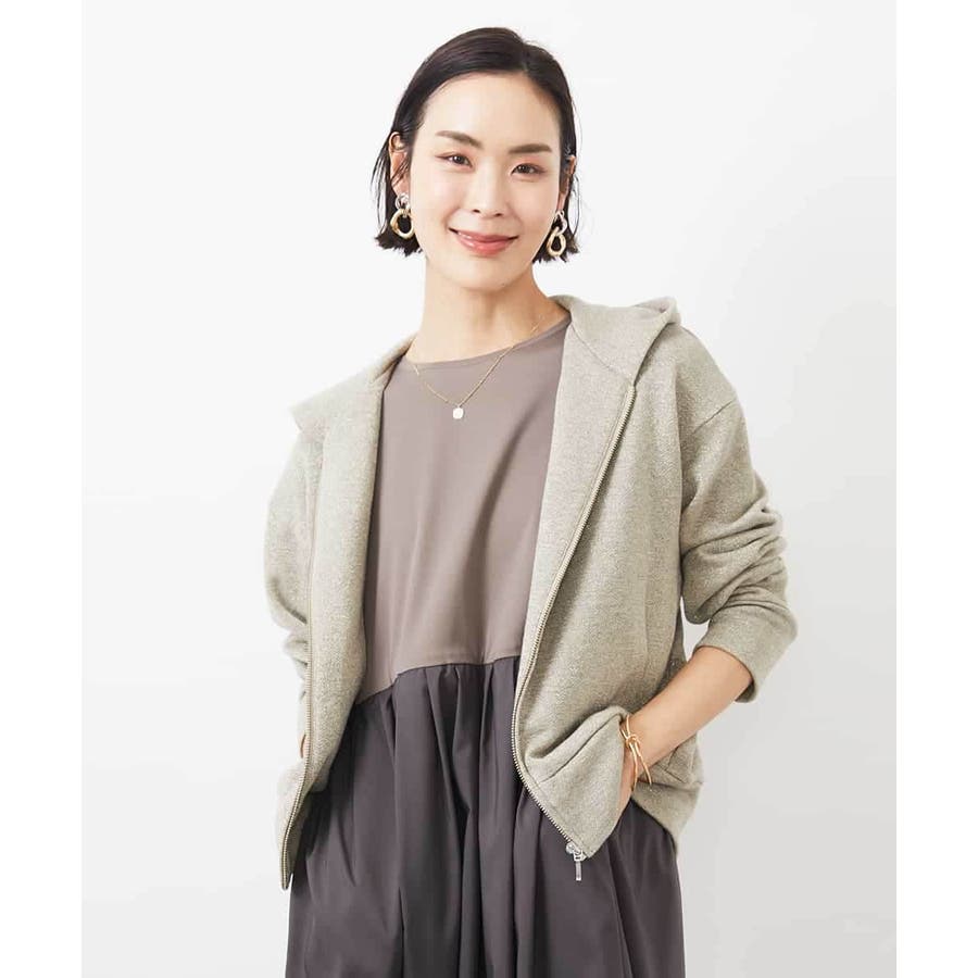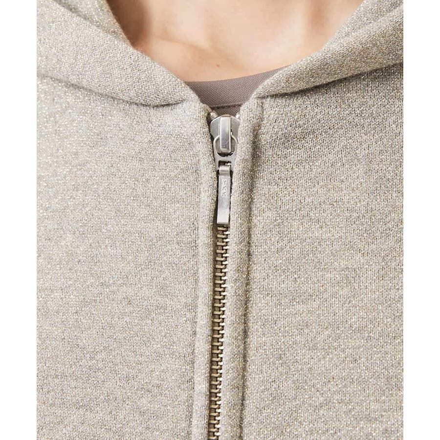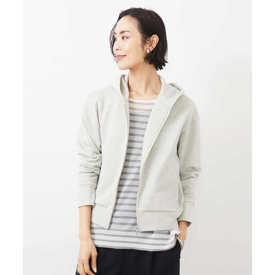 季節の変わり目にさらっと着られるスウェットパーカー。ラメ入りで大人のカジュアルスタイルにアクセントを。40サイズは限定店舗展開です。