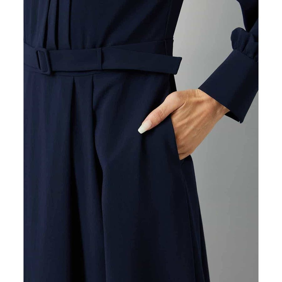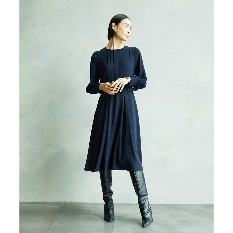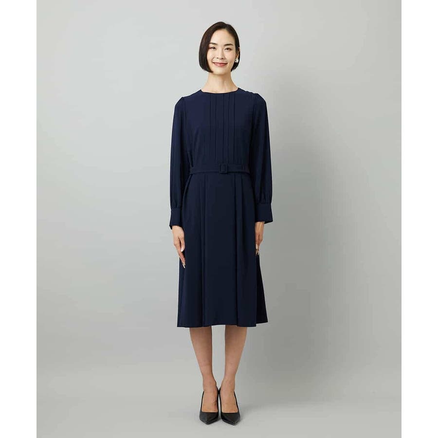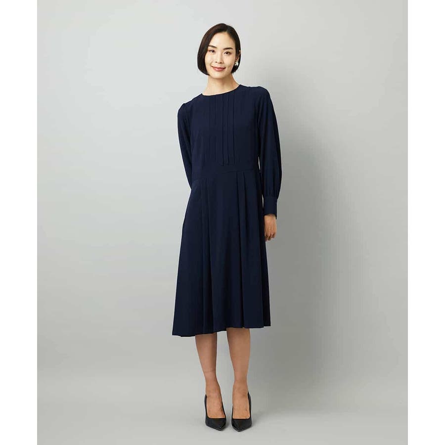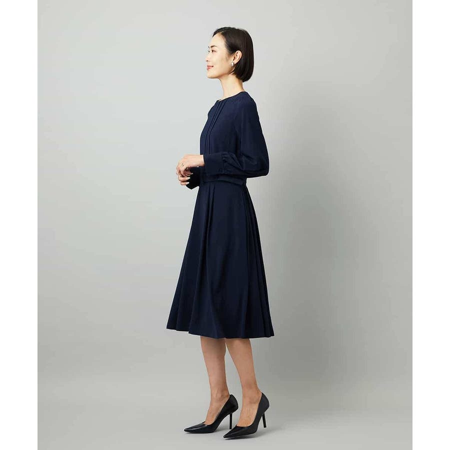 ◆通勤やセレモニーにも映える、ノーカラープリーツのきれいめワンピース◆