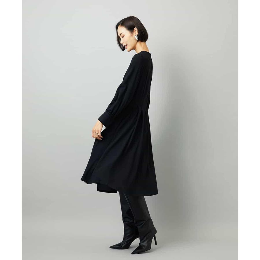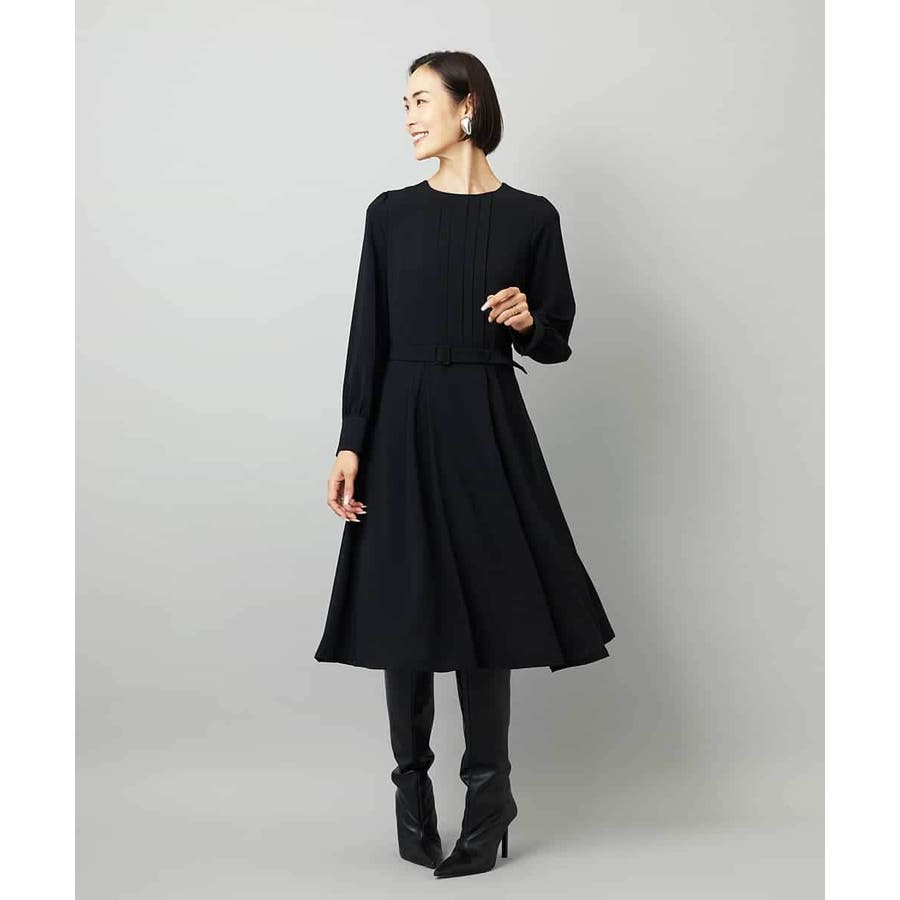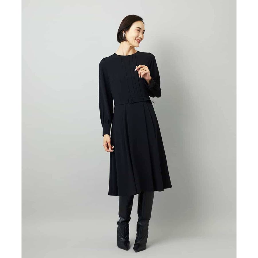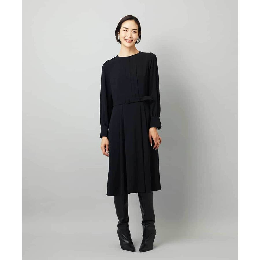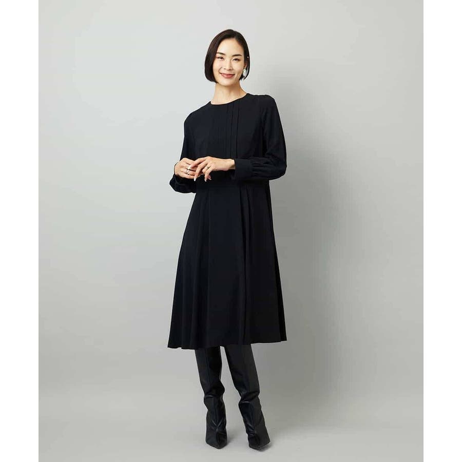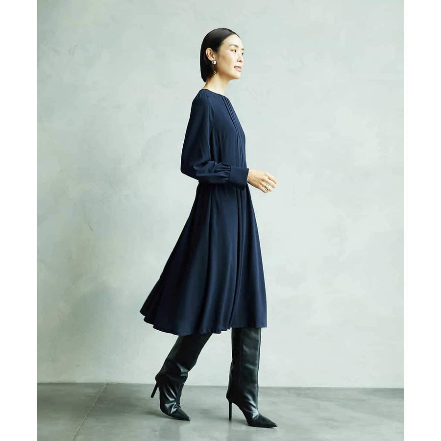 ◆通勤やセレモニーにも映える、ノーカラープリーツのきれいめワンピース◆