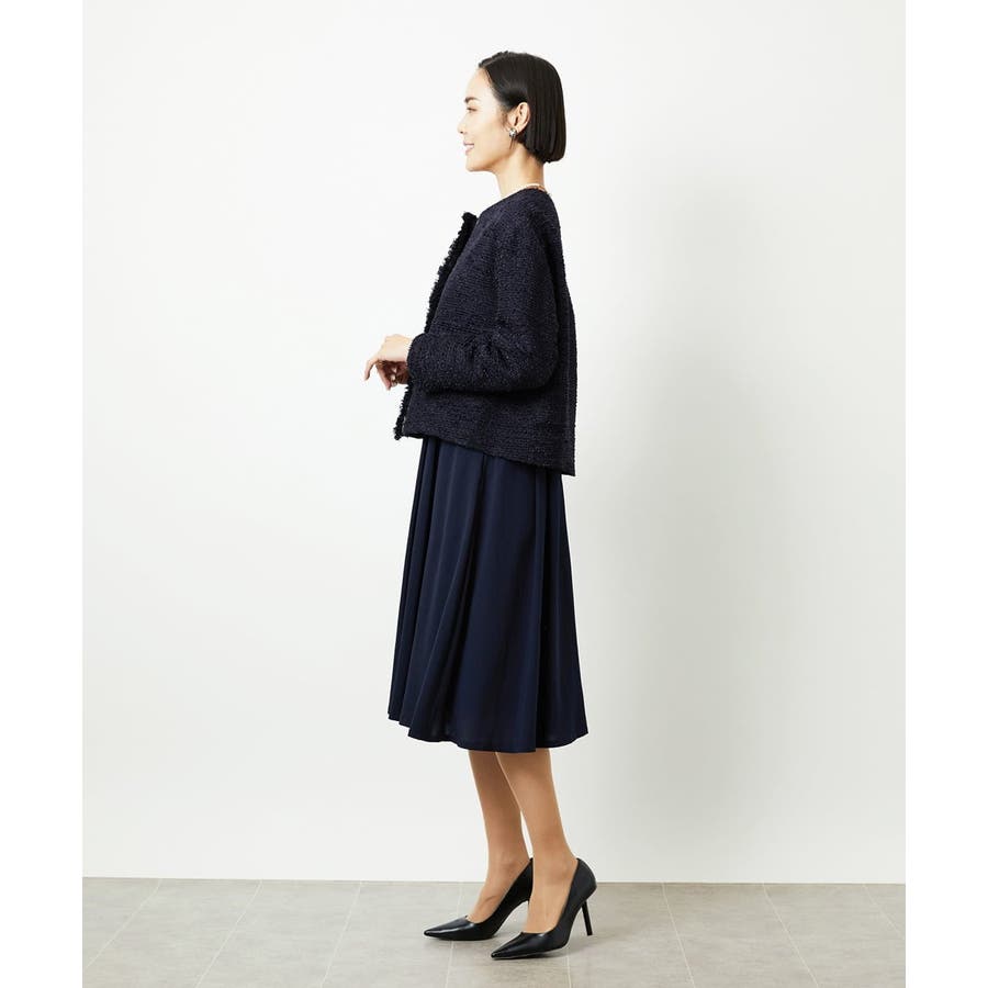 1枚でも着映えするワンピースですが、カーディガンやジャケットを合わせれば、通勤から卒園・卒業、入園・入学といったセレモニー、七五三や学校行事、発表会などのお子様のハレの日まで幅広く対応。フォーマルやビジネスシーンでも活躍します。