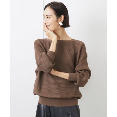 リブの横使いのボートネックのドルマンスリーブプルオーバー。袖口と裾のリブで着るだけでシルエットがサマになるデザインです。アウターのインナーとして着ても袖が上がりにくいデザインでご用意いたしました。2023年秋に初登場で好評だった長袖タイプを、2024年の新色でご用意いたしました。40サイズは限定店舗展開です。
