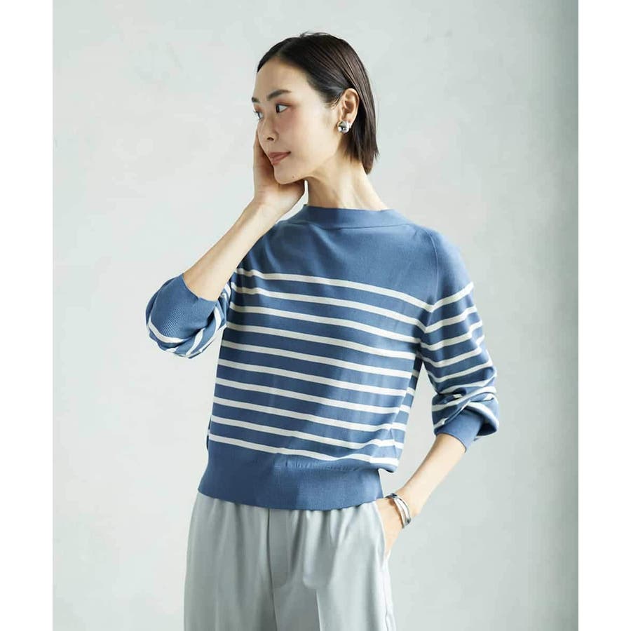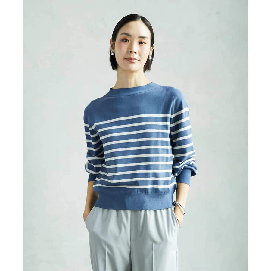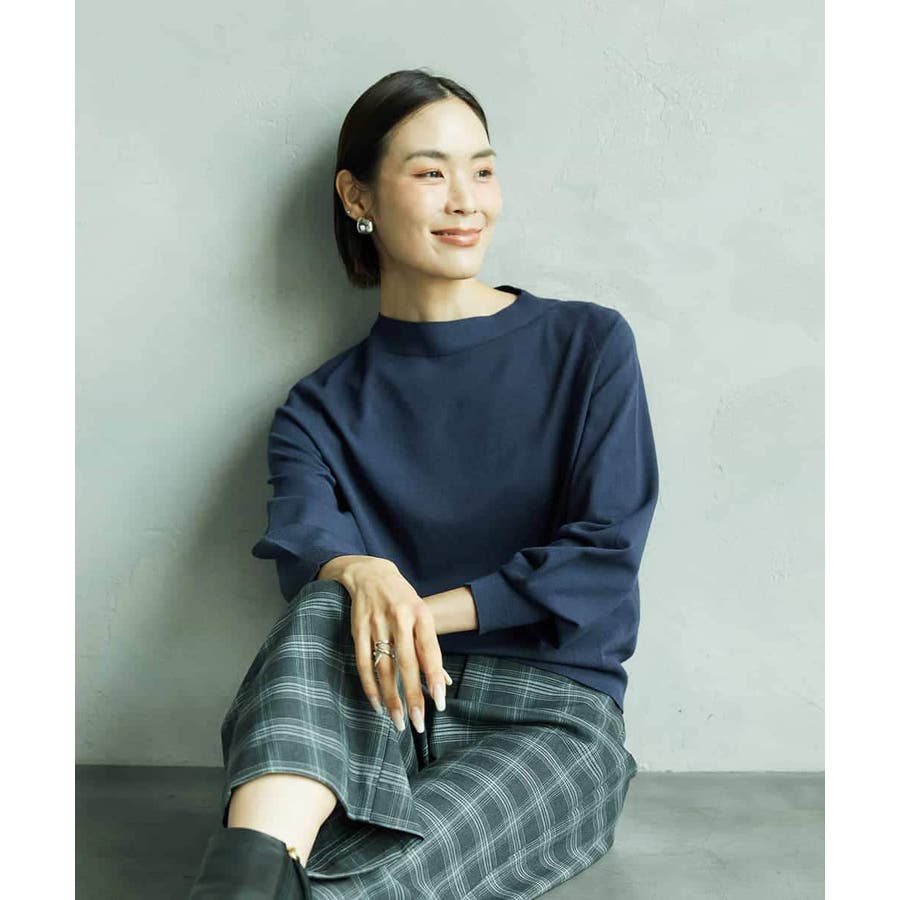袖にほんのりパフ感を添えた、ボトルネックプルオーバー。薄手でカットソーのように気軽に着られるため、季節の端境期にも重宝します。着回し力の高い無地と、アクセントになるパネルボーダーの2タイプをご用意しました。40サイズは限定店舗展開です。