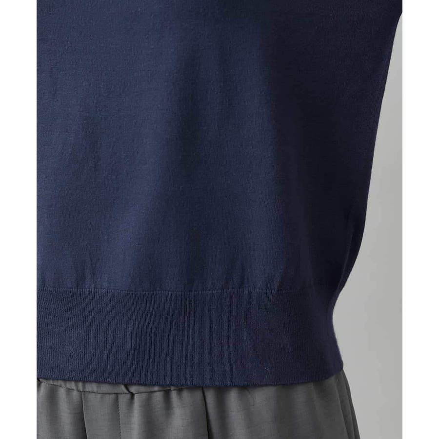 管理された森林から得られた持続可能な木材とパルプを原料にした、環境負荷の少ないビスコース繊維を使用。さらにストレッチ性のあるポリエステルを複合した糸を採用し、ホールガーメントで編み立てています。環境にやさしく、快適な着心地を実現した一枚です。