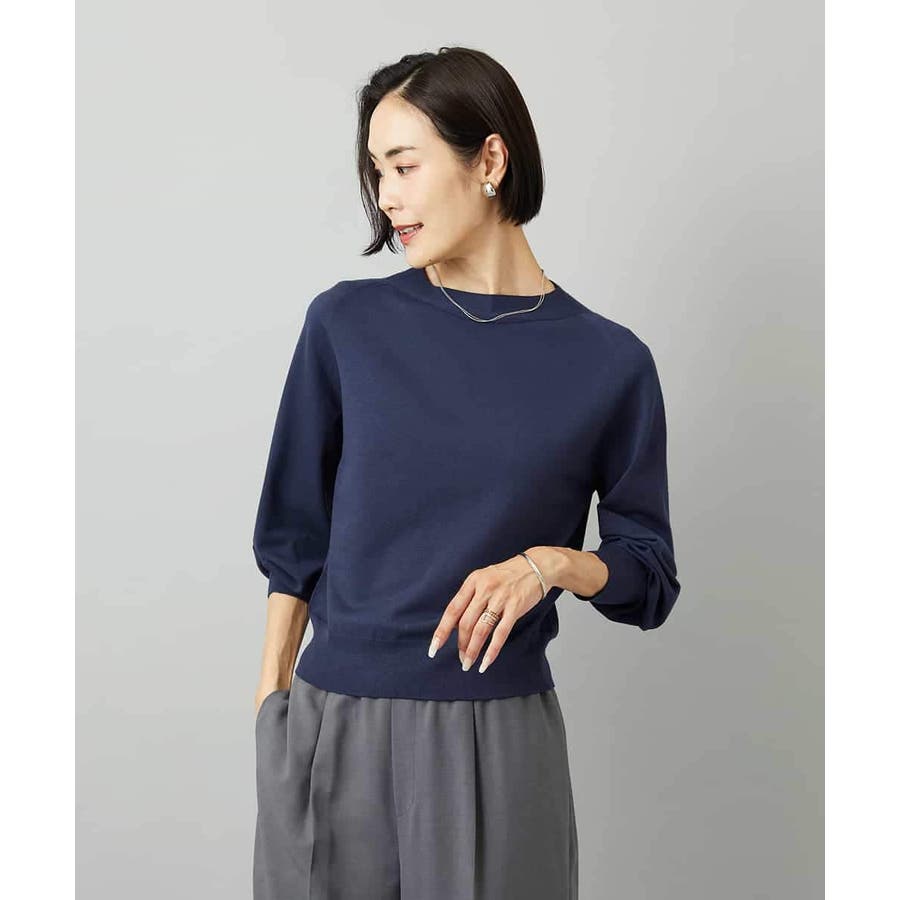 ボトルネックに、軽くパフになったスリーブが女性らしくも甘すぎないバランスが魅力のニット。コンパクトなシルエットは、スカートでもパンツでも相性抜群。