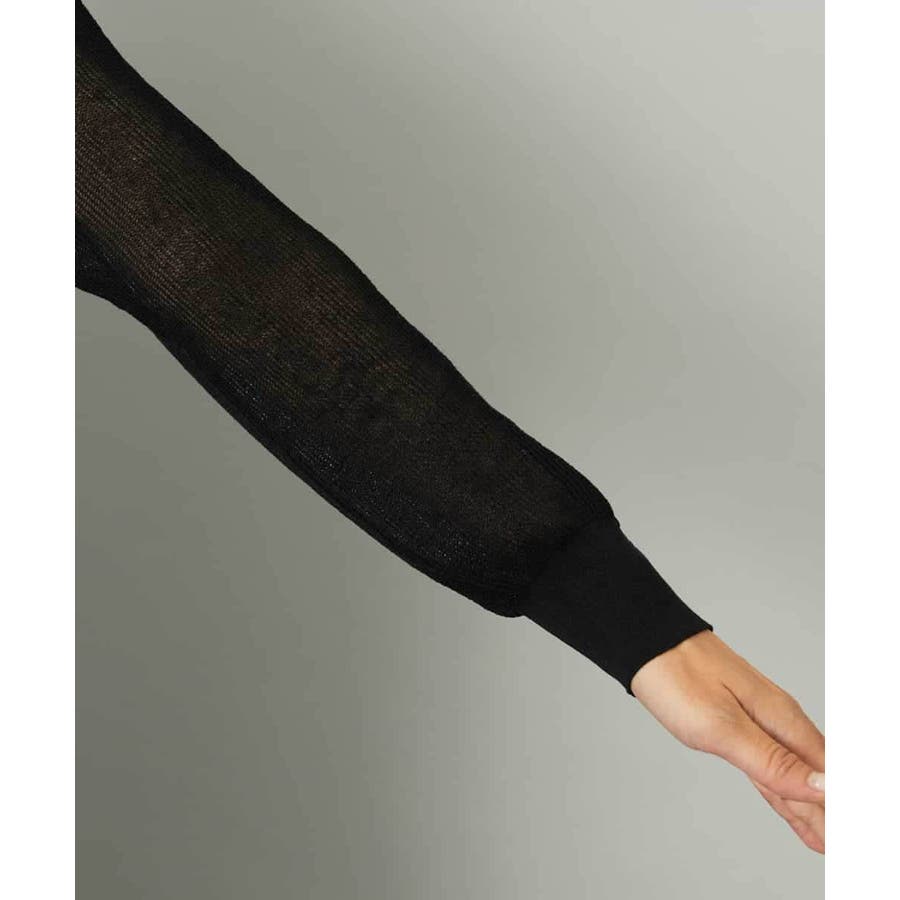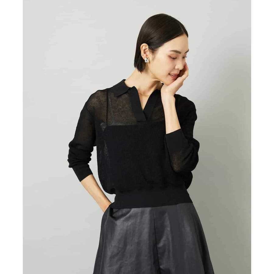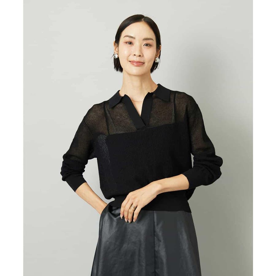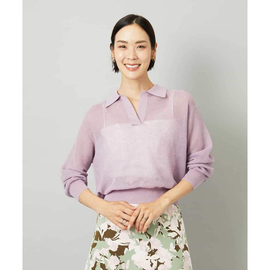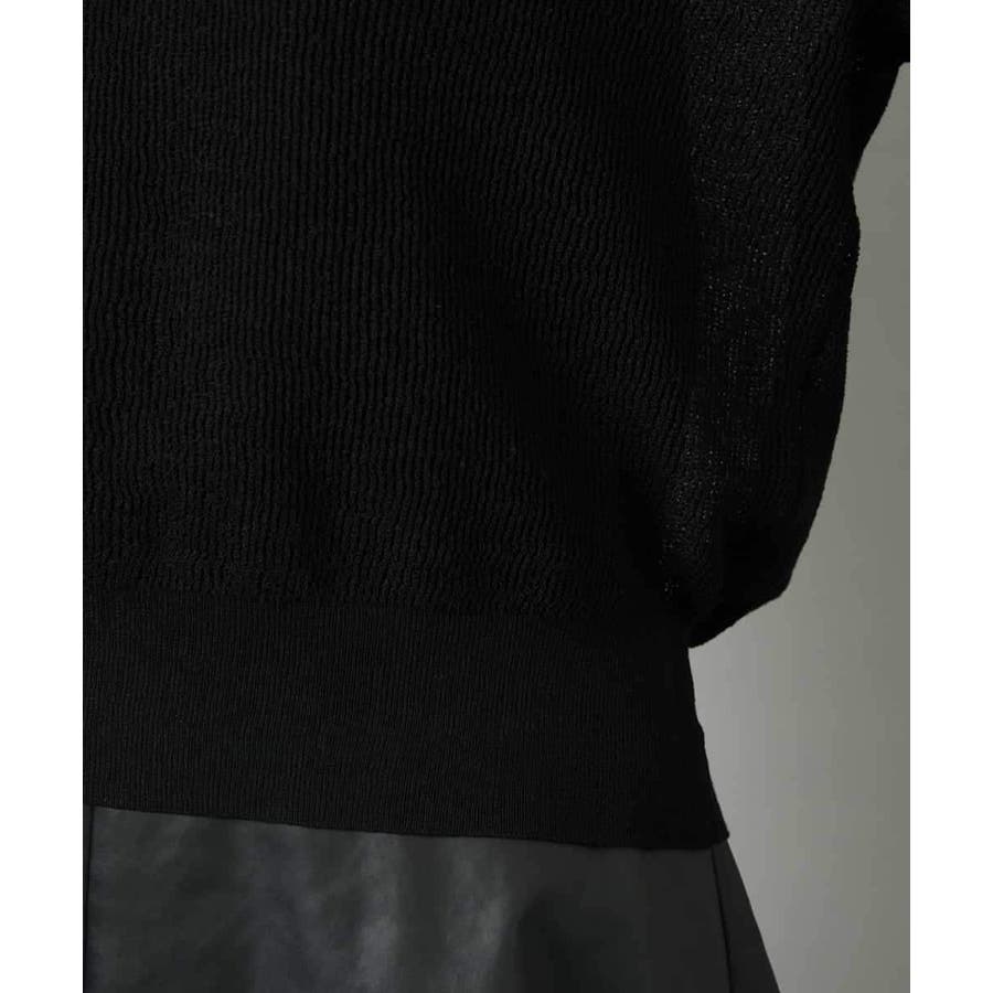 レーヨン・リネン・ポリエステル混紡の清涼感ある素材を、シアー感のあるワッフル編みで仕上げました。