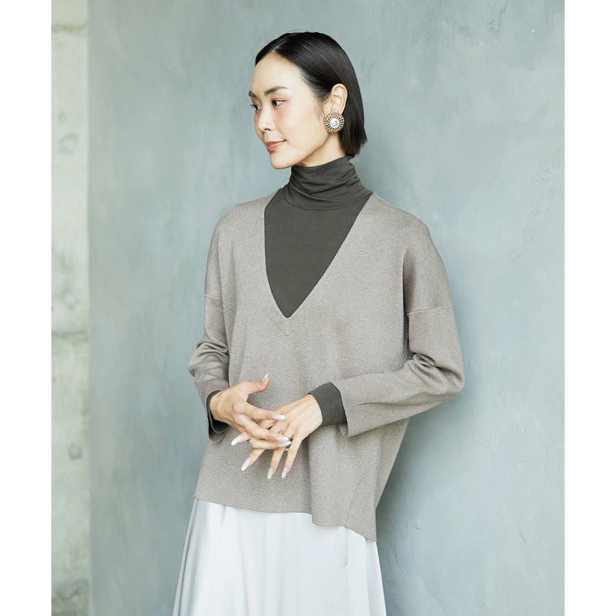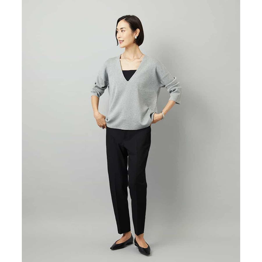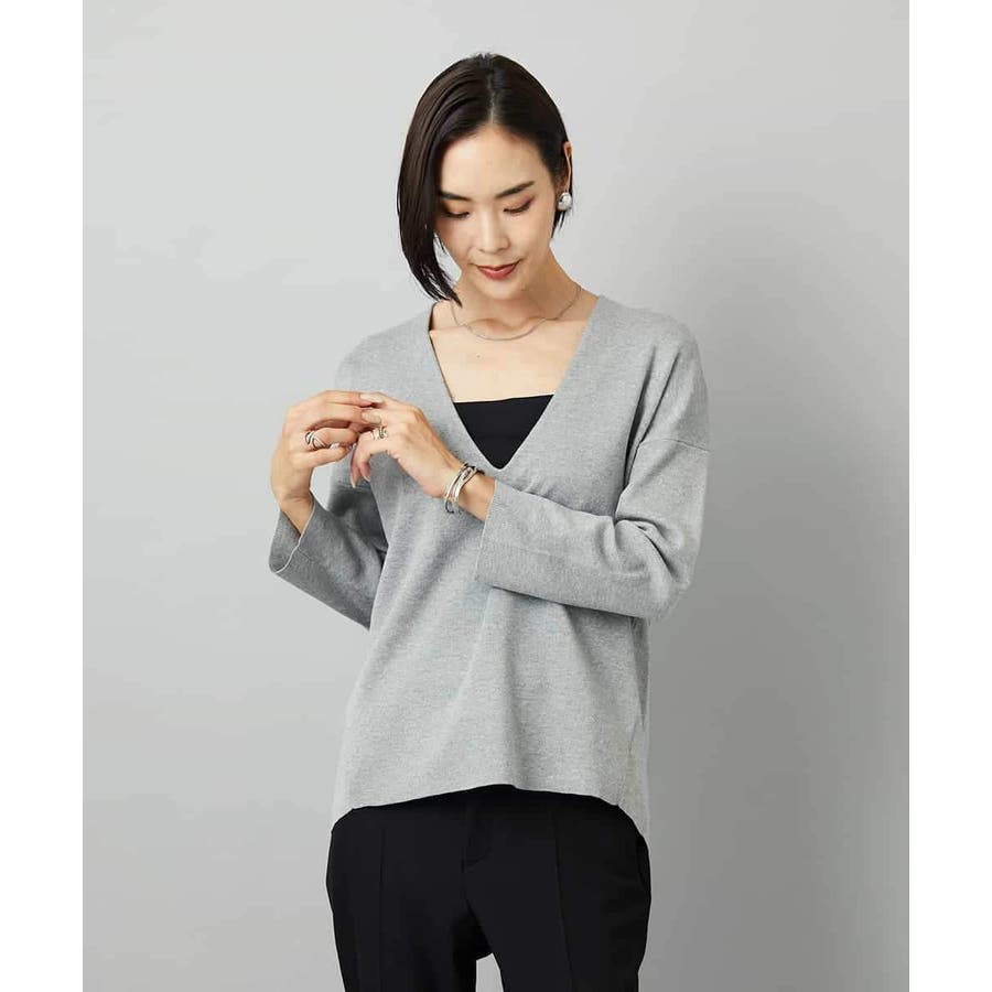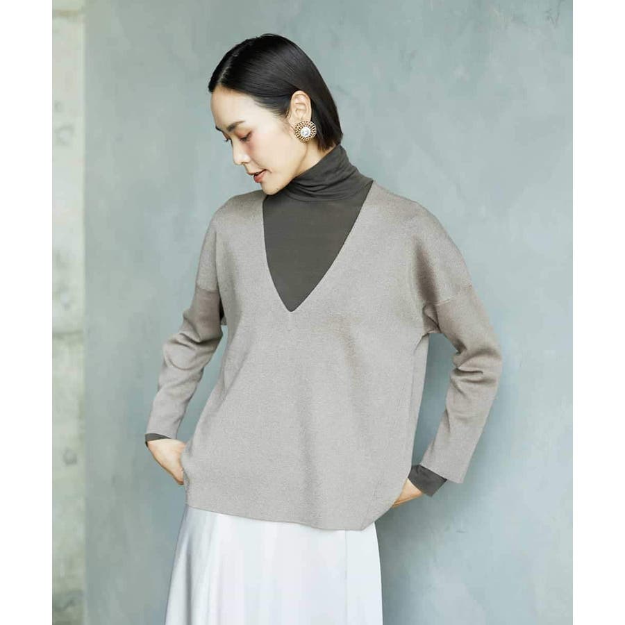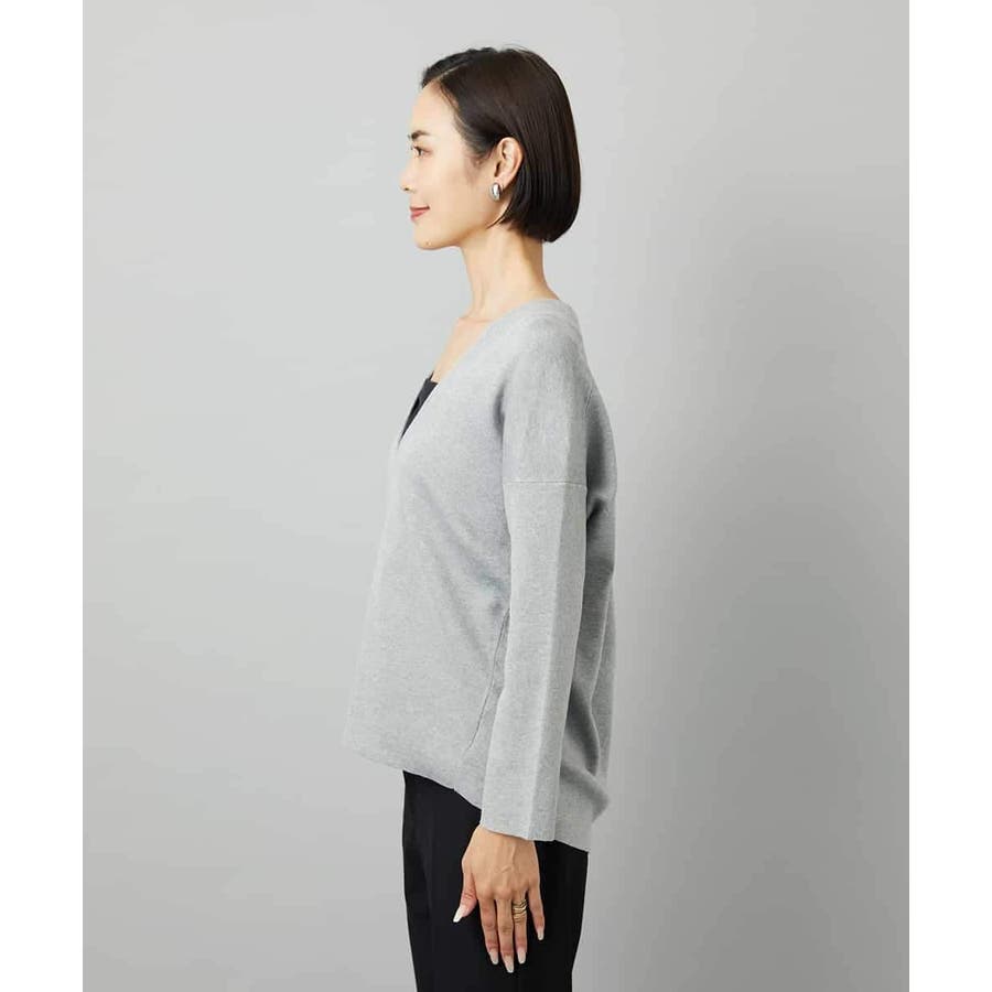さりげないきれい見えな光沢感とドライタッチが魅力の深Vネックプルオーバー。リブ切替の袖と長めの後ろ丈で立体感のあるシルエットに仕上げ、モダンなデザインにまとめました。40サイズは限定店舗展開です。