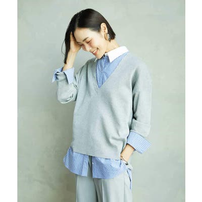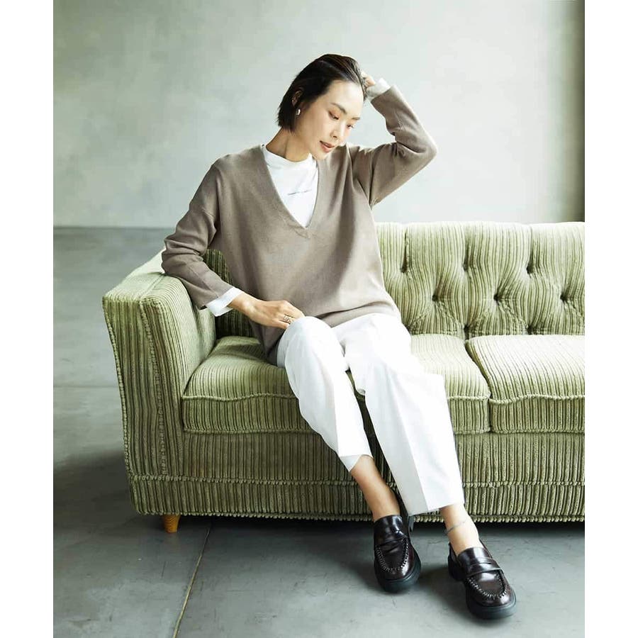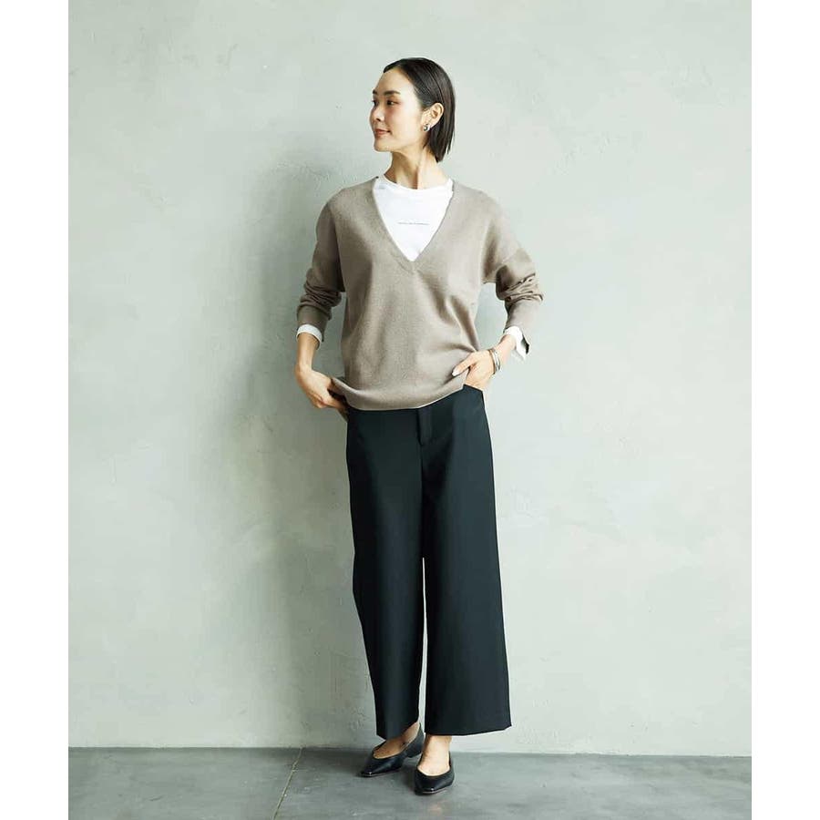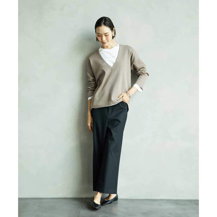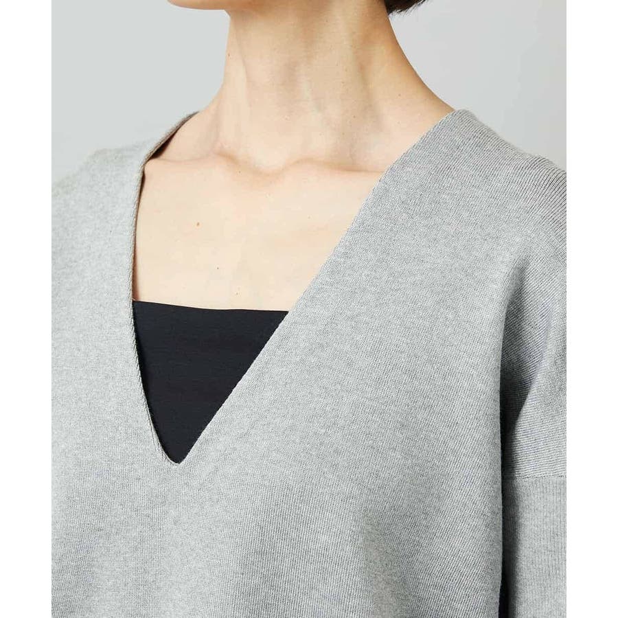 さりげないきれい見えな光沢感とドライタッチが魅力の深Vネックプルオーバー。リブ切替の袖と長めの後ろ丈で立体感のあるシルエットに仕上げ、モダンなデザインにまとめました。40サイズは限定店舗展開です。