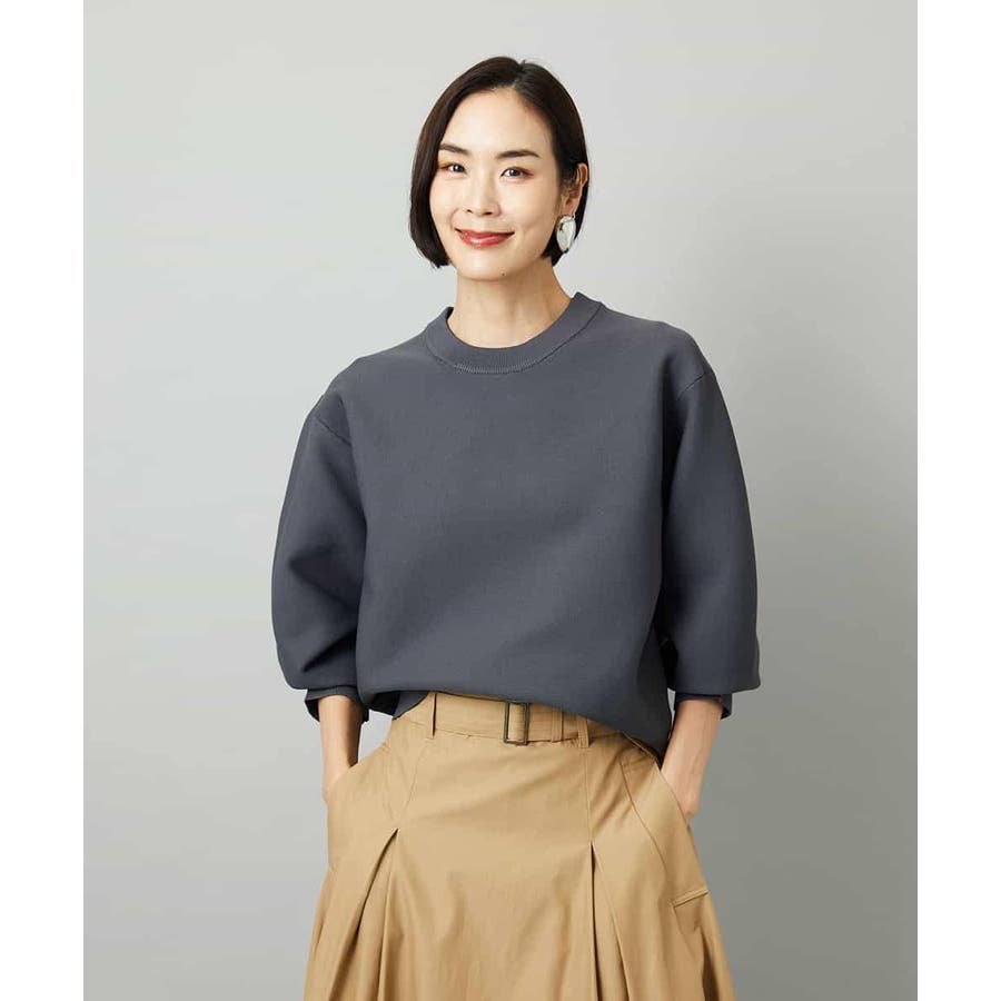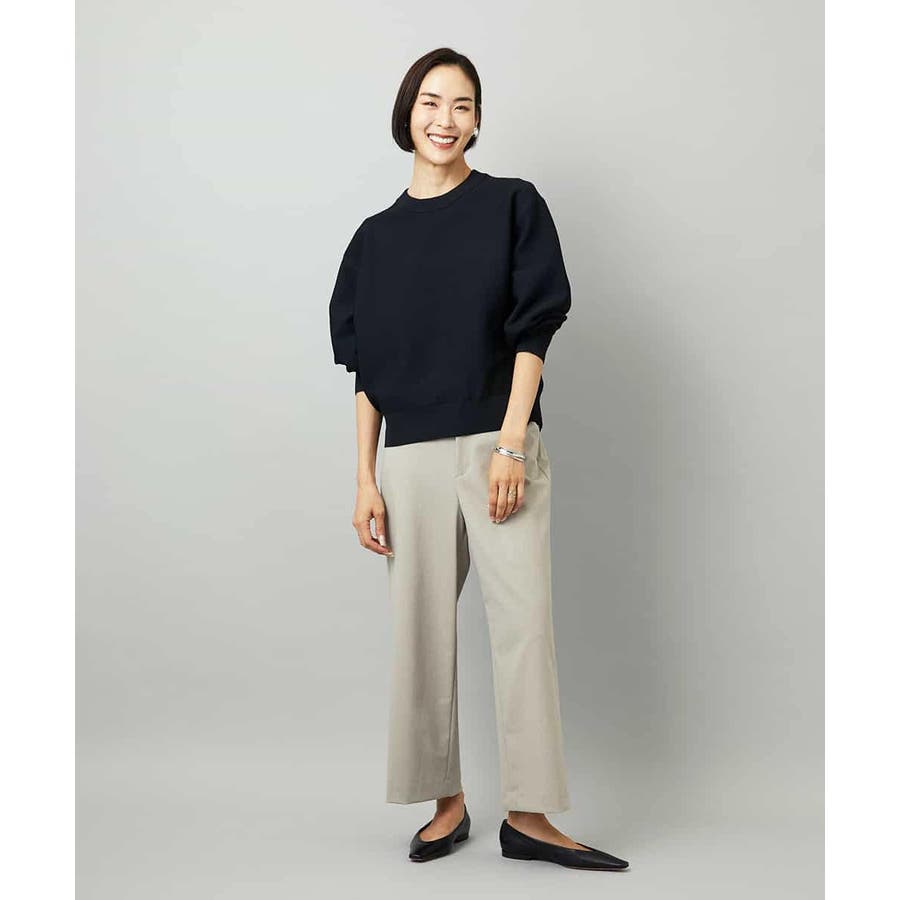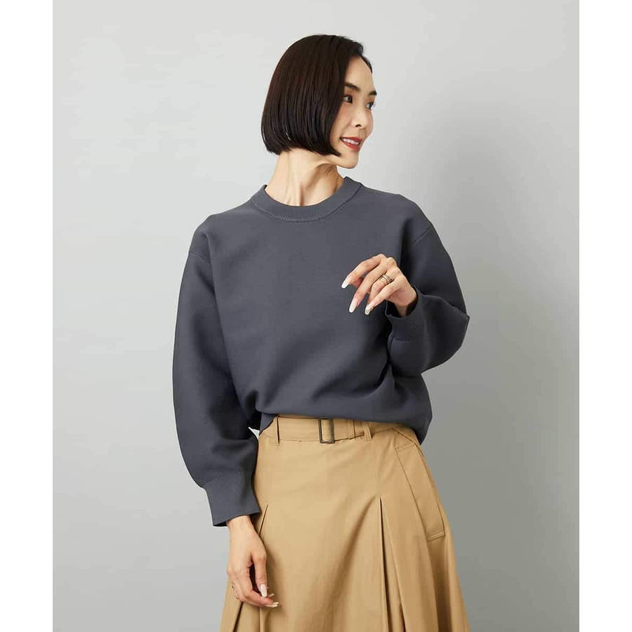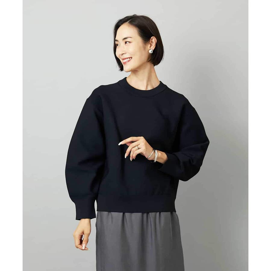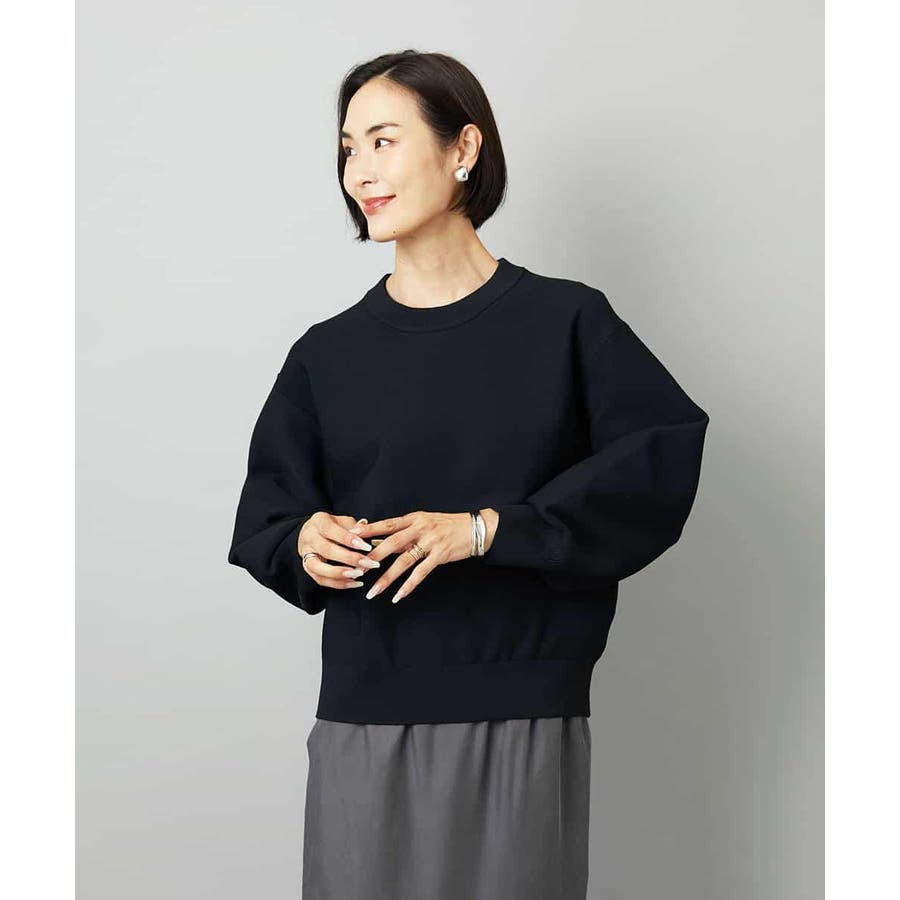 トレーナー感覚で着られるリラックスシルエットのニットプルオーバー。立体感のある袖がさりげないアクセントとなり、シンプルながらも一枚で上品な印象を与えるデザインに仕上げました。40サイズは限定店舗展開です。