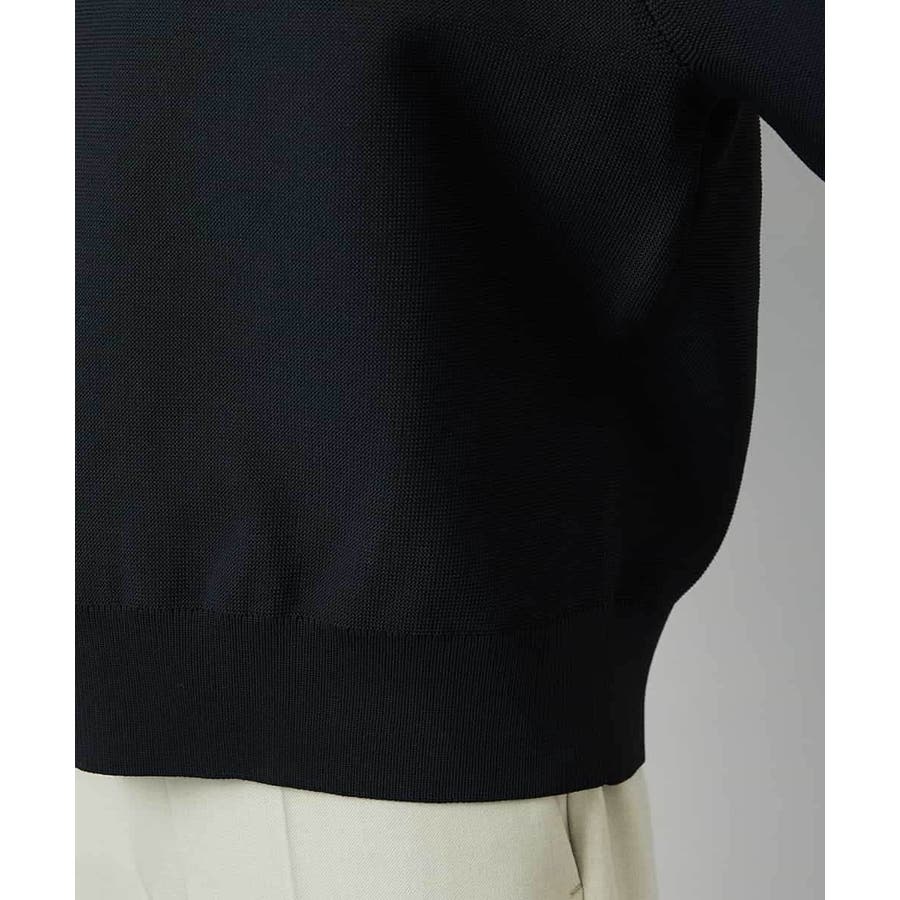 ポリエステル100%の糸をガーター編みにした、ふっくらボリューム感のある軽やかな素材。着心地は軽く、デイリーに取り入れやすいのが特徴です。