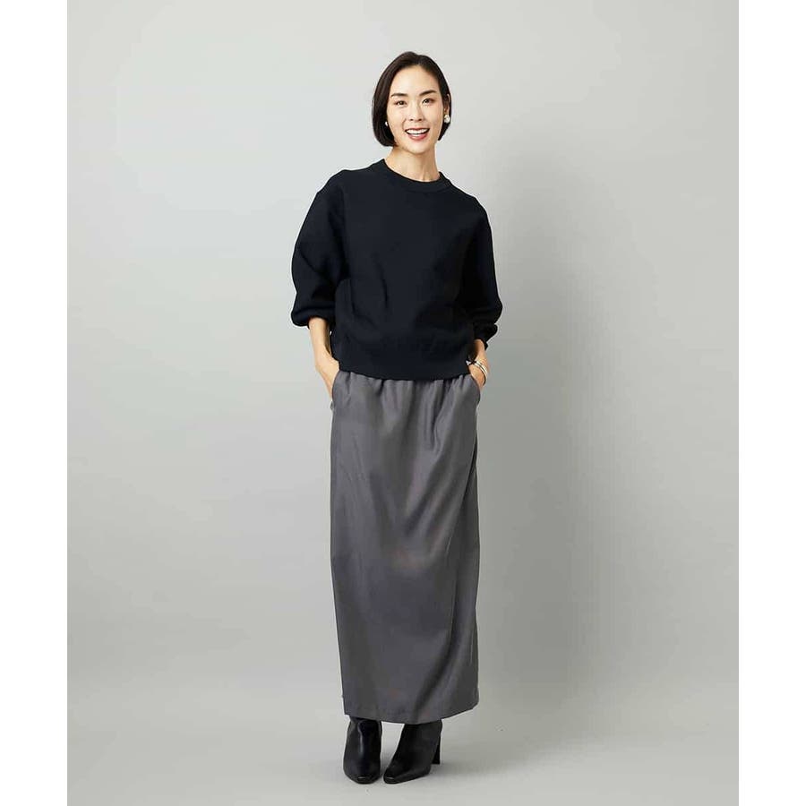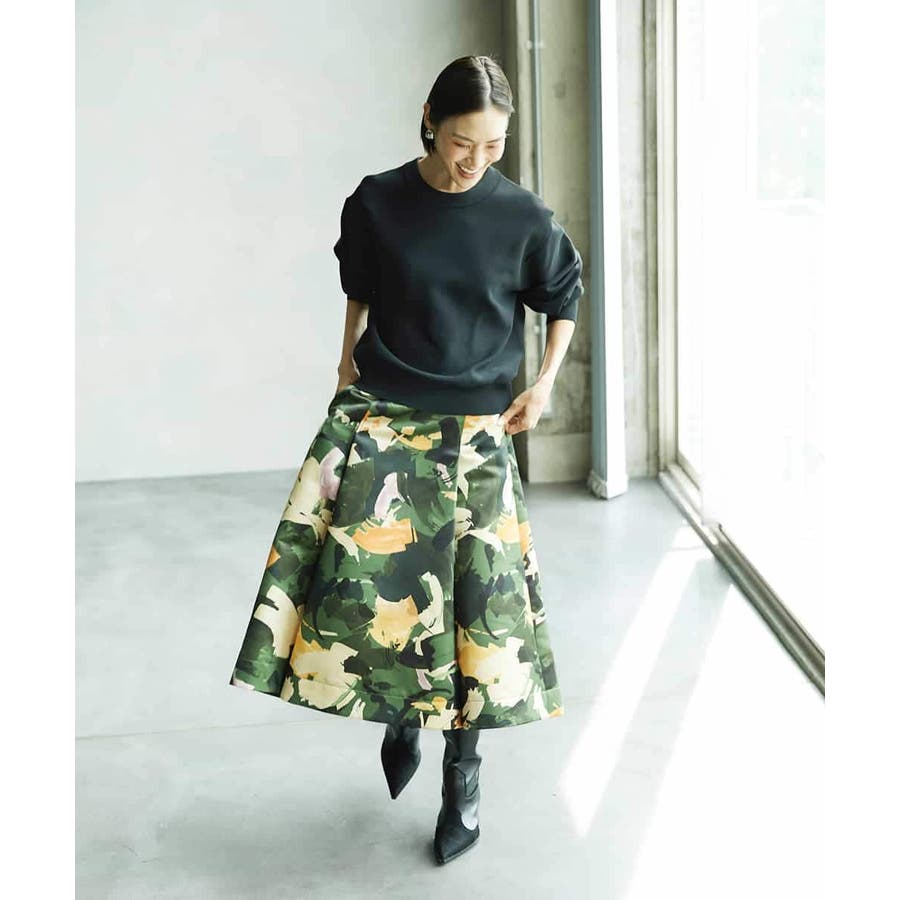 マットな質感なので、サテンやレザーなど光沢感のあるスカート、柄スカートを合わせると、旬のトレンド感をプラスできておすすめです。
