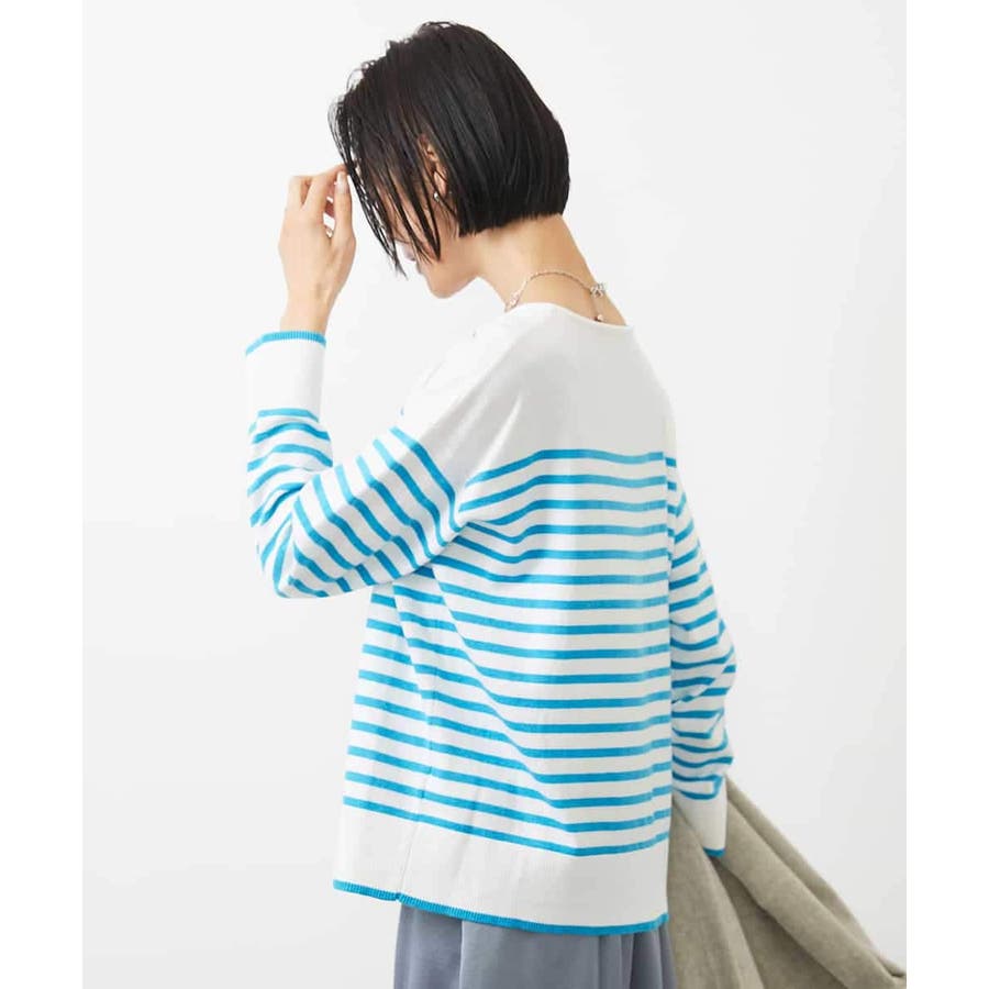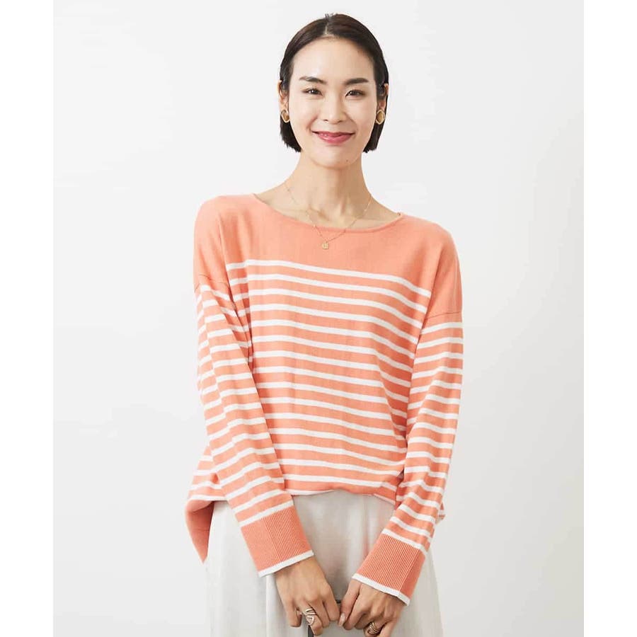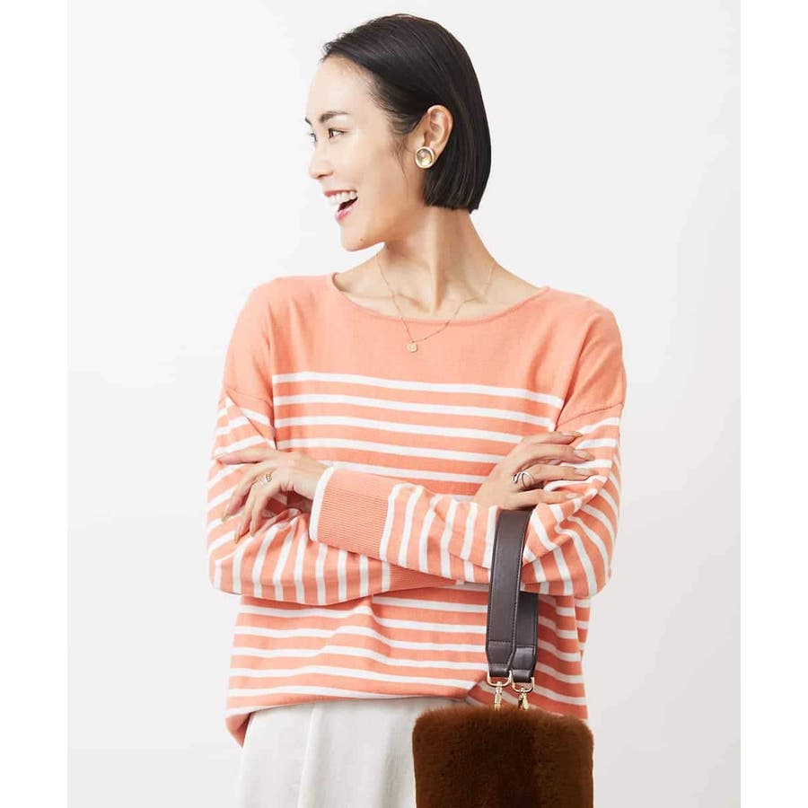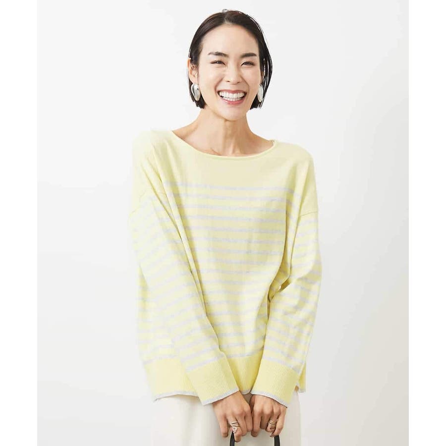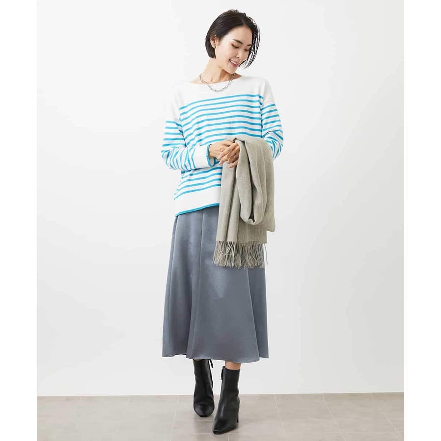 明るめのカラーボーダーはシンプルなスタイリングにプラスするだけでおしゃれ度をあげてくれる1枚。パンツにもスカートにも合わせやすくオフィスから普段使いまで幅広く活躍します。