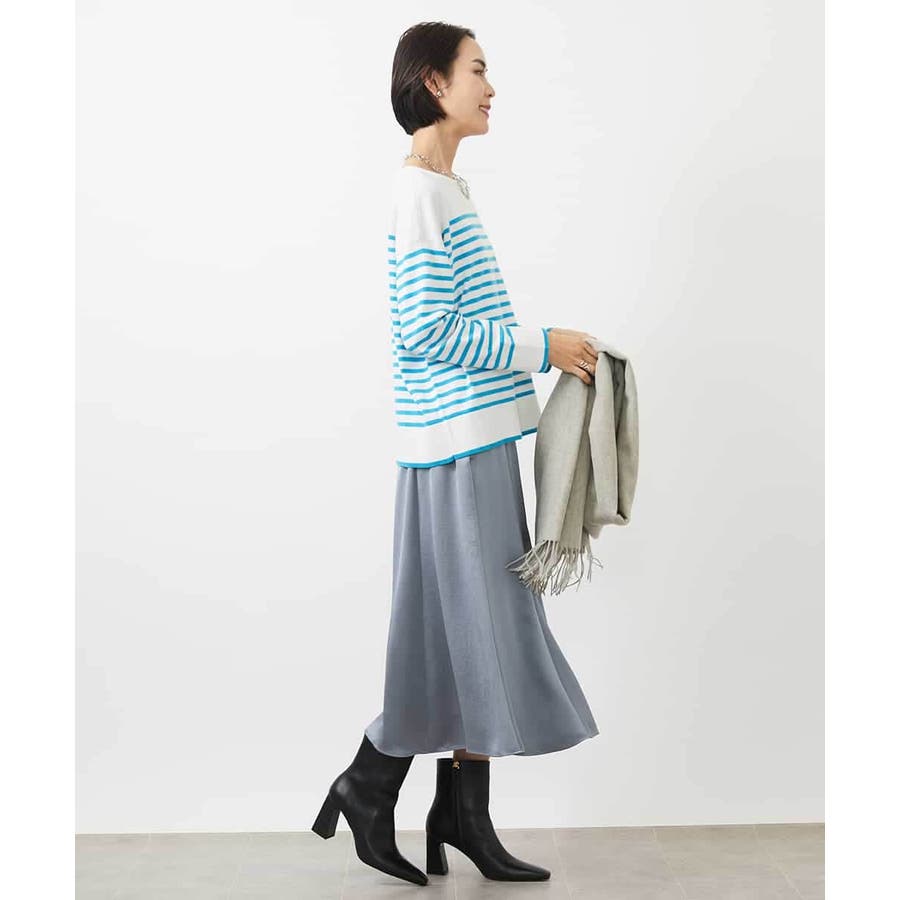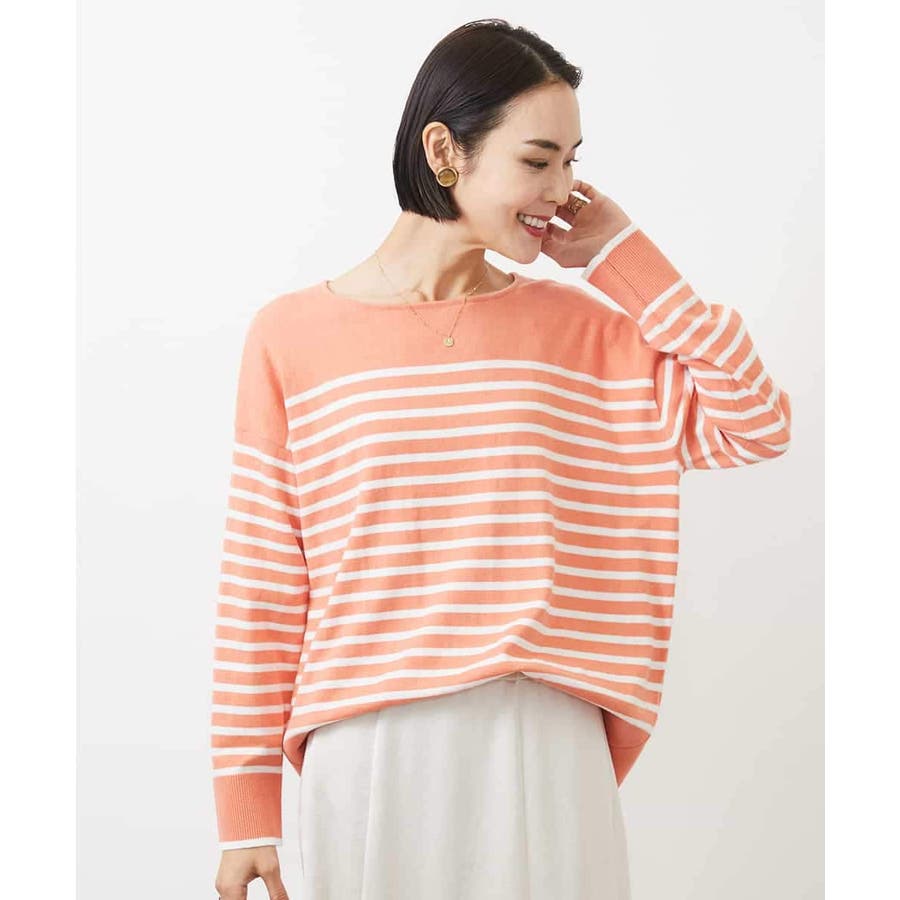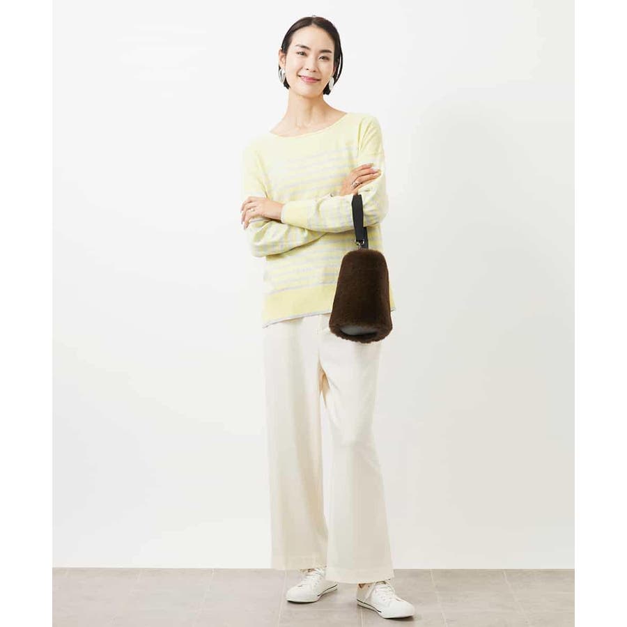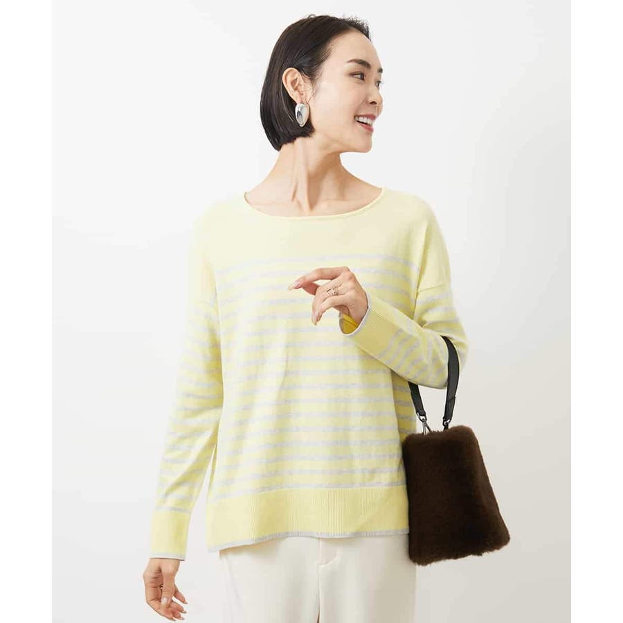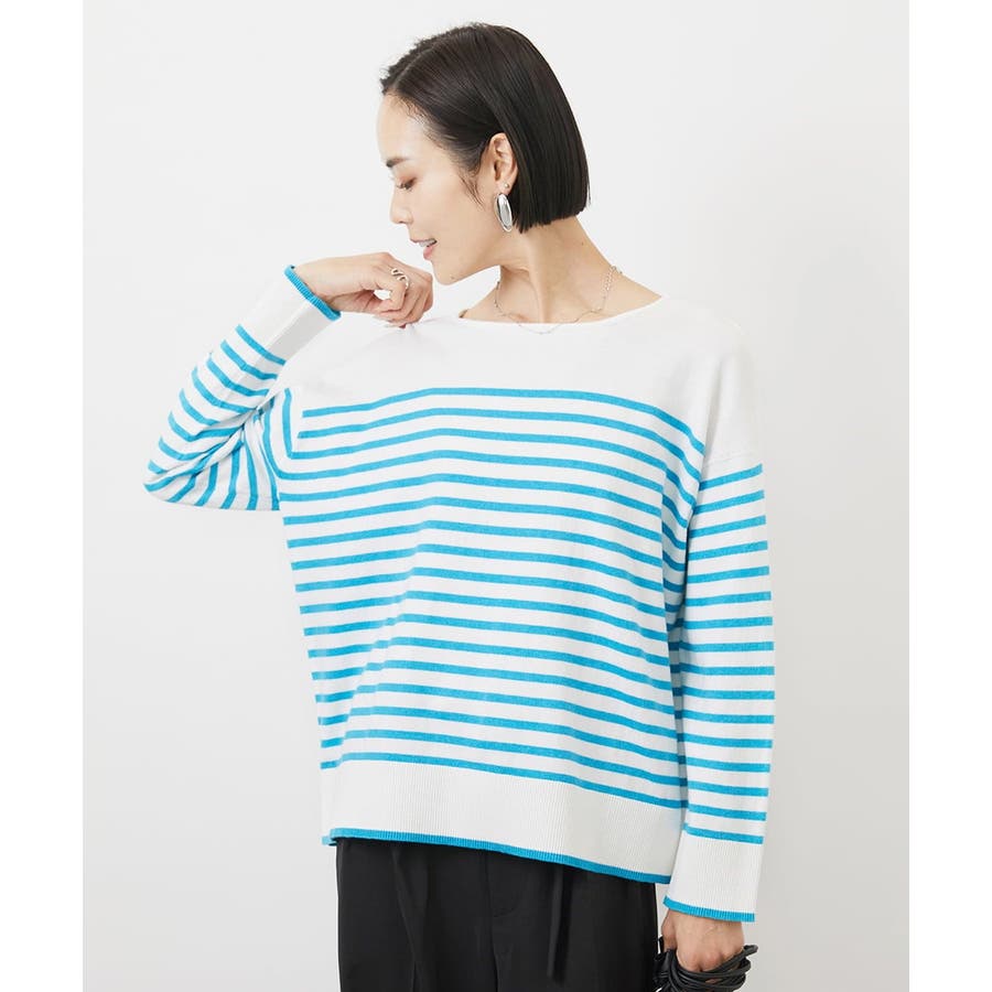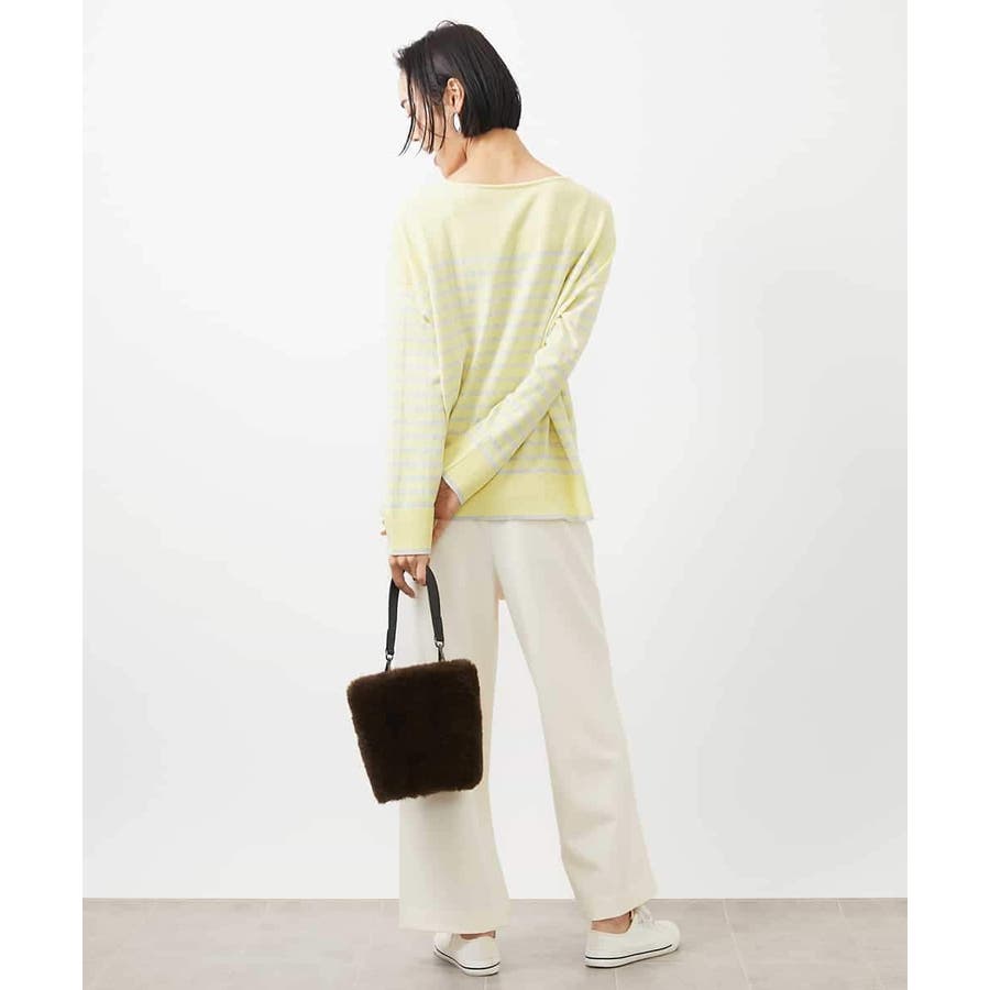 明るめのカラーボーダーはシンプルなスタイリングにプラスするだけでおしゃれ度をあげてくれる1枚。パンツにもスカートにも合わせやすくオフィスから普段使いまで幅広く活躍します。