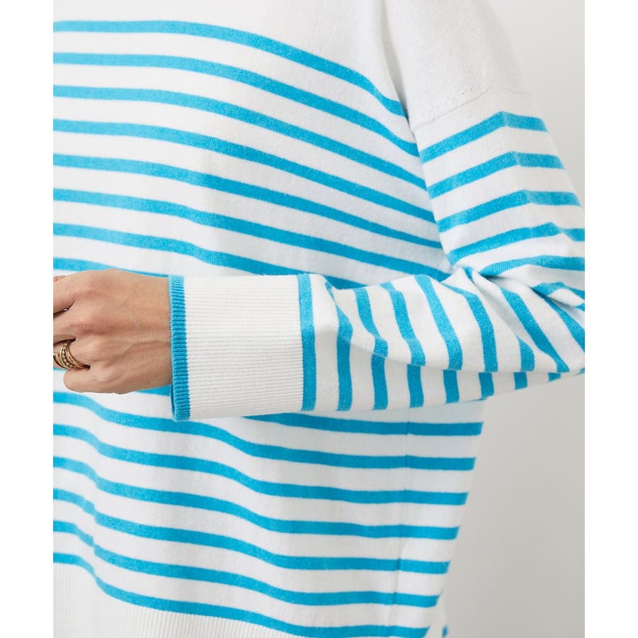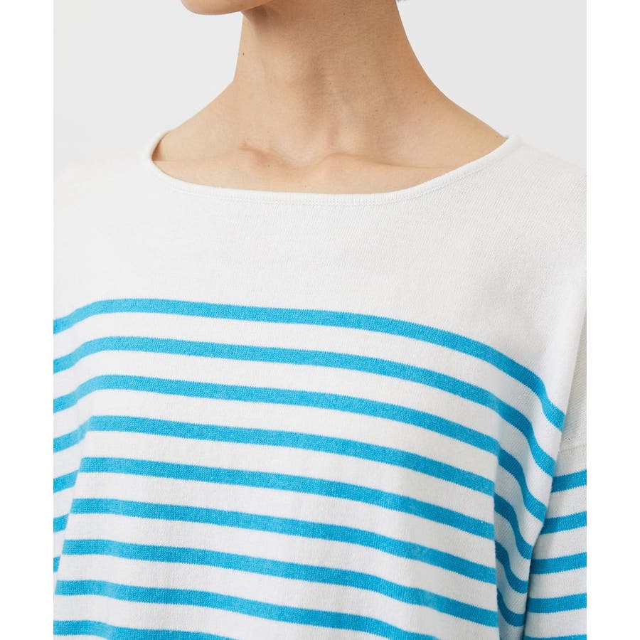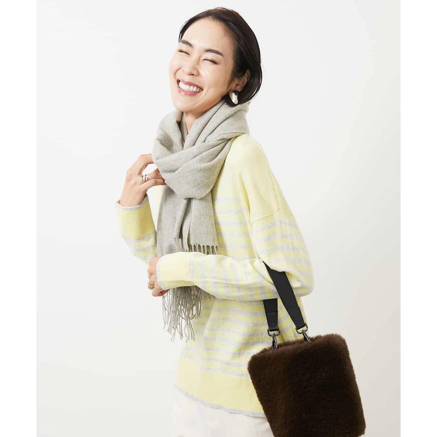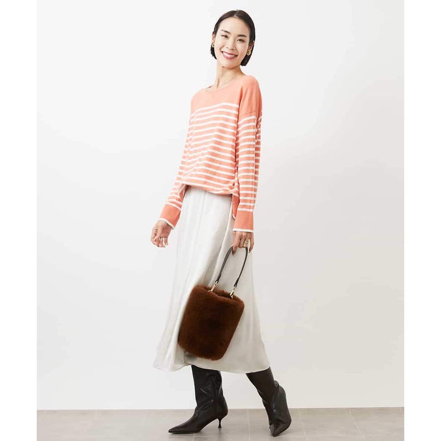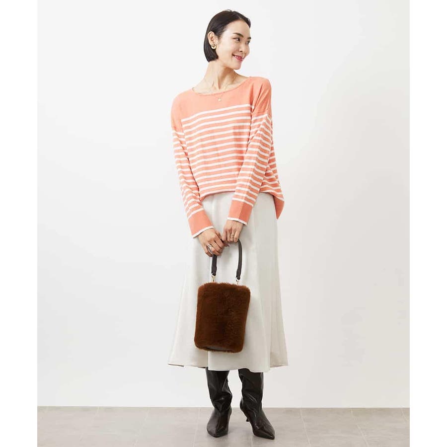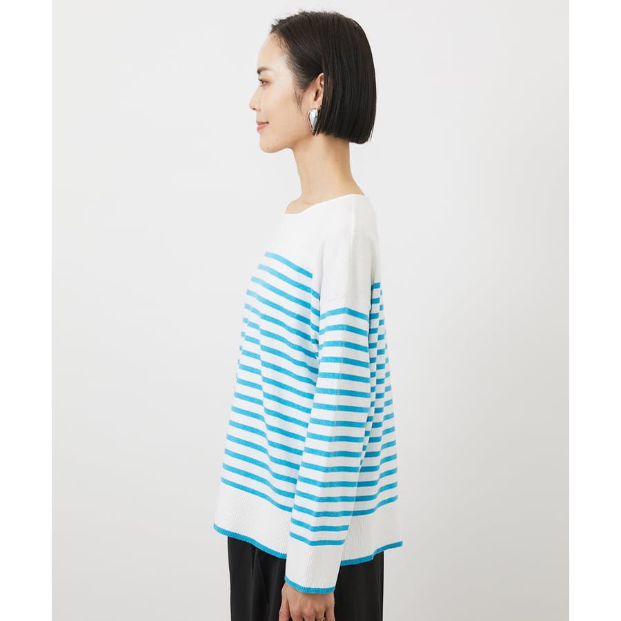 明るめのカラーボーダーはシンプルなスタイリングにプラスするだけでおしゃれ度をあげてくれる1枚。パンツにもスカートにも合わせやすくオフィスから普段使いまで幅広く活躍します。
